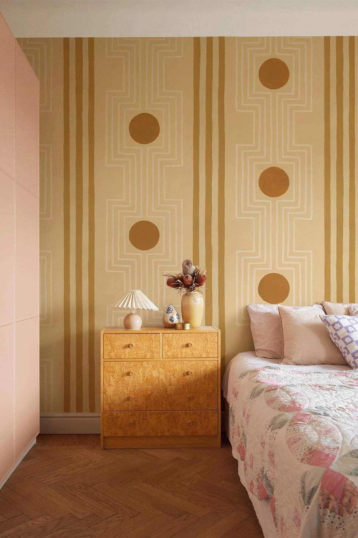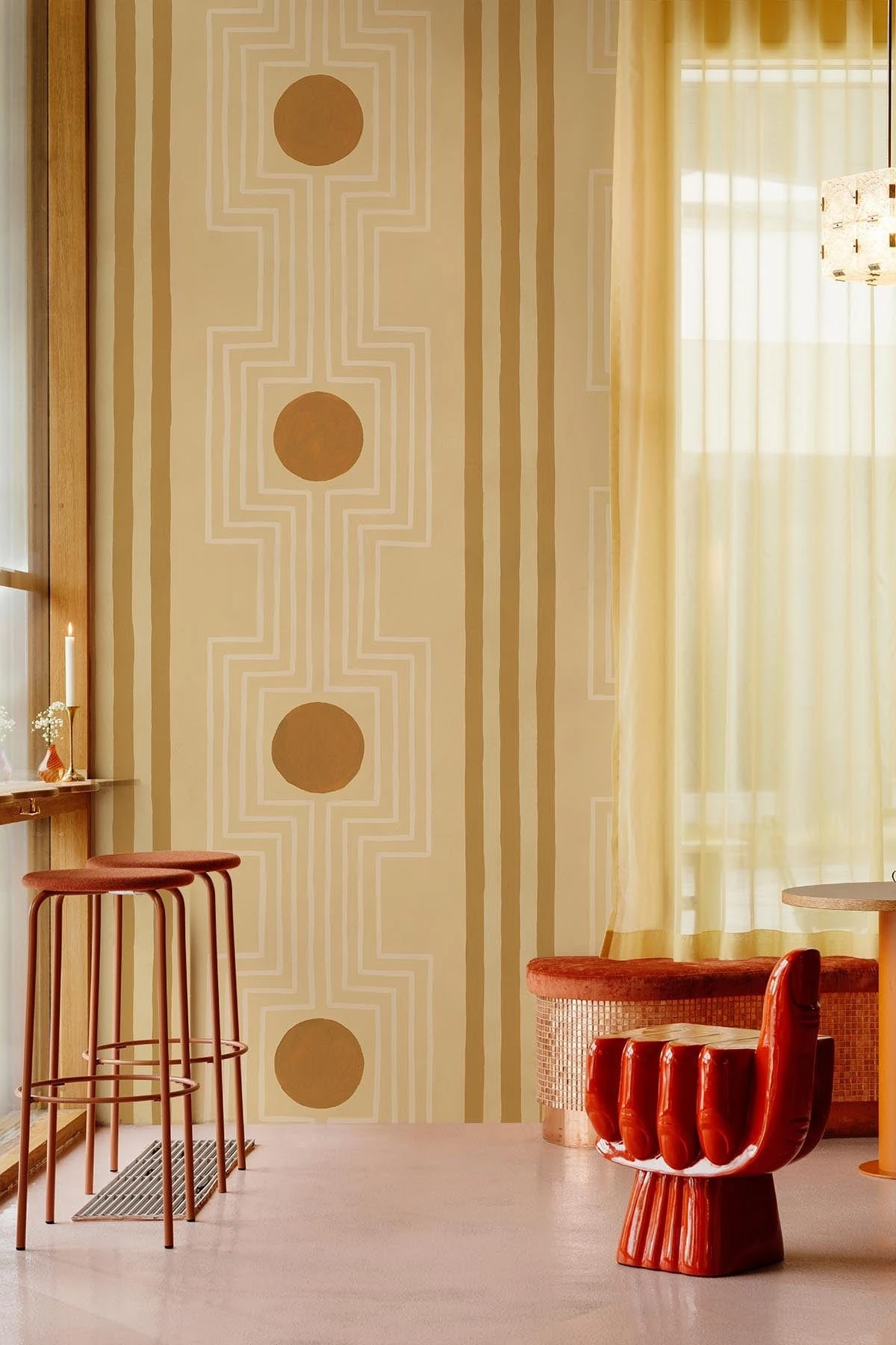 A thousand suns in yellow shades of sunlight make the perfect wall mural to brighten up any corner of a room. Drawing inspiration from ancient Arabic geometric patterns, as well as the styles of the 60s and 70s, this unique pattern captures interest. Evoking a traditional design in vibrant colors, it seamlessly blends contemporary and sophisticated elements.