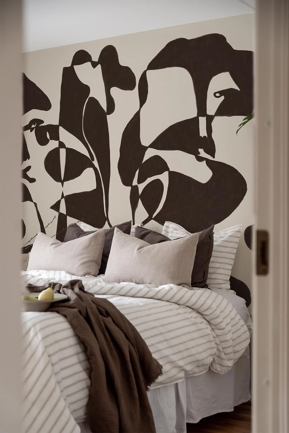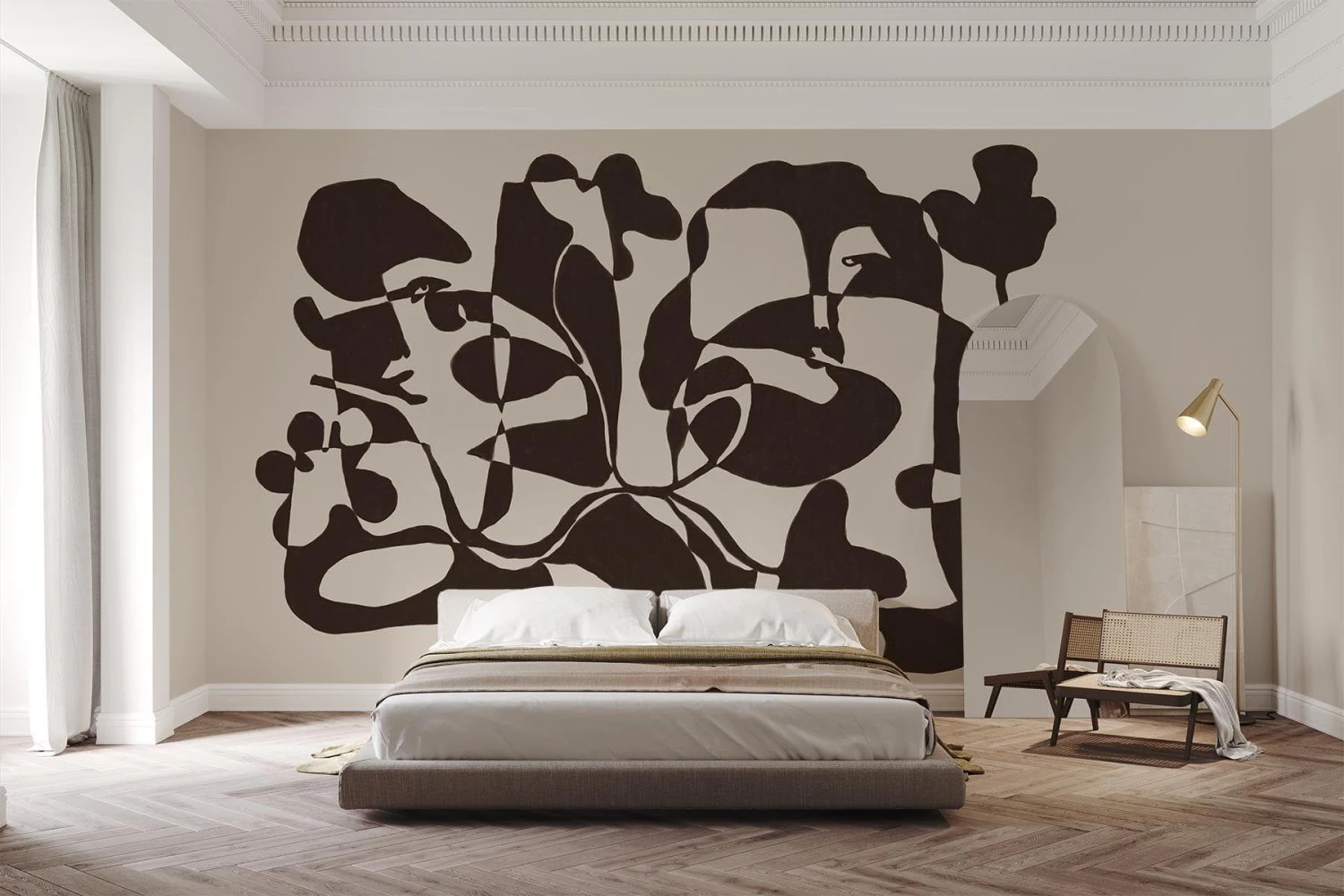 At first sight a two colored abstract wall mural, appearing to be filled with more and more details the longer you embrace