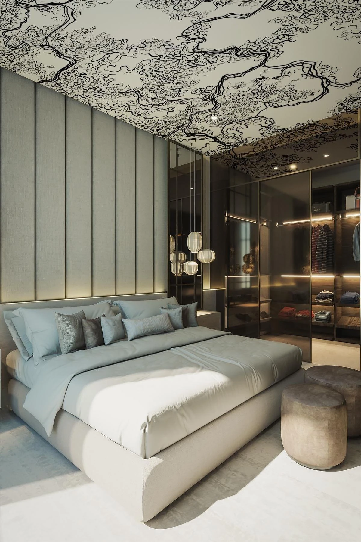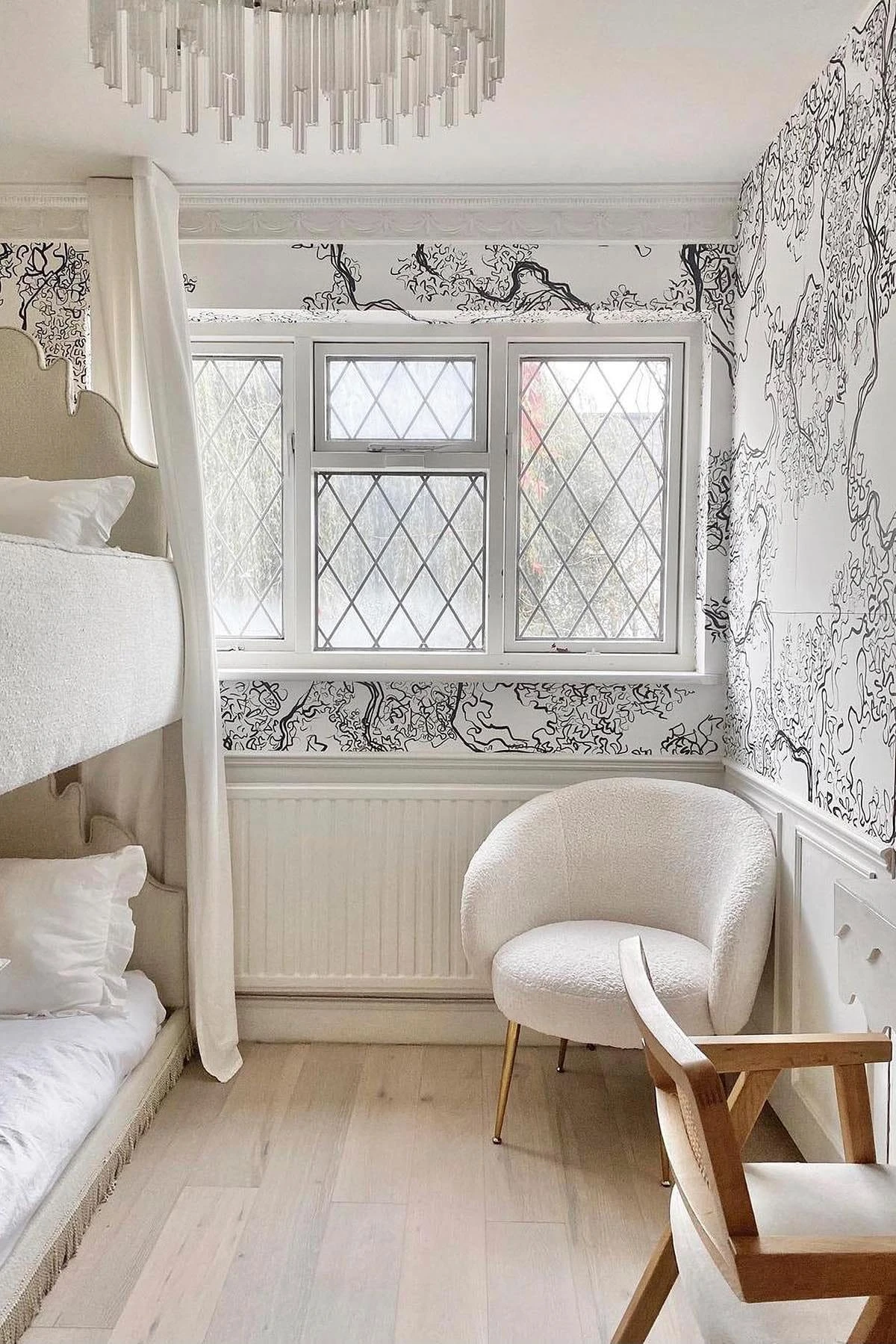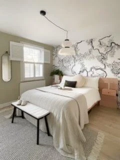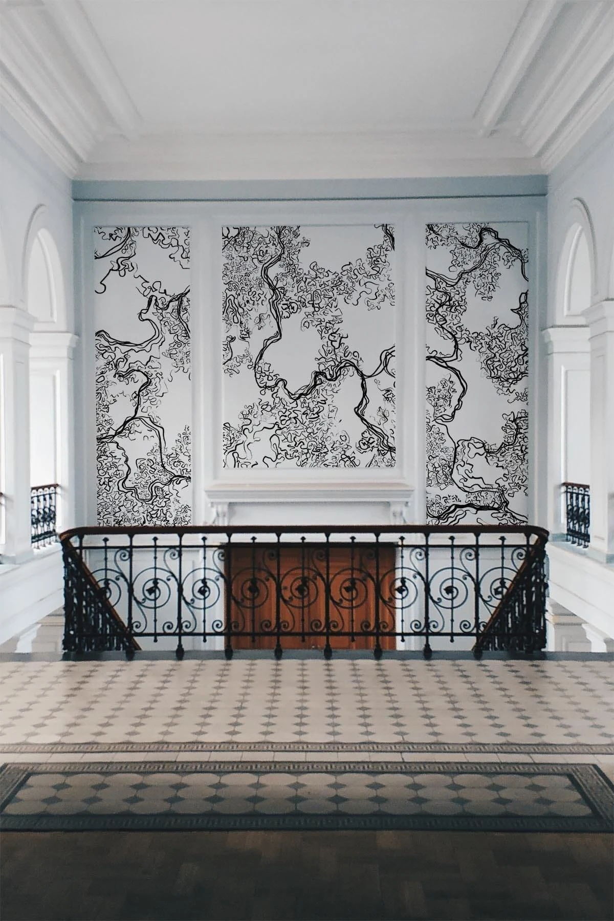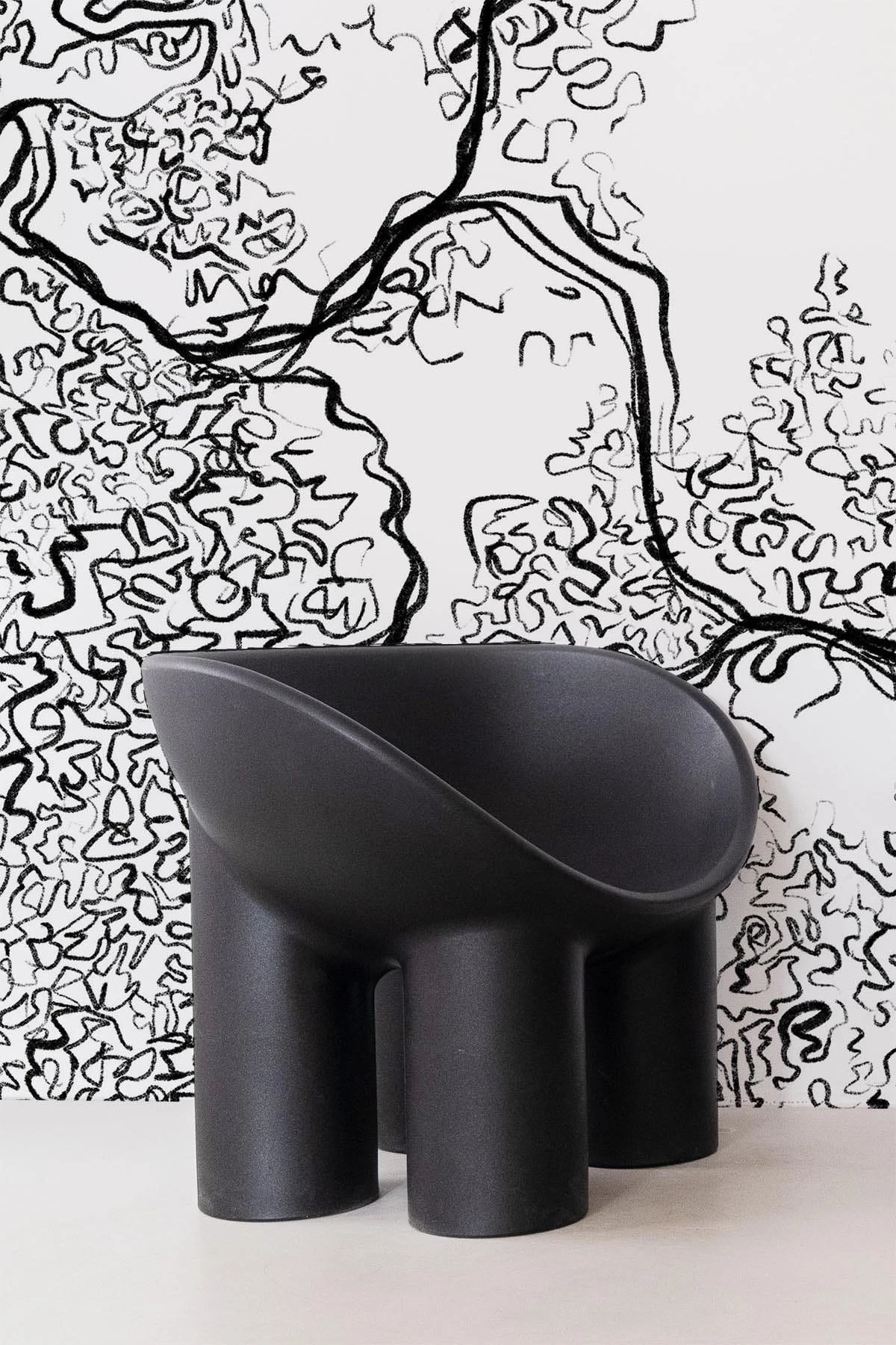 The hand drawn line work gives this black wall mural an abstract yet organic look. Create a statement with the sharp black and white colors or a minimalistic look using them in panellings.