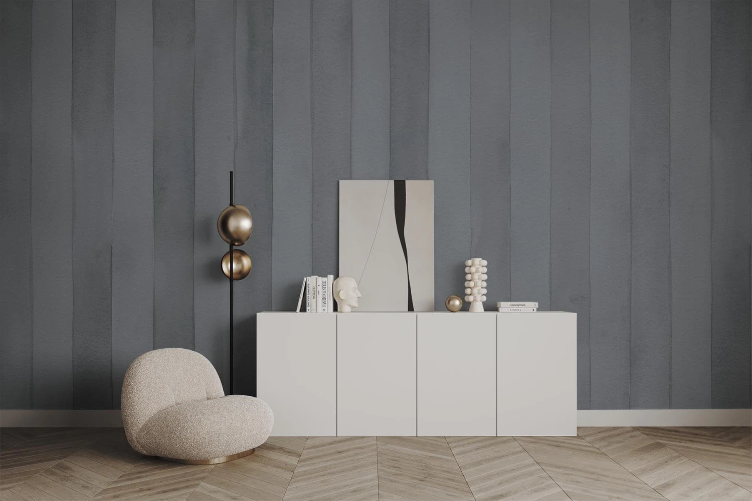 A soft striped pattern, hand painted wall mural in Aquarelle stripes, creates a peaceful and a calming ambiance in any room. The delicate tone of dove blue in this wall mural evoke a sense of tranquility and sophistication, making it an ideal choice for spaces where relaxation and elegance are essential.