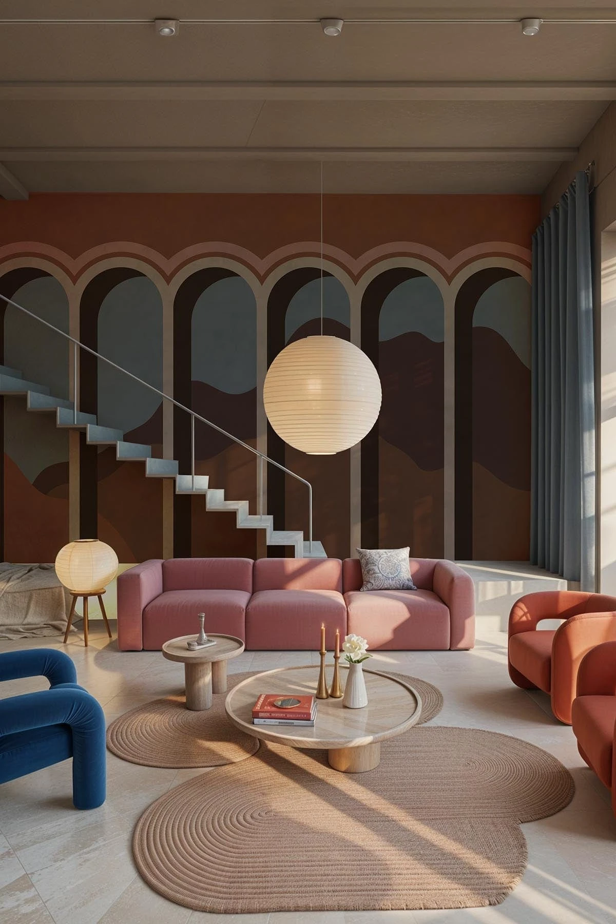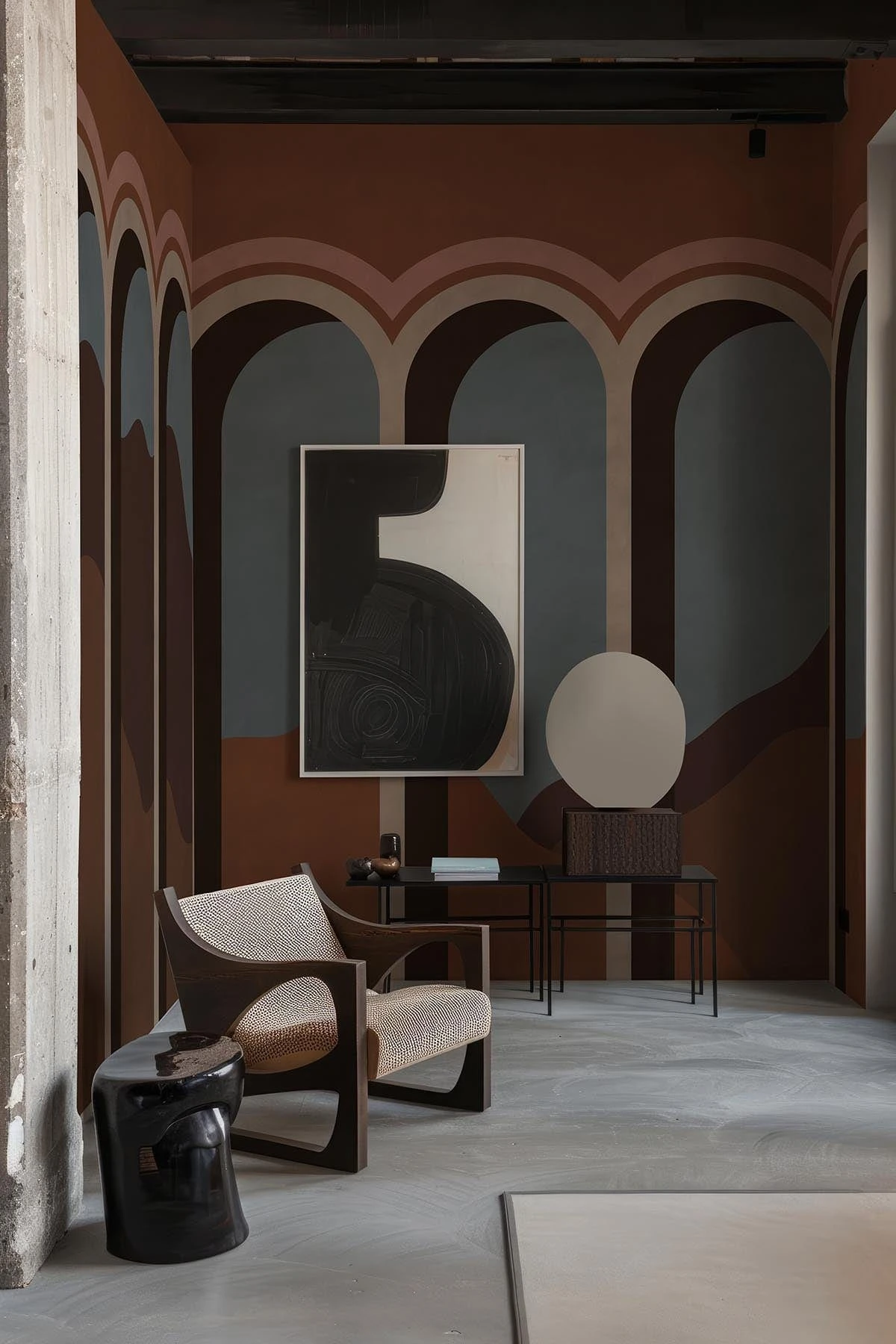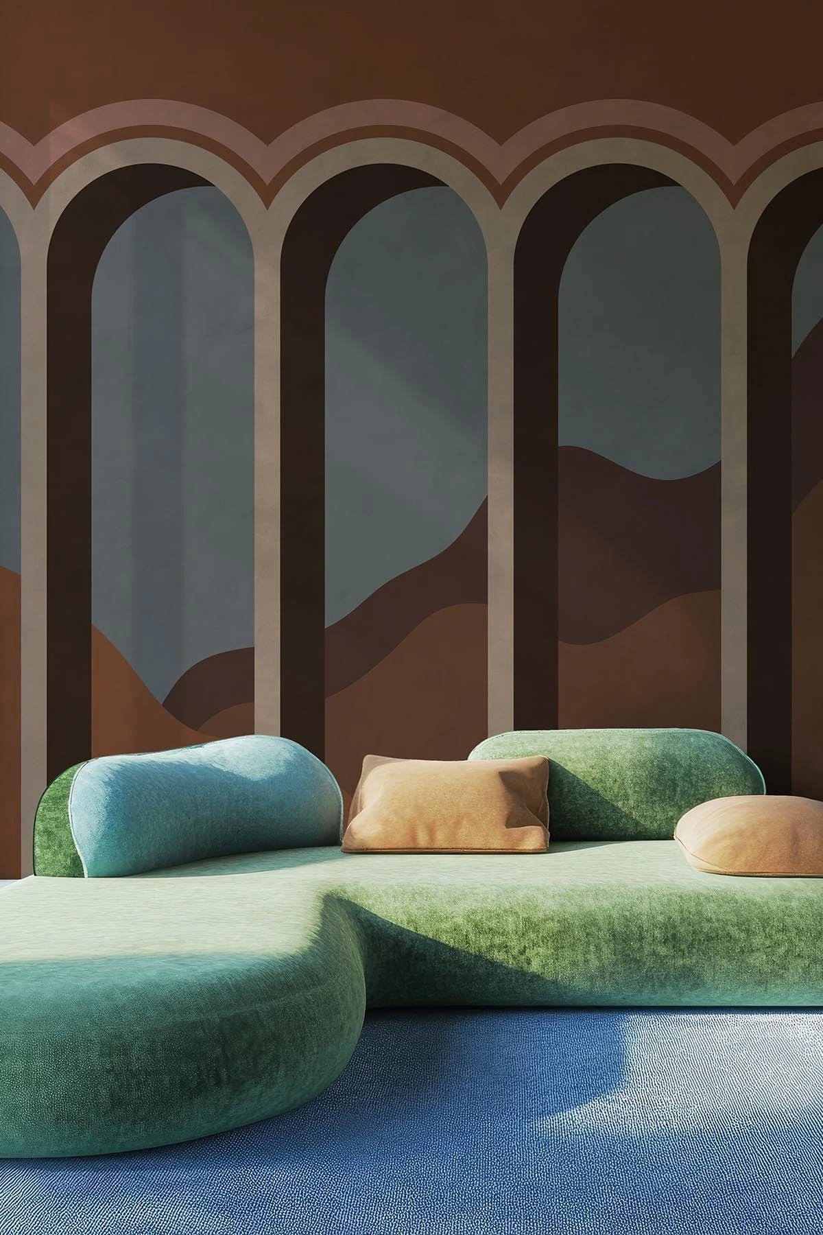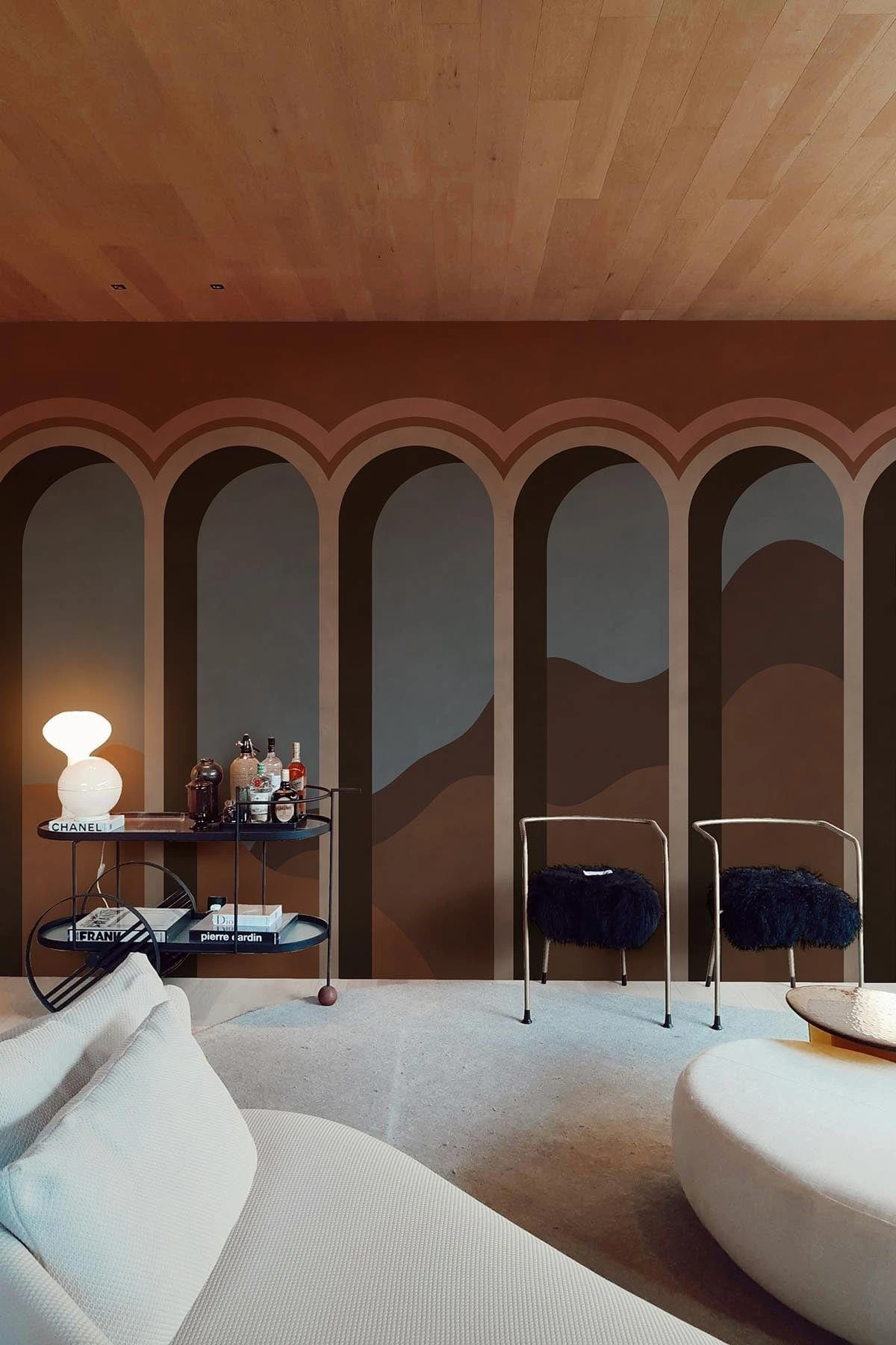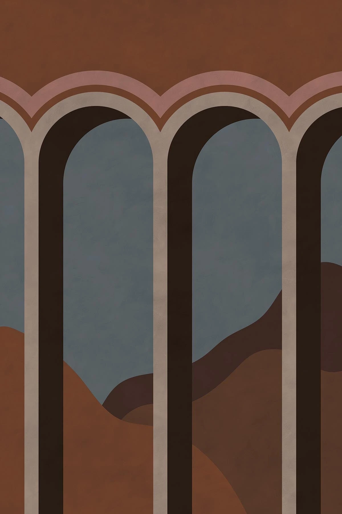 Transform your space with the Arch Landscape wall mural, a perfect blend of muted colors and modern artistry inspired by Art Deco. Featuring a series of bold arches framing an abstract landscape, this mural combines funky, graphic elements with a soothing earthy brown palette, making it both striking and inviting.