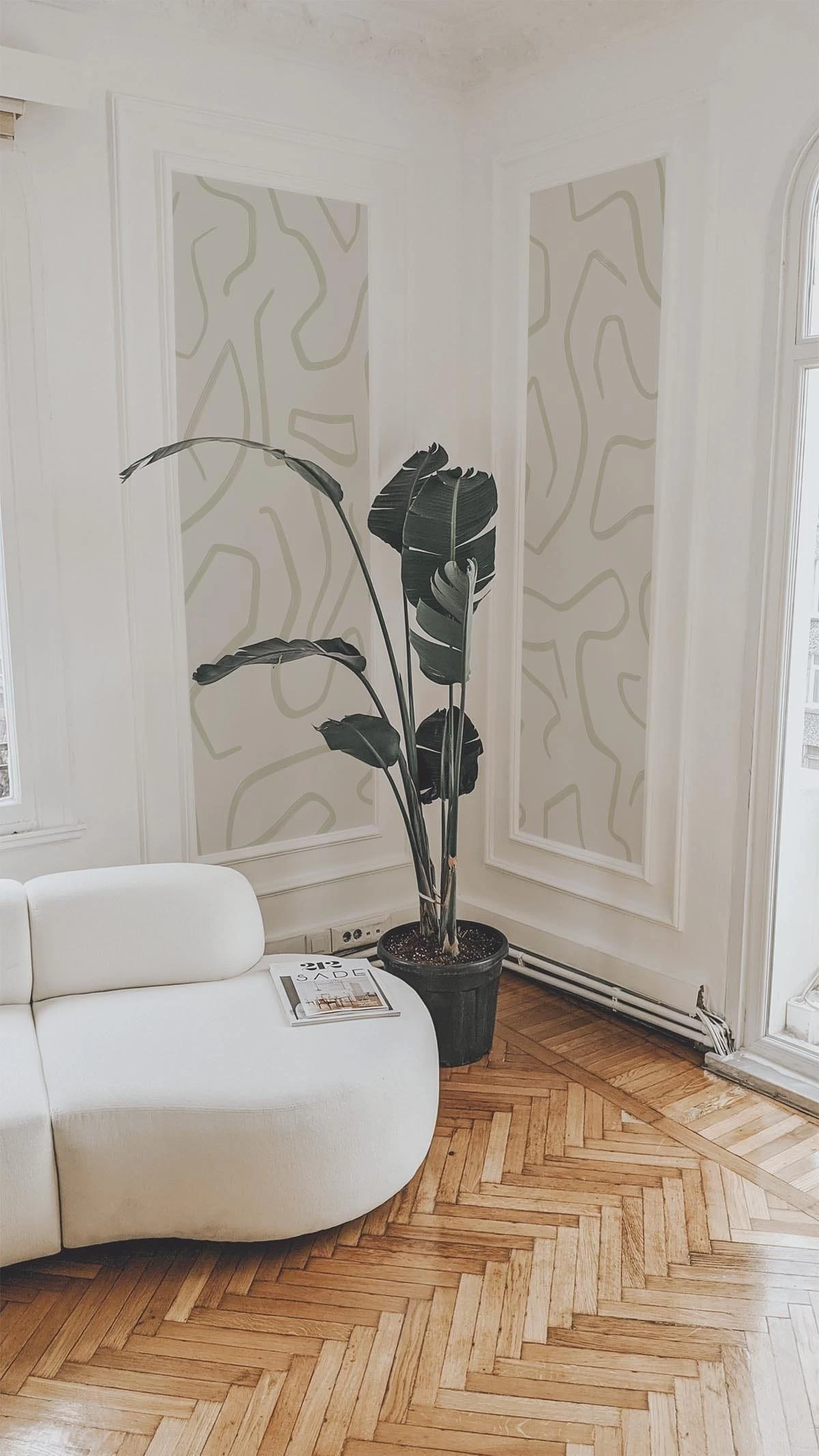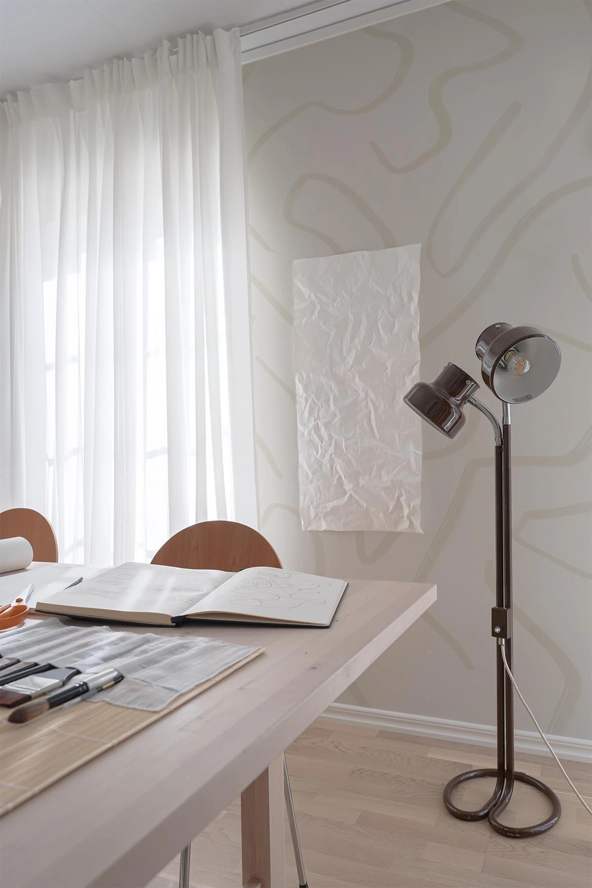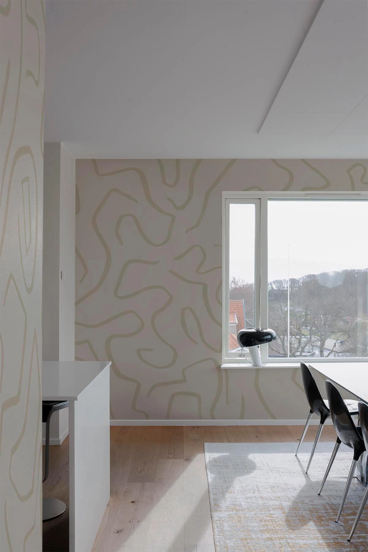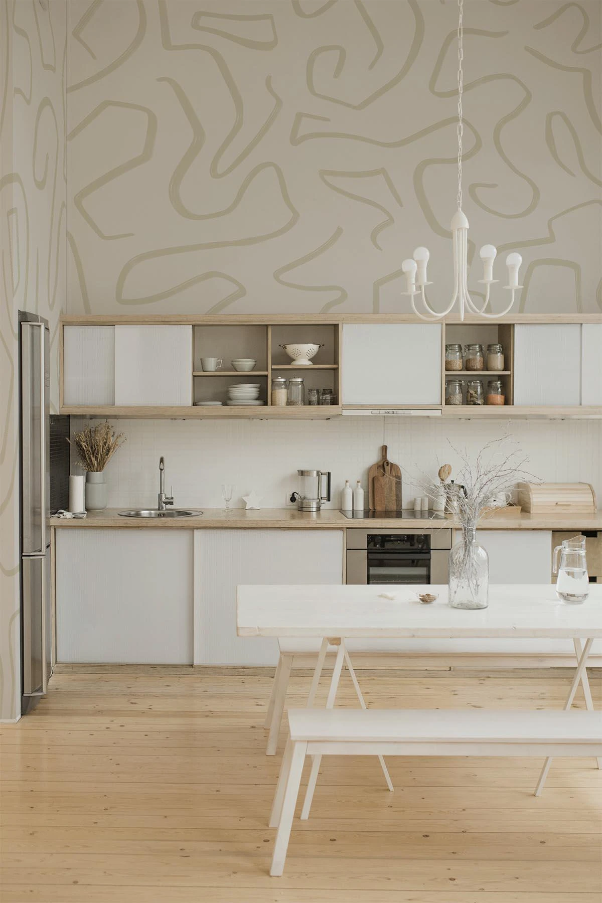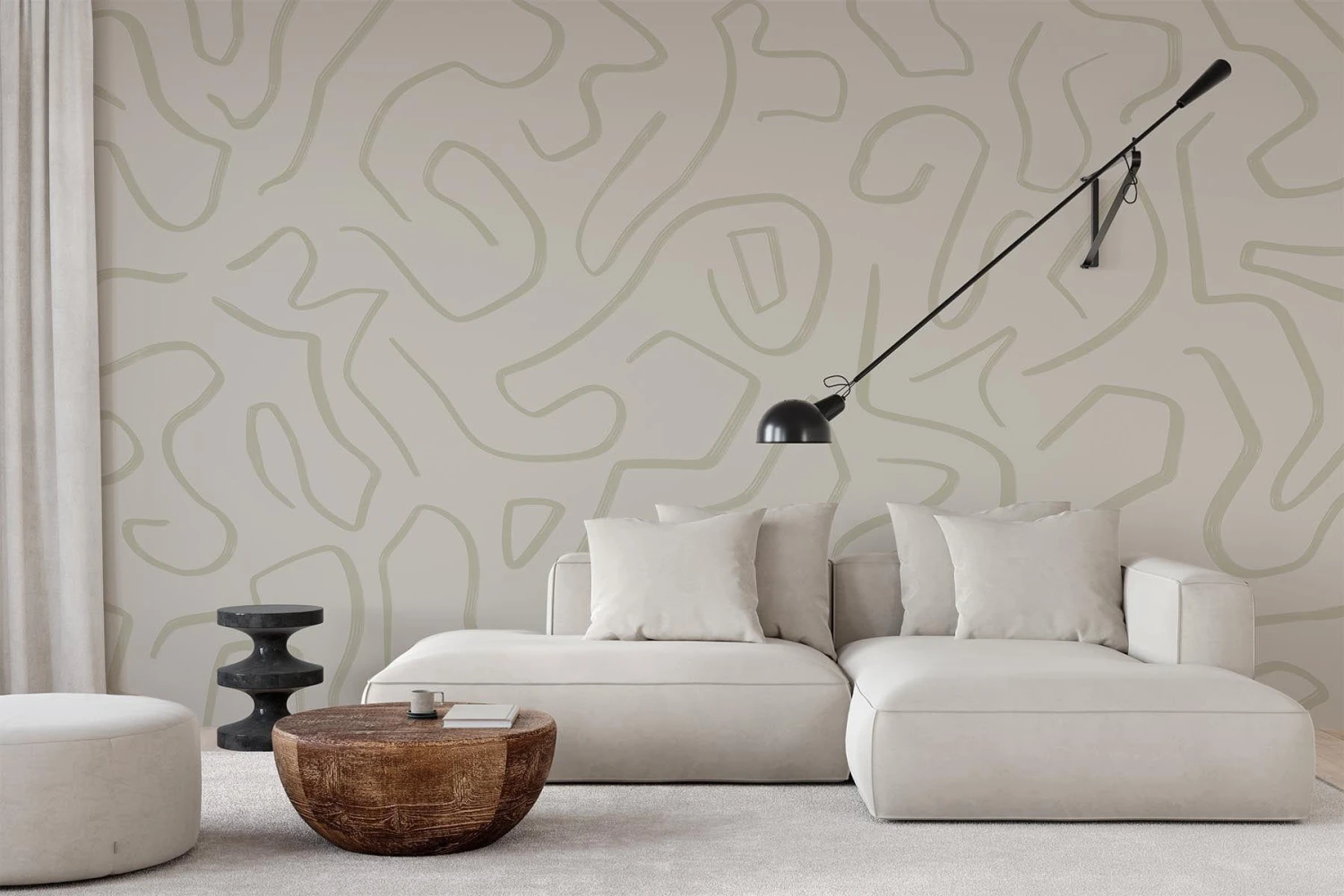 Hand painted brush strokes creating an artistic statement design. An abstract wall mural with the perfect mix of playfulness and elegance. The beige color creates a minimalistic look