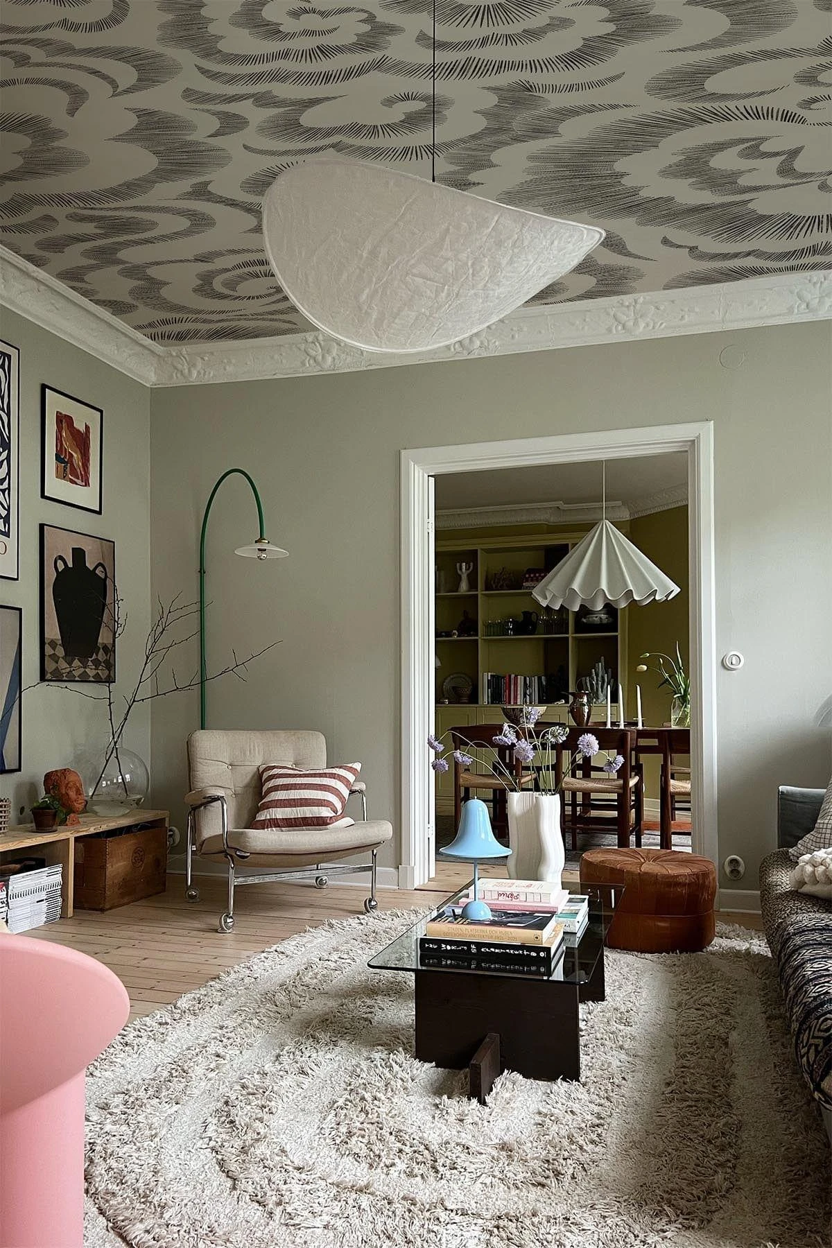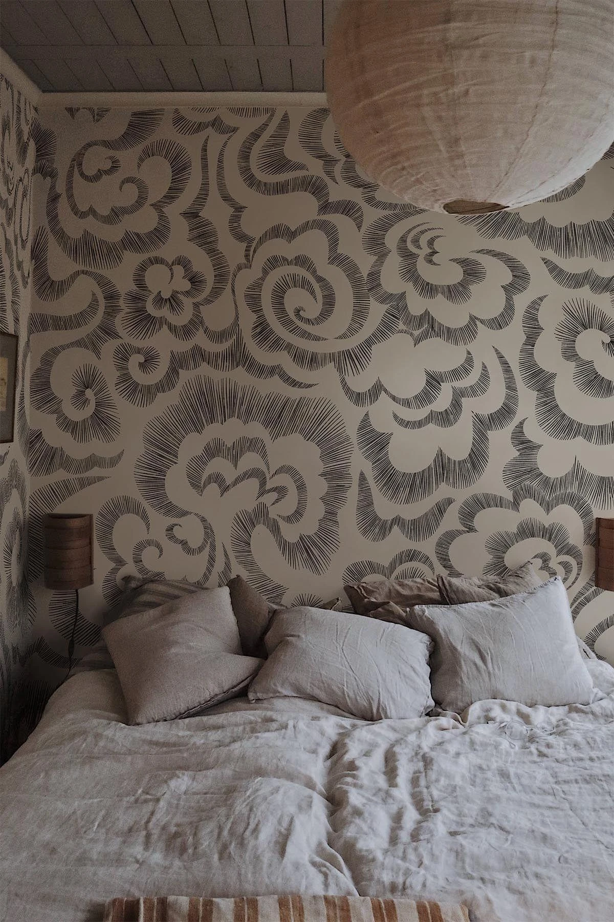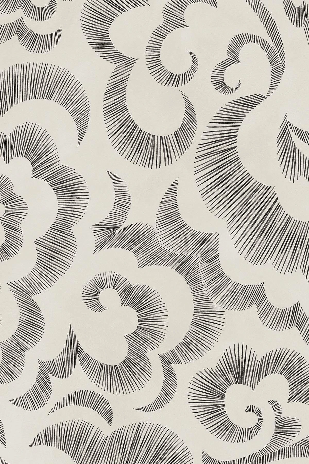 Asian clouds is a curvy wallpaper mural inspired by Asian traditional graphics and bumpy shapes. A soft, nature inspired design with a minimalistic aesthetic that celebrates the variation of similar shapes, just as in a clouded sky. Each delicate brush stroke is made with thought and precision to mimic the vivid sky. This cloud wall mural is a great design to wallpaper your ceiling with and it comes in two color ways.