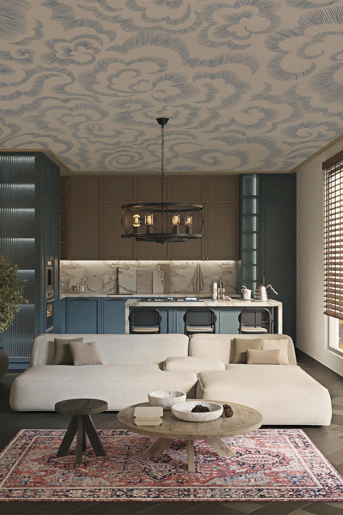 Asian Clouds in blue is a design that exudes peace and harmony. It captures the beauty of the small variations in the sky’s clouds, and each brushstroke is created with precision and care to give your interior a unique charm. The soothing blue shades create an atmosphere of peacefulness, perfect for a cozy bedroom or an idyllic living room