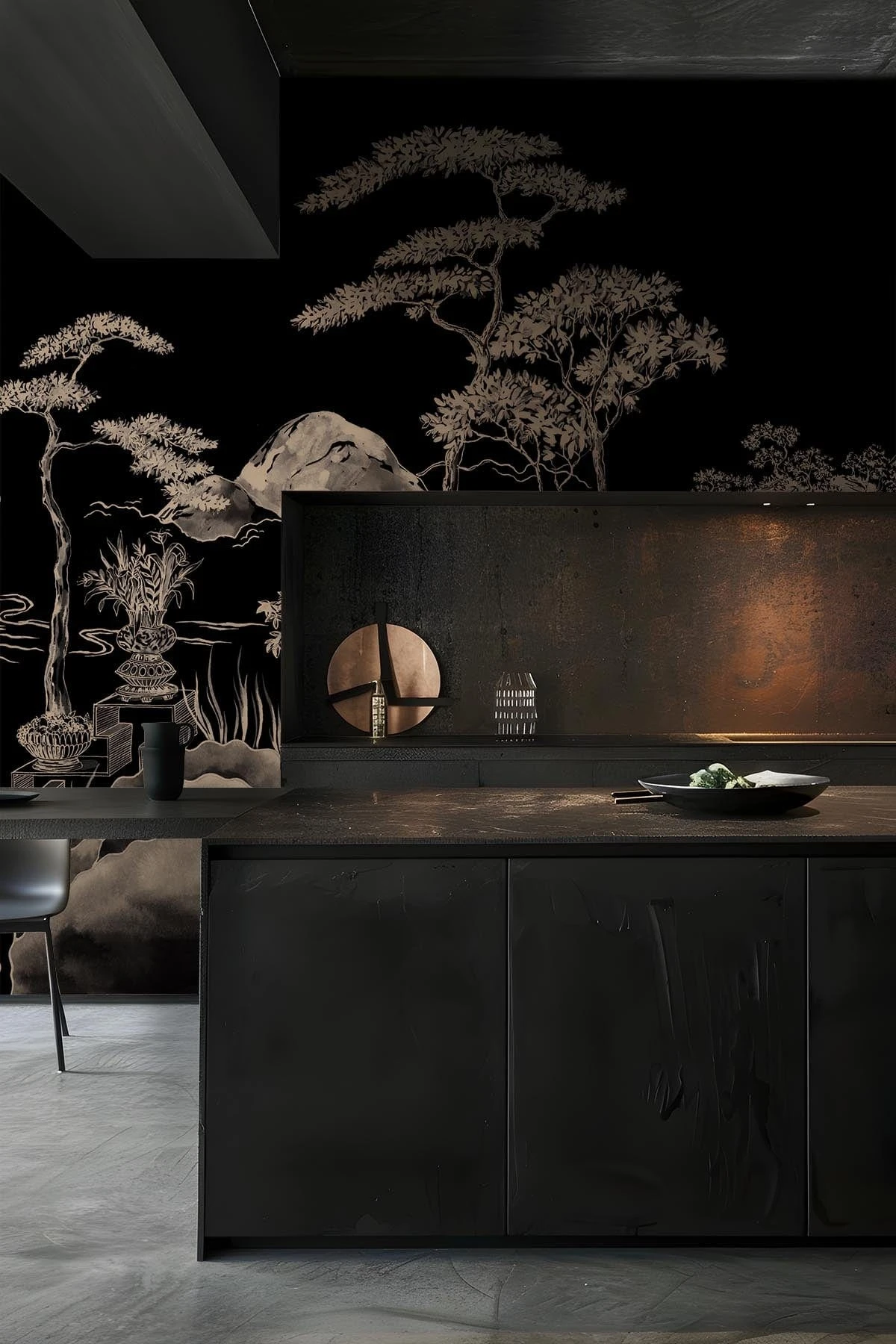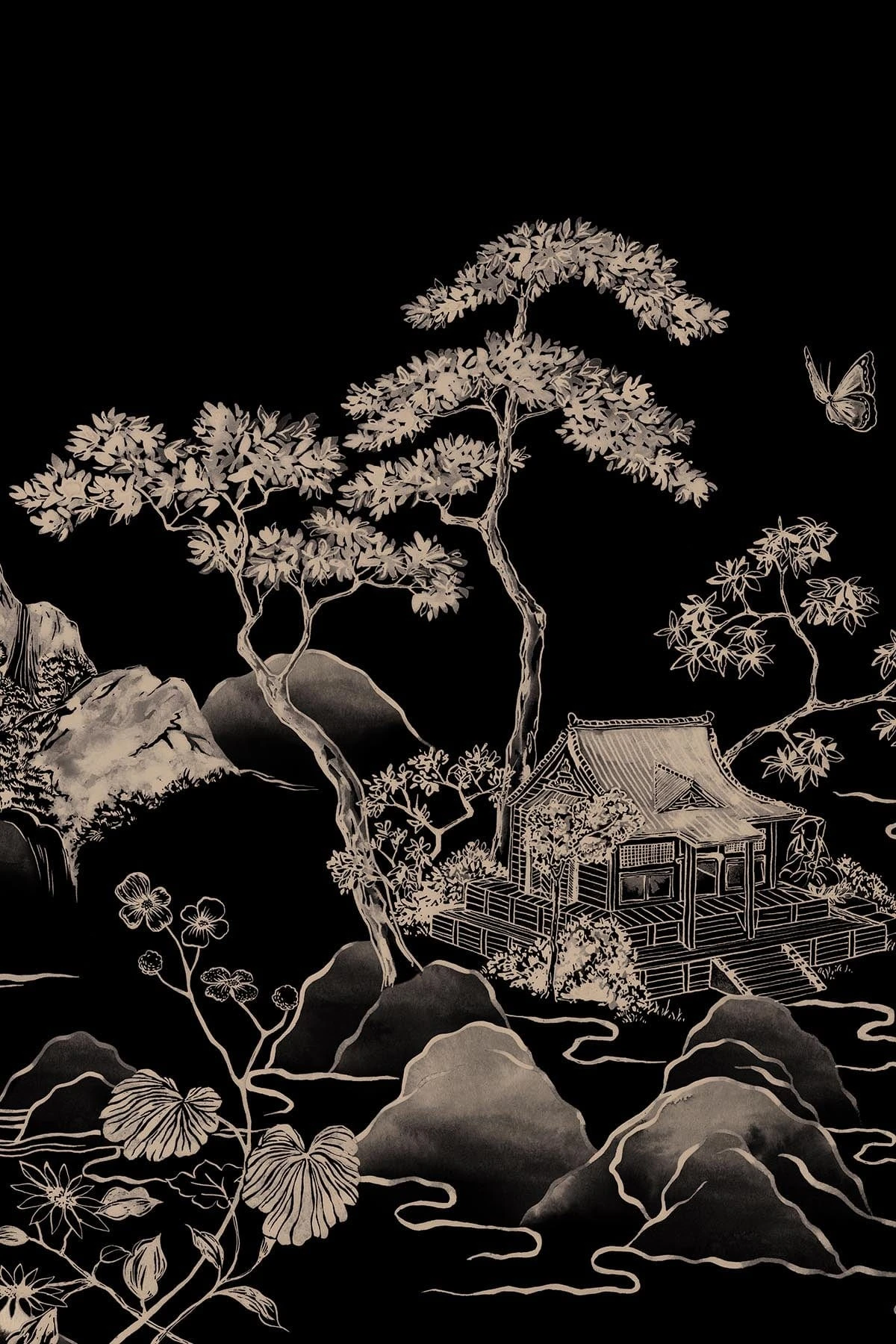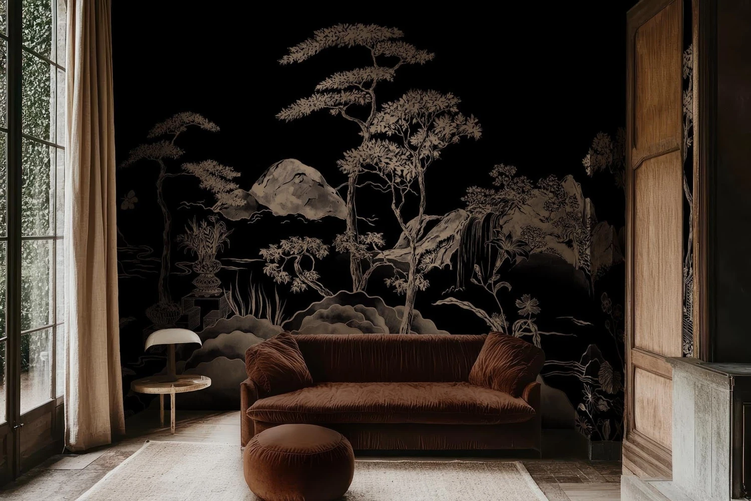 Inspired by traditional Asian craftsmanship, Asian Scenery is a timeless wall mural featuring dainty hand-painted details. Flowing rivers, serene landscapes, and delicate motifs come together to create a tranquil, meditative atmosphere. The elegant black design adds depth and sophistication, making it a captivating statement for any space.