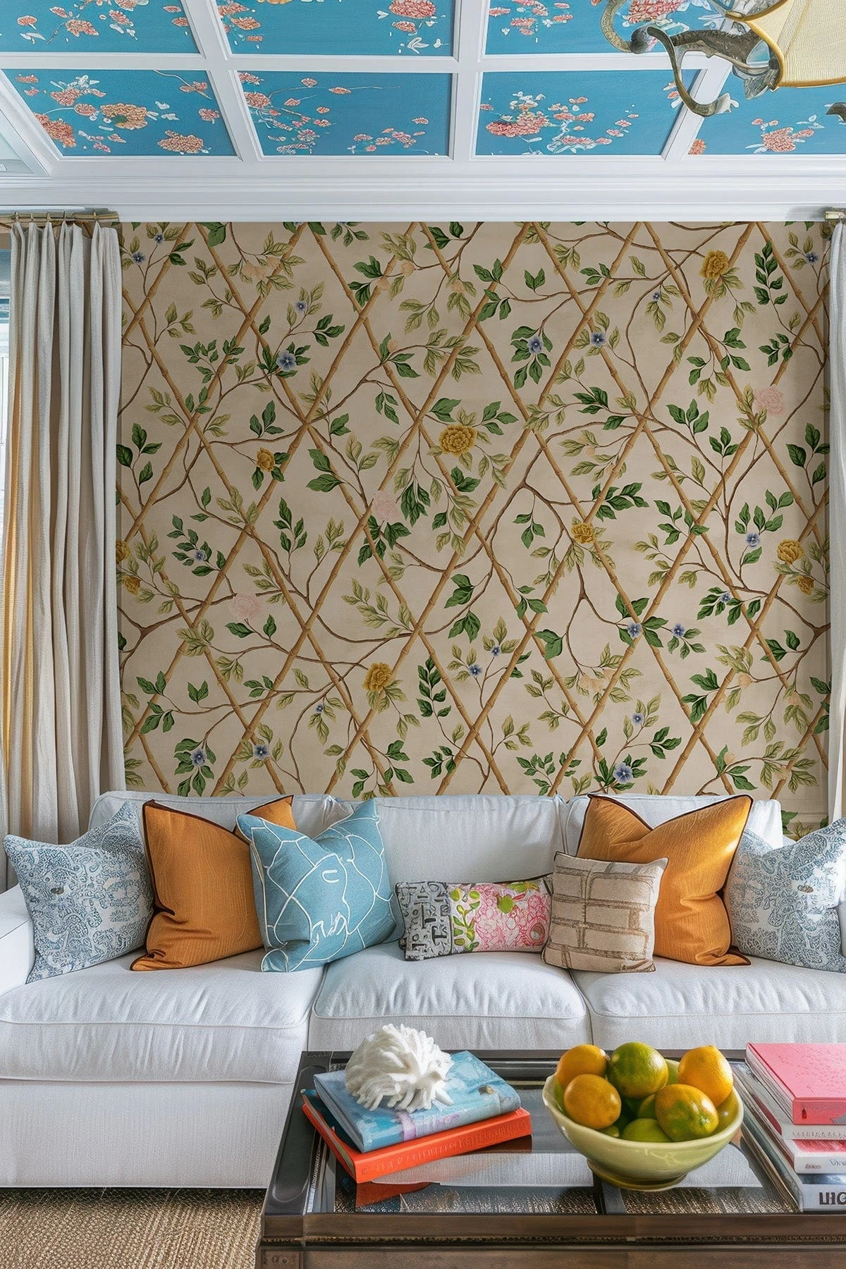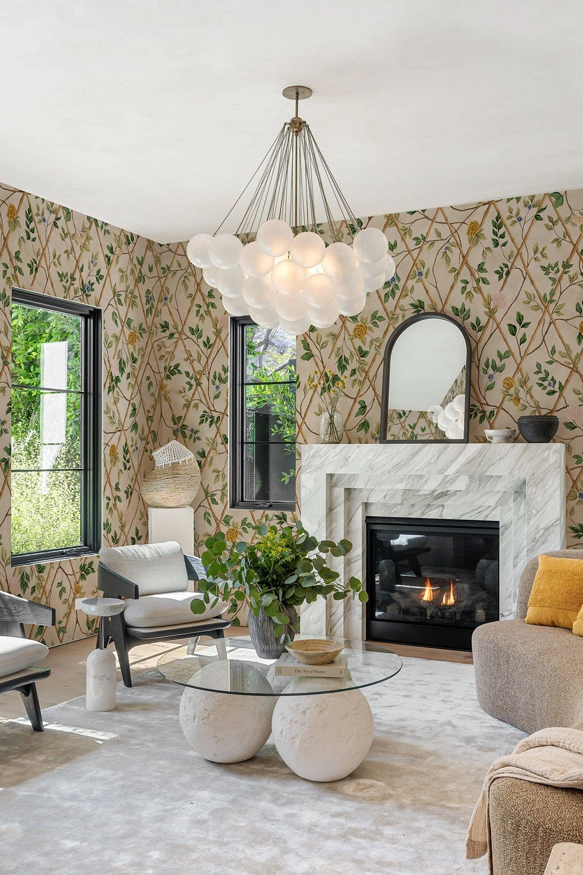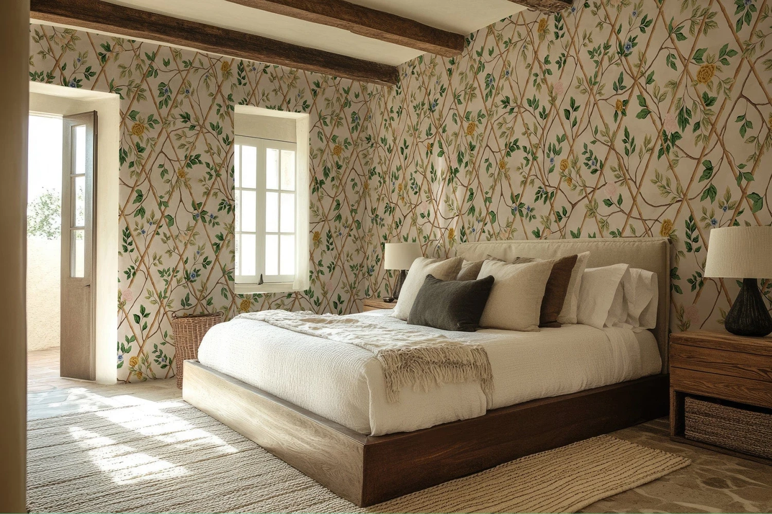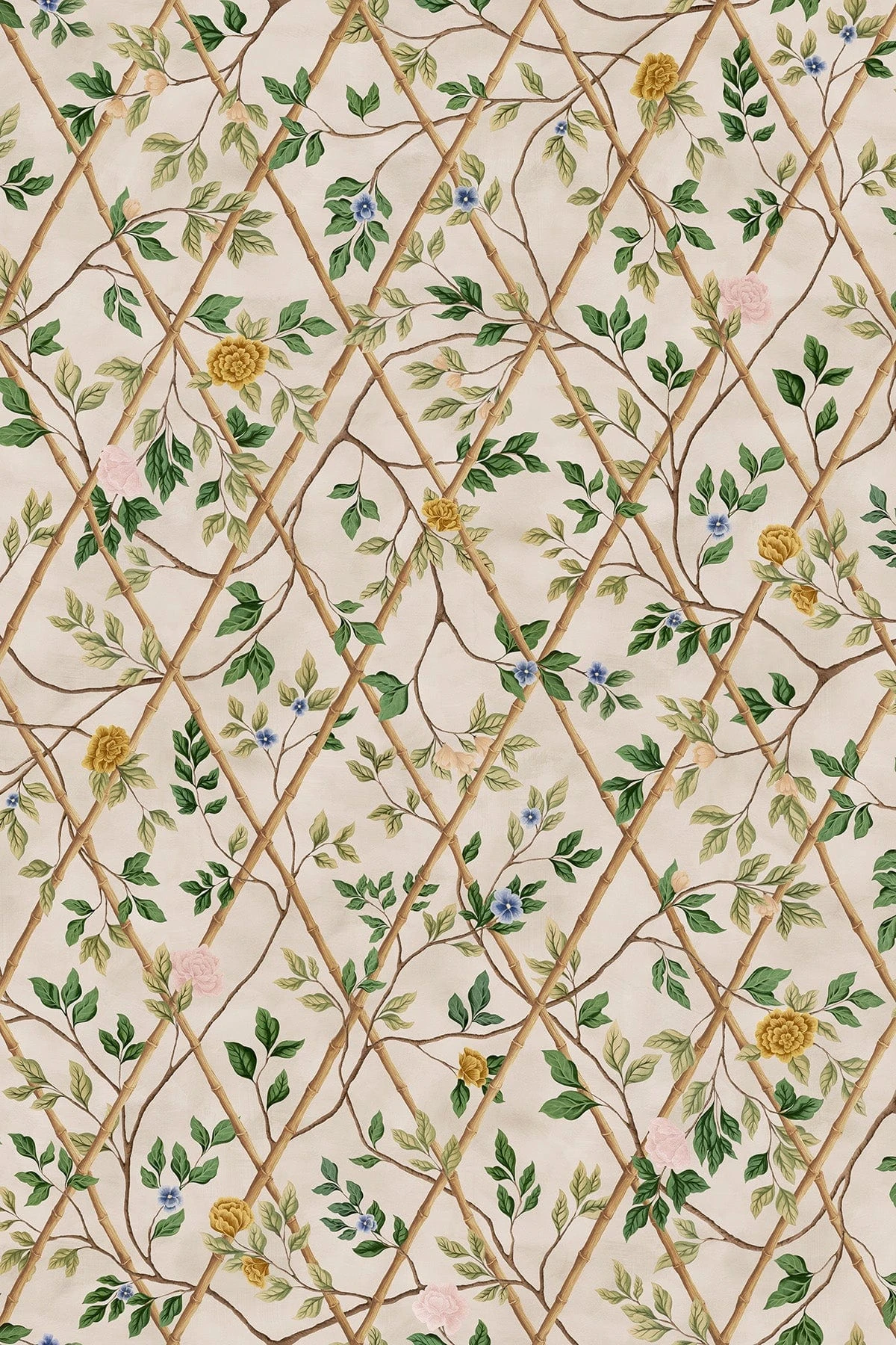 Inspired by vintage Chinoiserie, this wallpaper brings warmth and light to any space. Delicate bamboo stalks and floral details unfold across a soft background, creating a sunlit, botanical expression. The design captures the calm of a tropical morning and the timeless elegance of British heritage, inviting dreams of Caribbean gardens bathed in golden light.