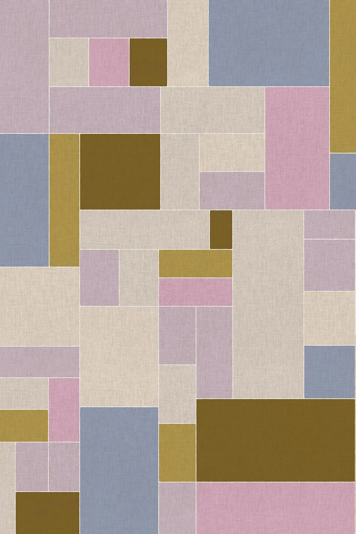 This wall mural features a geometric pattern inspired by vibrant tiles, blending soft pink and green hues. The calm yet playful color palette brings a sense of tranquility to the space, while the bold design adds a striking visual element.