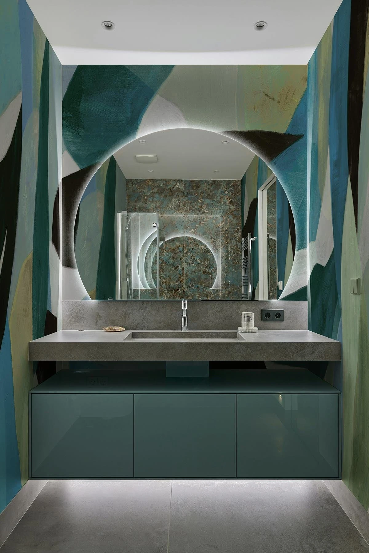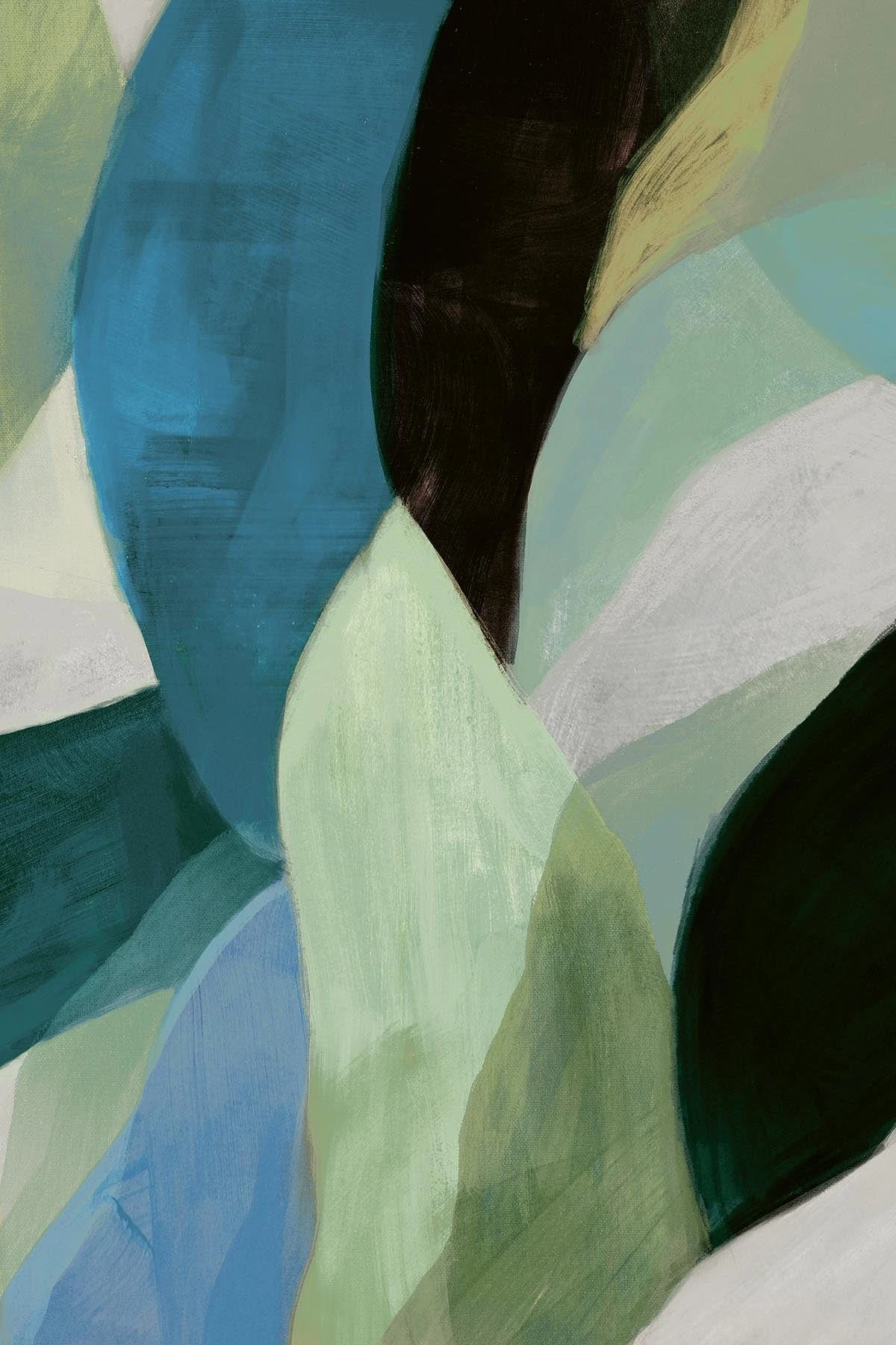 Introducing the Bold Shapes wall mural, an abstract hand-painted design in teal and green. With oversized shapes and bold brush strokes, it nods to Cubism and brings modern art to life. Perfect for contemporary spaces, it adds sophistication and dynamic energy to any room.