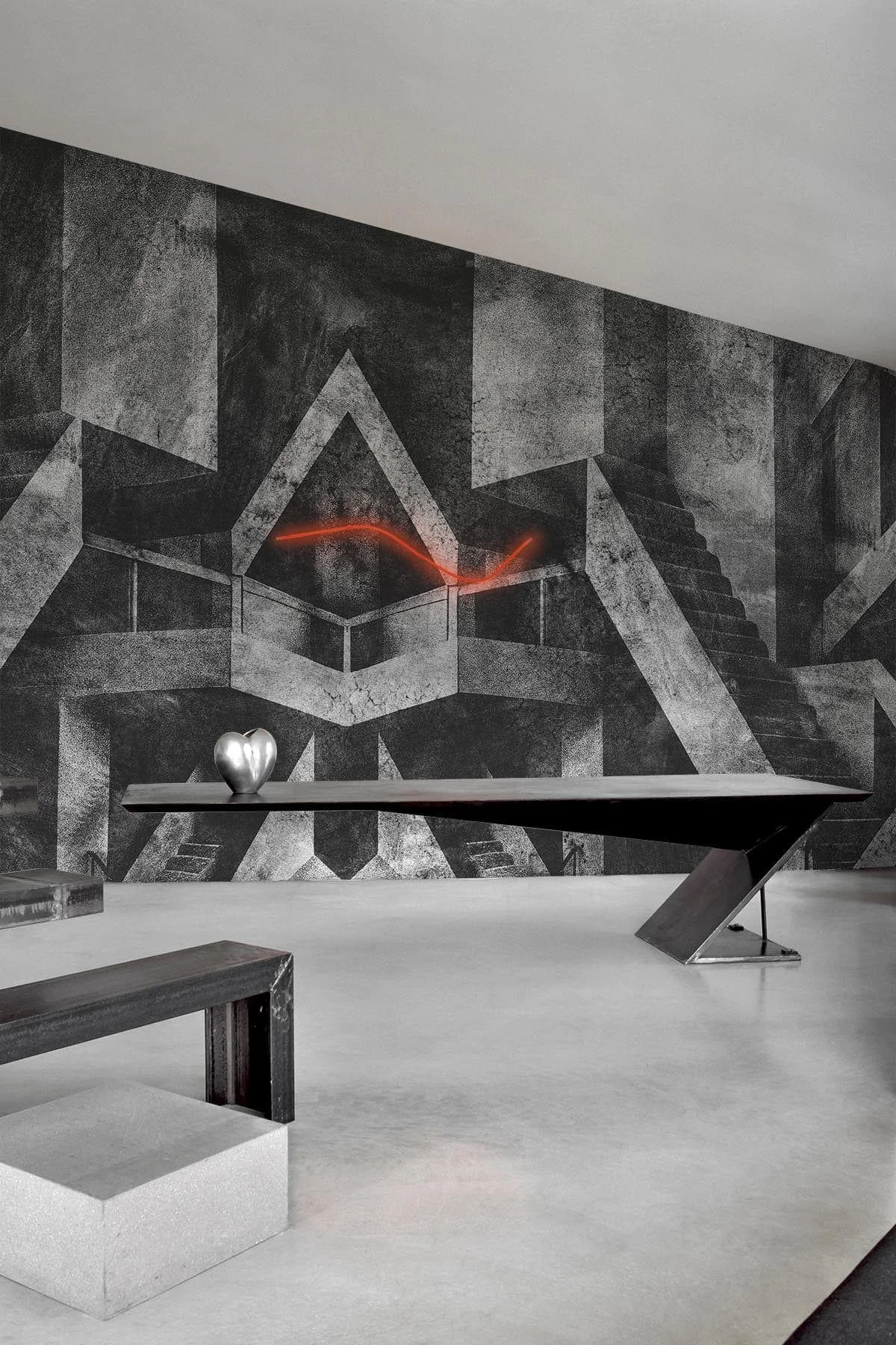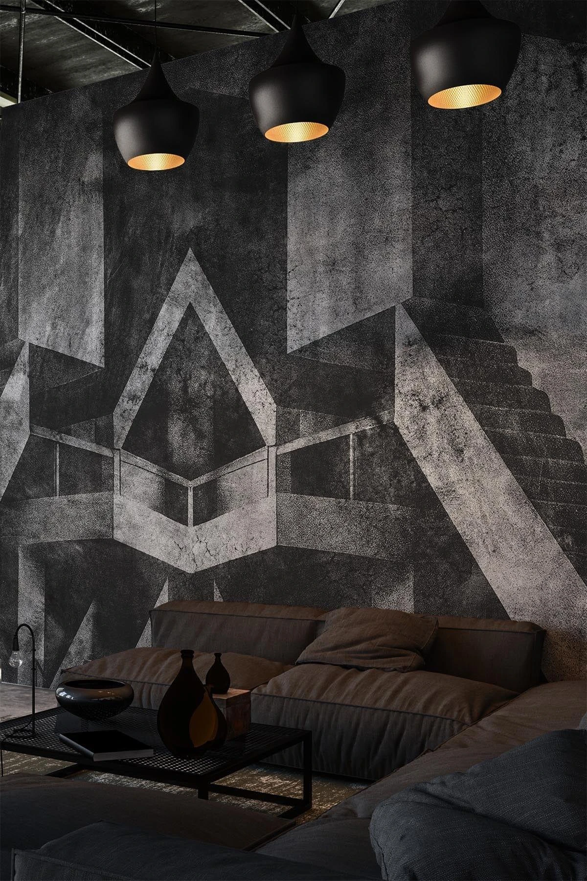 Graphical architectural elements form the look of Brutalist Concrete. It puts the room in an urban scene, capturing the spirit of brutalist architecture. The stacked concrete blocks with rough concrete texture stand as a testament to the close relationship between architecture and sculpture. This black design comes in two colors and each are perfect to add as a conversation design to your walls and create the focal point in your room.