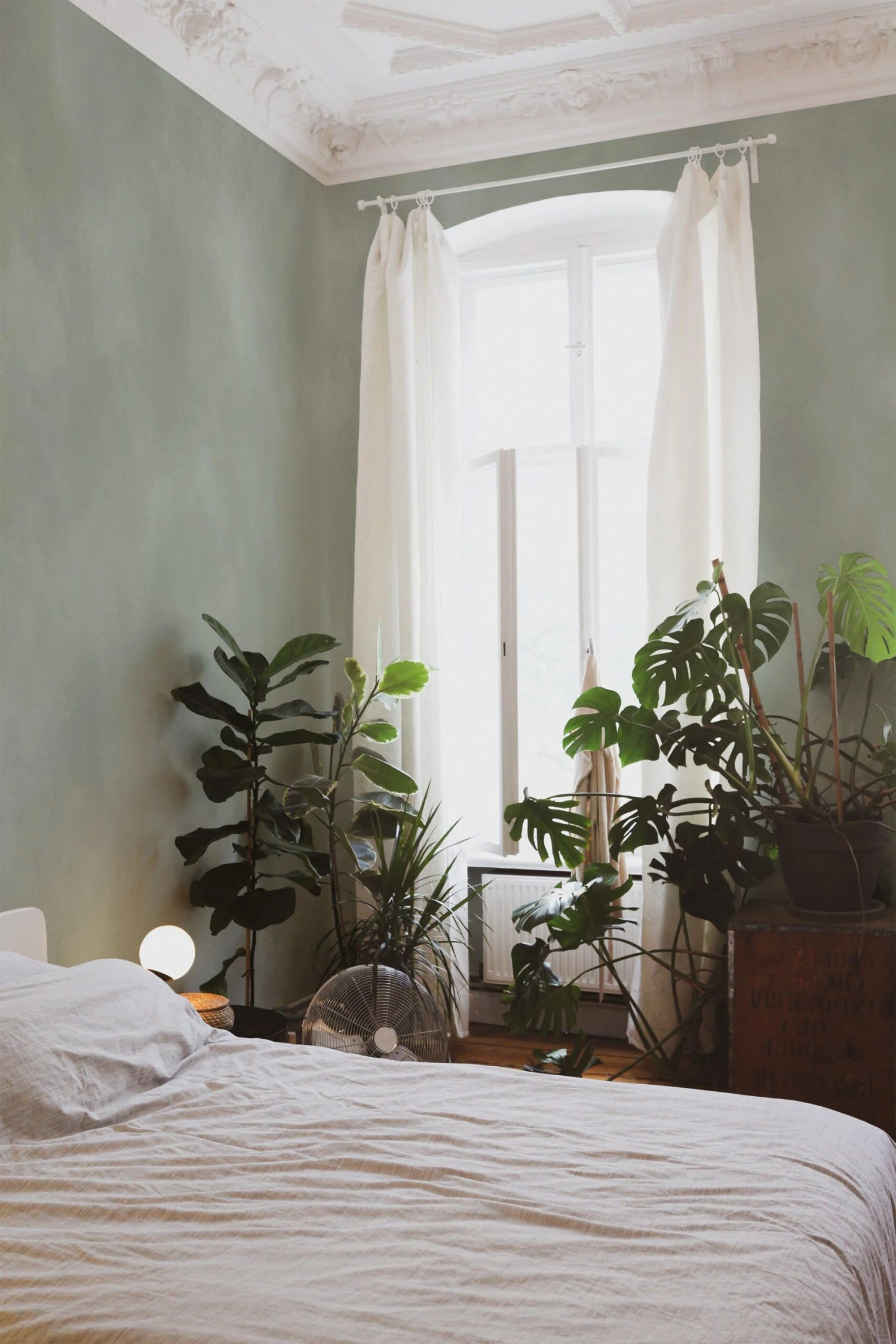 Irregular fadings of chalk paint together with soft tonal green colors. Bringing any space to life in a subtle and unique way.