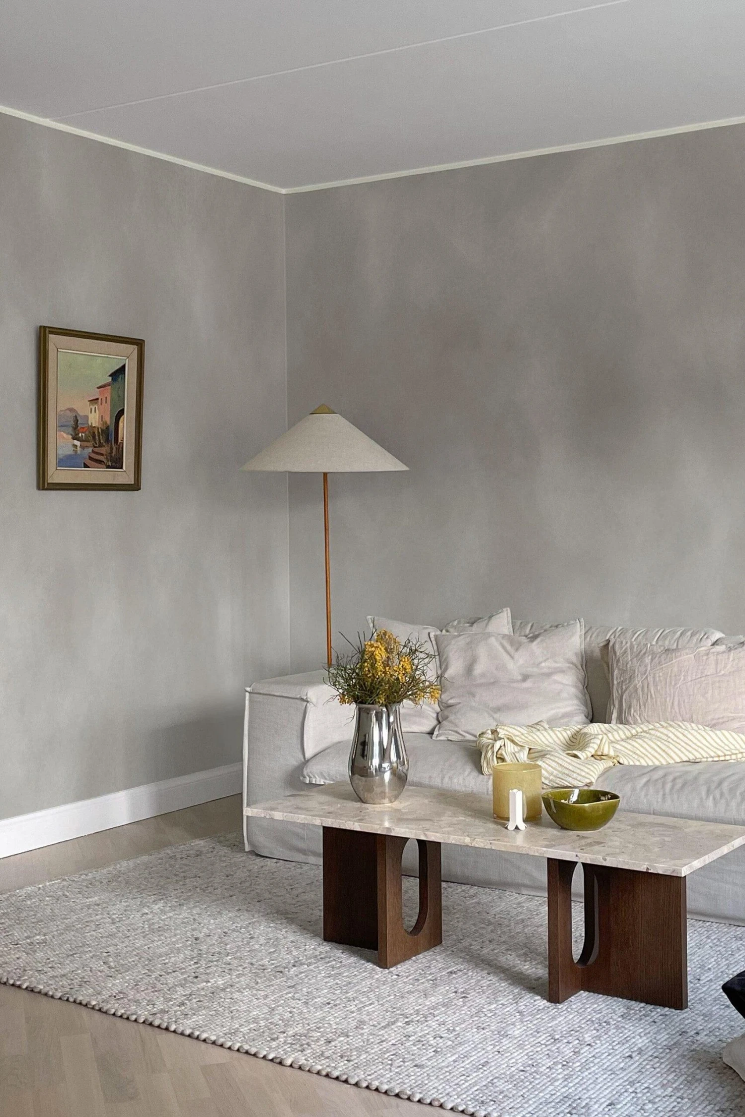 Irregular fadings of chalk paint together with soft tonal greige colors. Bringing any space to life in a subtle and unique way.