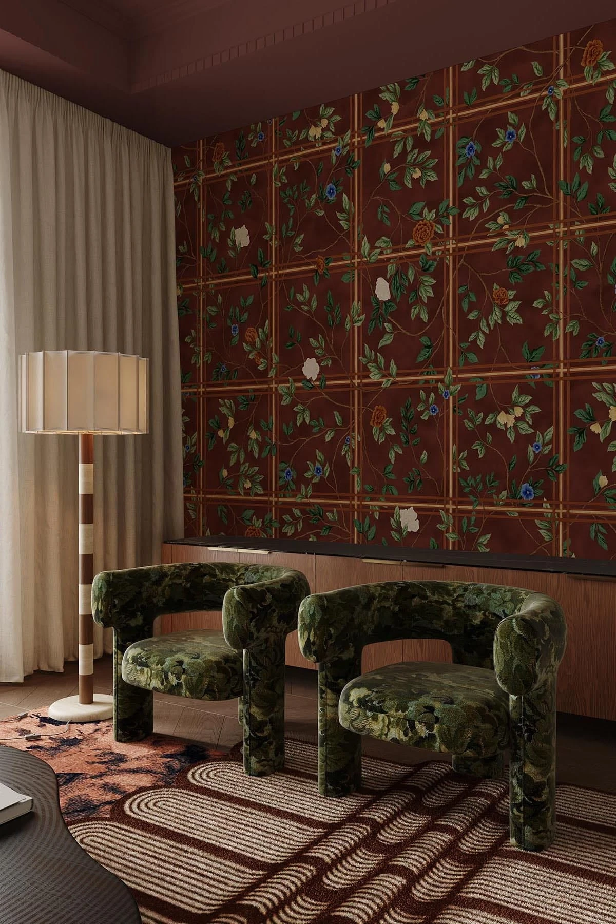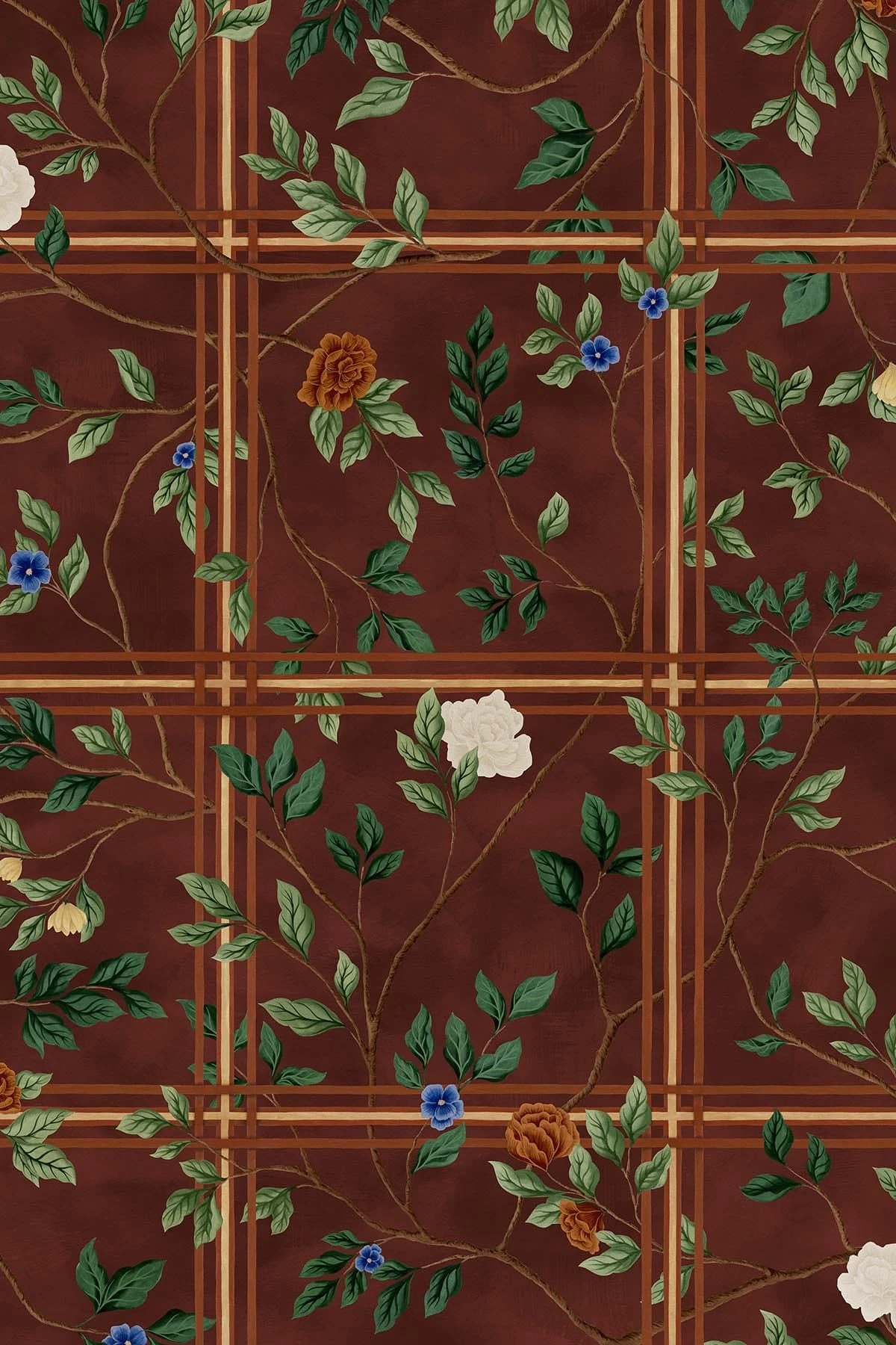 A modern nod to classic opulence, Chinoiserie Check in Marsala Red brings warmth, heritage, and artisanal craft into perfect harmony. Earthy marsala and sand tones create the base for a structured check, while delicate floral branches in white, blue, and yellow add a sense of timeless elegance. Perfect for statement walls that feel both storied and fresh—inviting tradition into the now