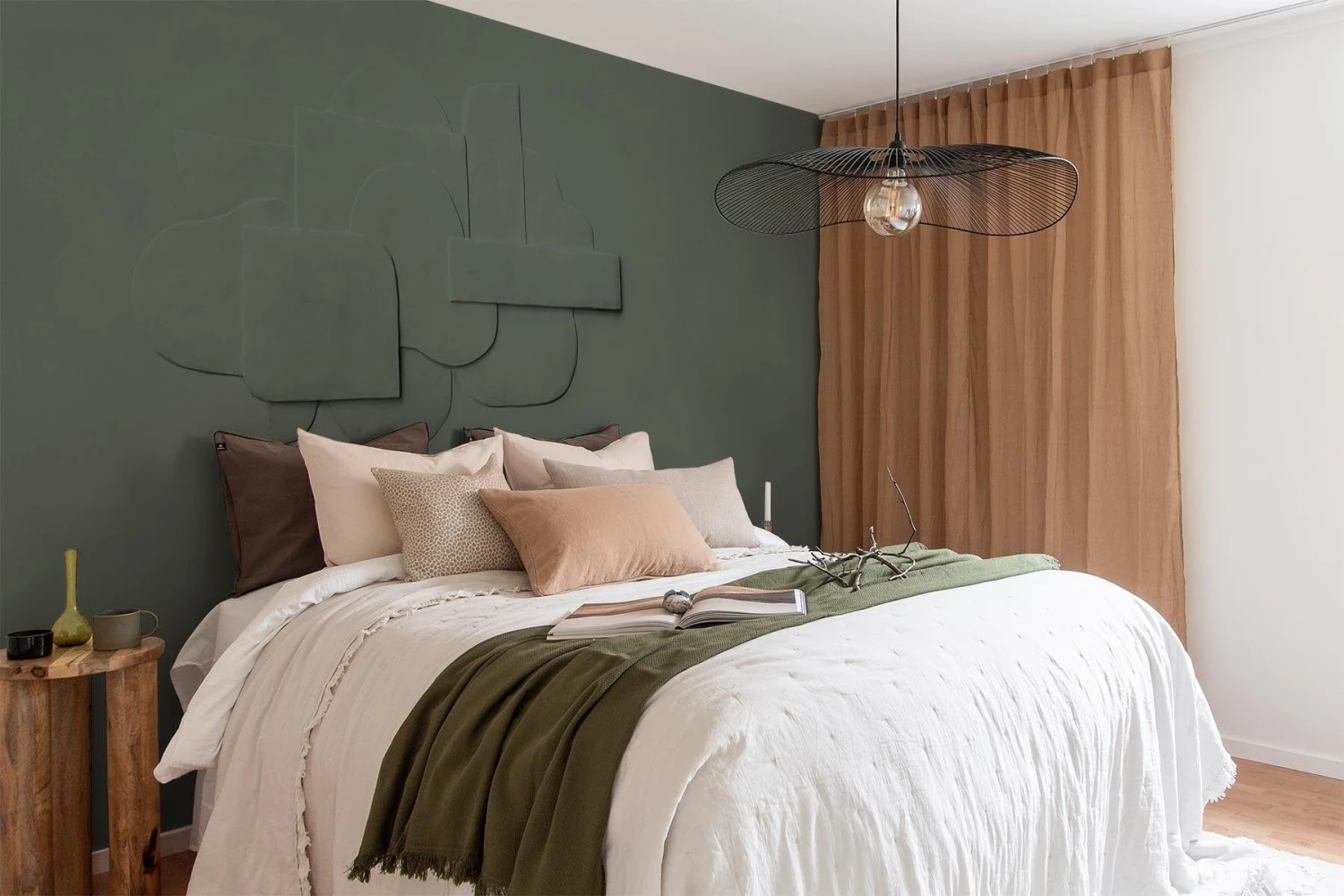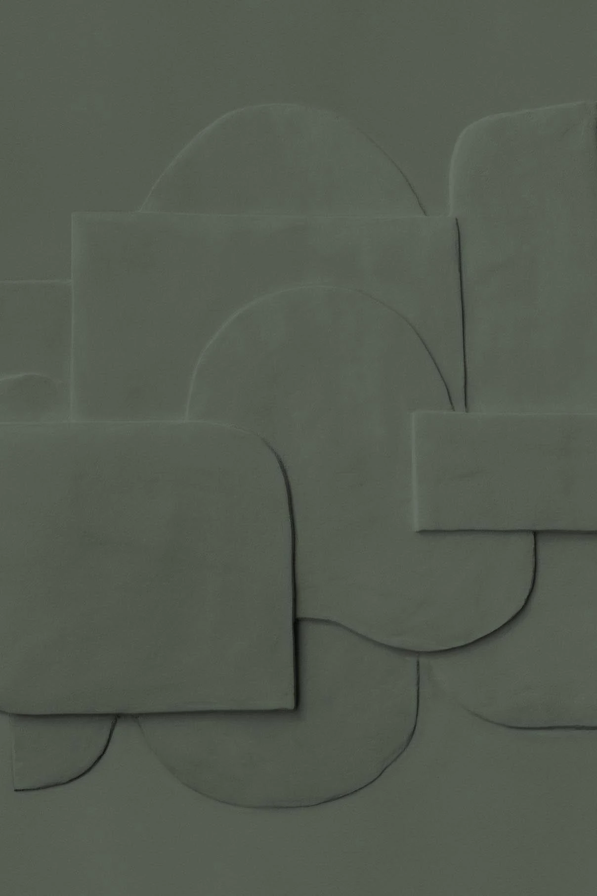 This green wall mural is created from a model out of layers of clay in various shapes giving your space a three dimensional art piece. Hand made and indeed capturing the Wabi Sabi view, of embracing the perfection of the imperfection. Art with a focus on timeless aesthetics and simplicity. Note: This is wall mural with a visual 3D look printed on flat non woven paper.