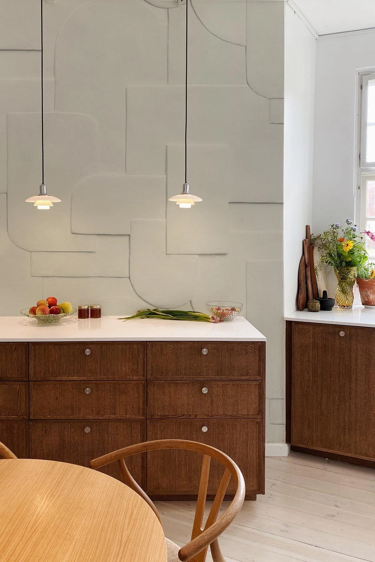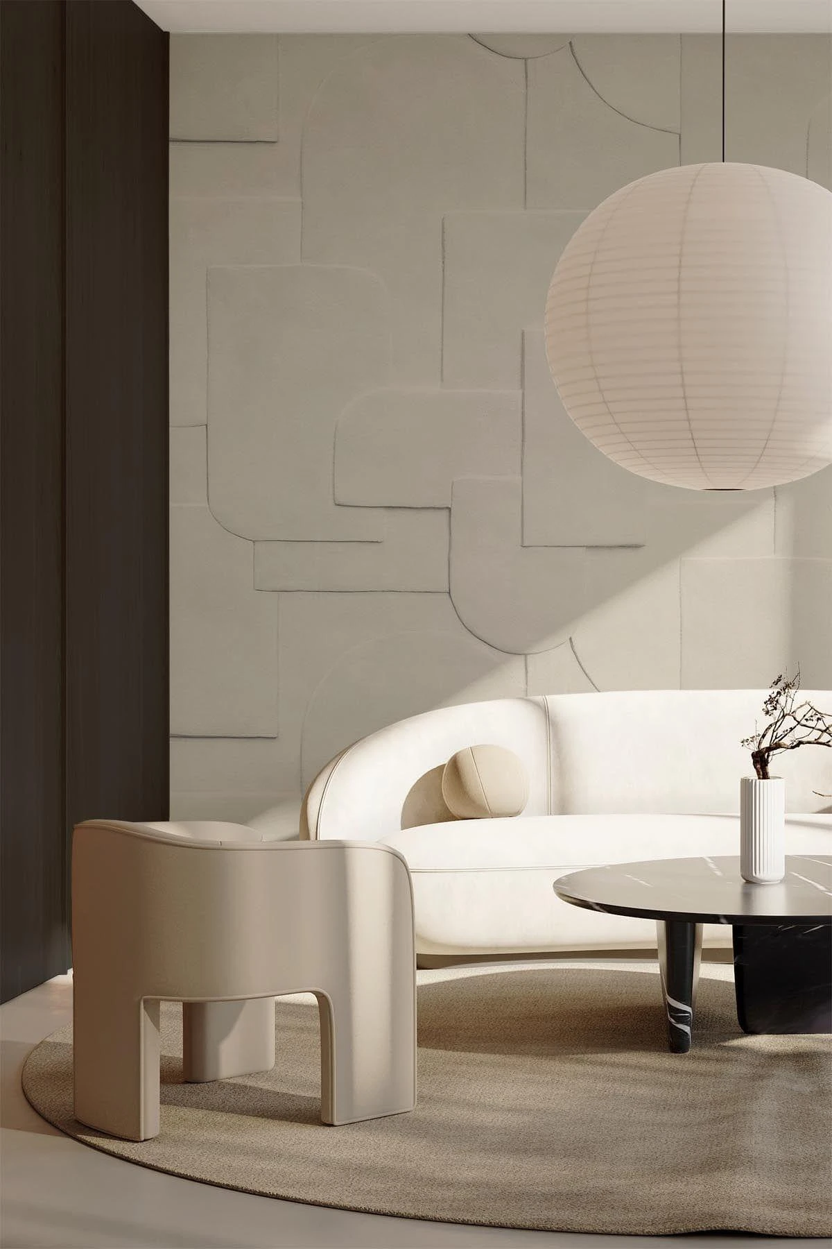 This beige wall mural is created by hand from layers of clay in various shapes and depths, creating the perfect 3D illusion. The pattern brings out the geometrical asymmetry and truly embraces the wabi sabi point of view and accepts the beauty that is found in the imperfection. This Japandi inspired clay art with a focus on aesthetics and simplicity is a true timeless wall mural. Note: This is wallpaper with a visual 3D look printed on flat non woven paper.