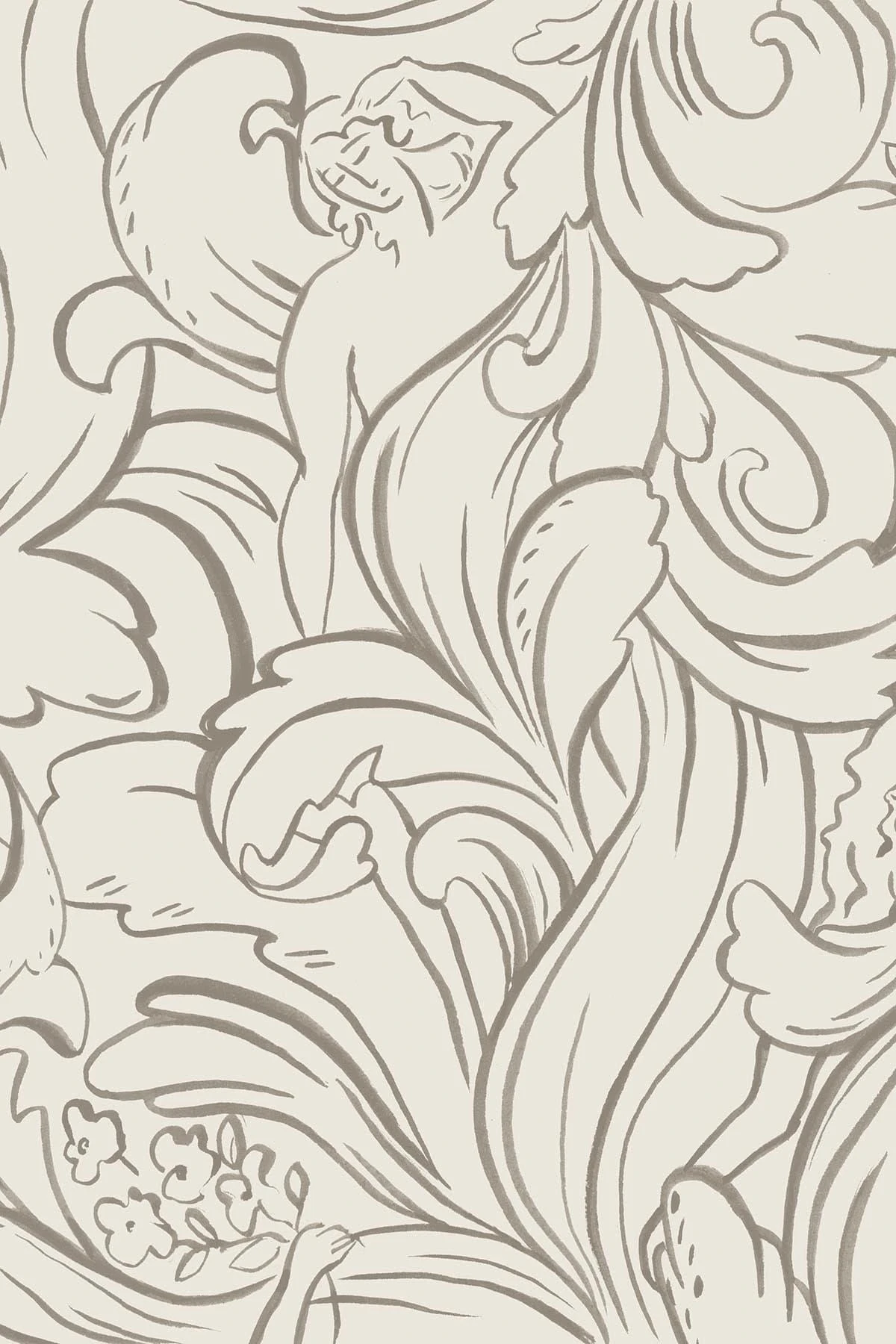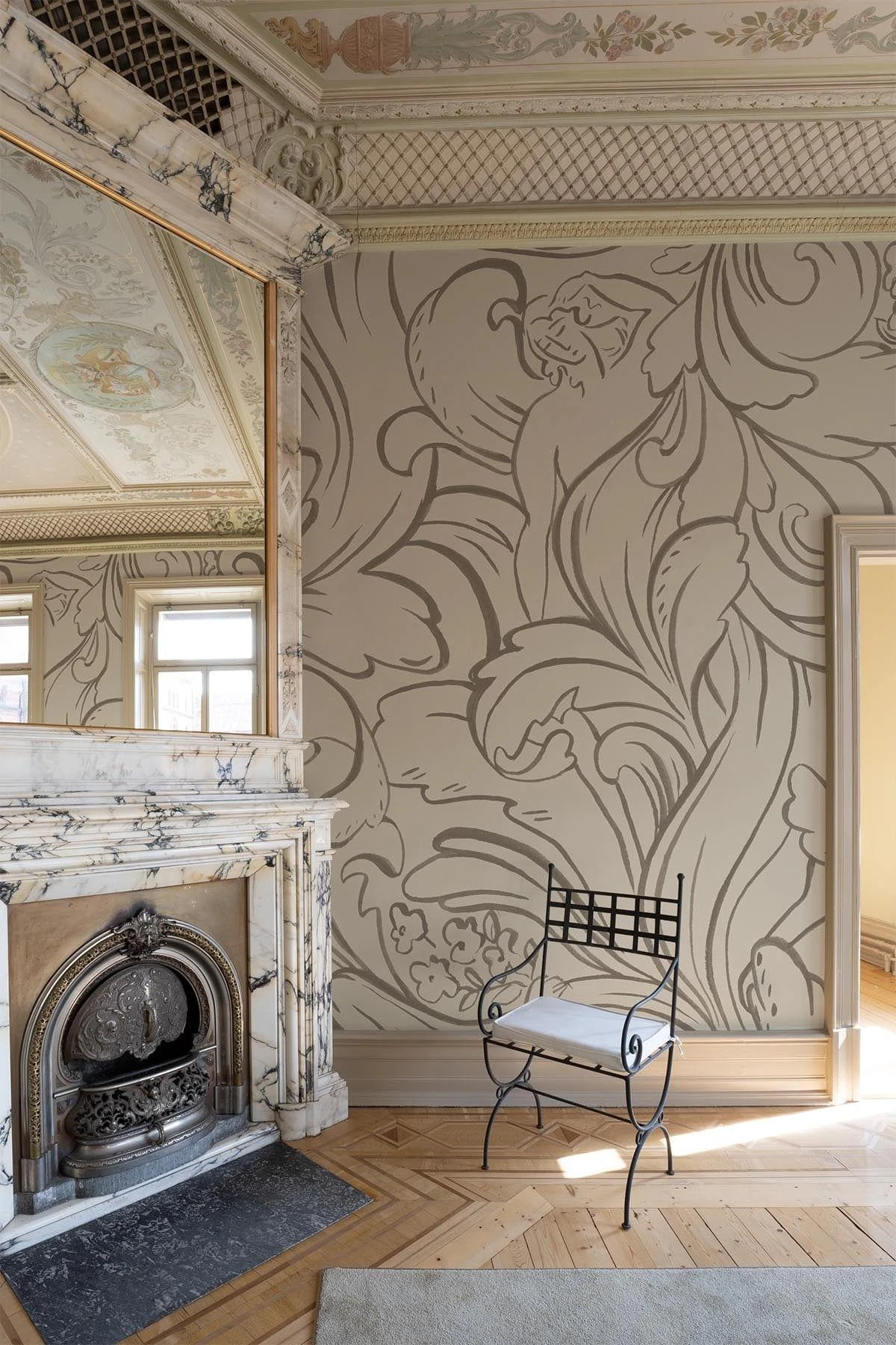 Contemporary Ornament in taupe is inspired by the old world nobility meets cuttingedge design. It is a new modern take of the damask wall murals often seen in mediterranean palaces back in the days. This time we have scaled it up and given it a 21th century boldness to it. The ornaments are made of gouache that adds a soft structure. The range of colors in this vibrant design gives space to achieve your very own Italian escape. Combine this with contemporary interior and the perfect match is made.