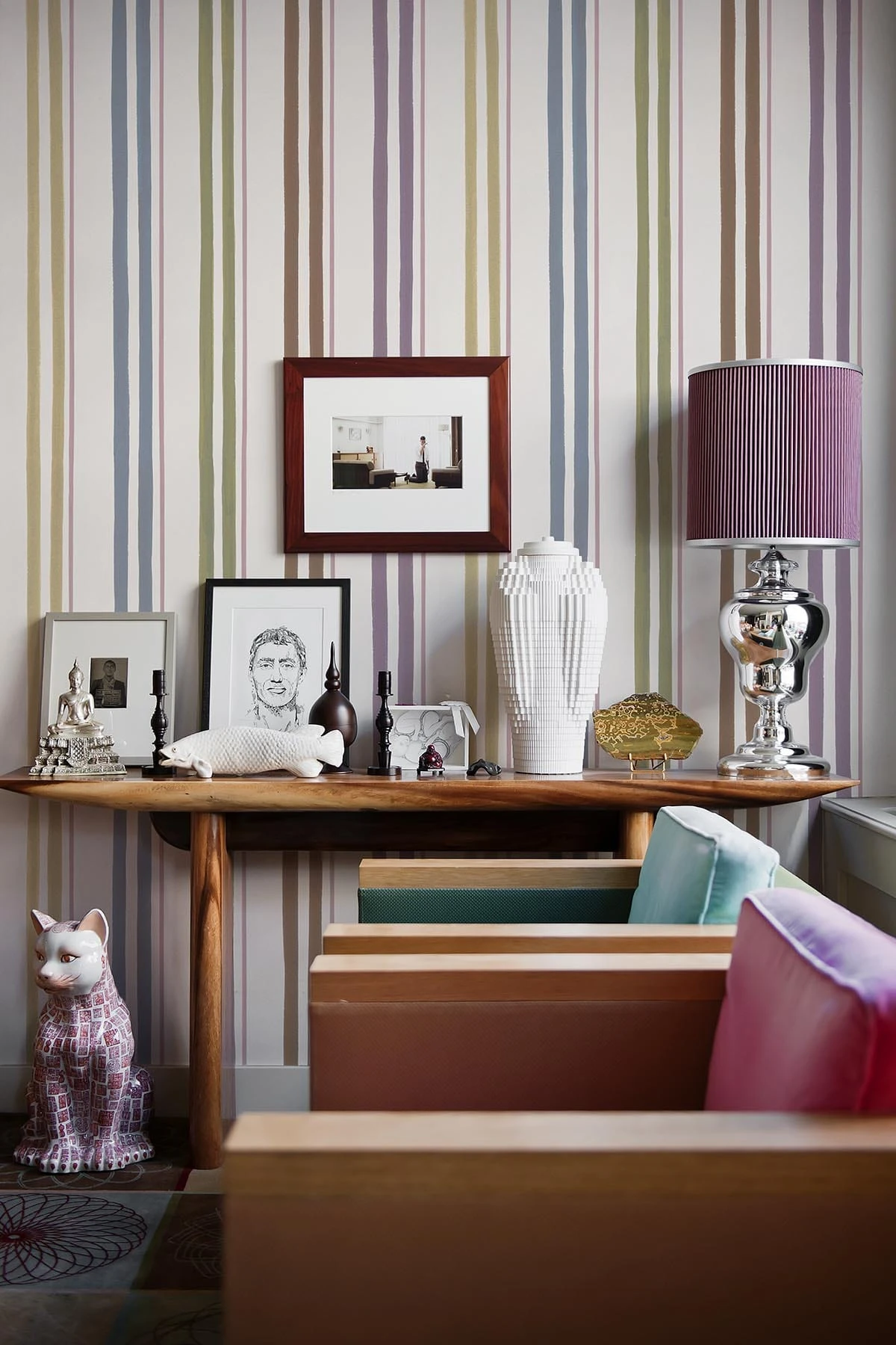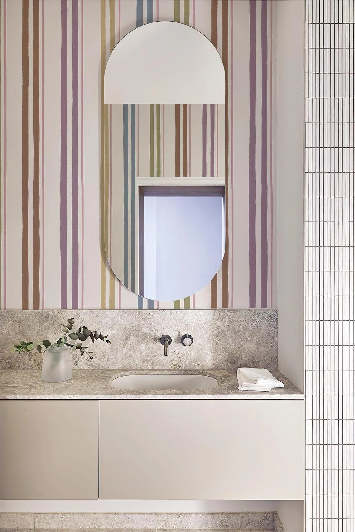 Straight from the world of shirts, the Contemporary Stripe wall mural is heavily influenced by satin stripes. This hand painted design in a multi pastel color way is the perfect choice for a space that needs a pop of color.