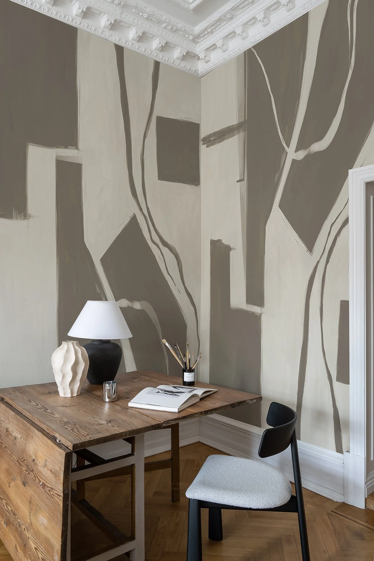 Subtle and composed, Contrast Art – Grey offers a neutral interplay of abstract shapes and deliberate brushwork in tones of soft cream and grey. Rooted in craftsmanship, the pattern flows like a quiet conversation between art and structure. Geometric yet freeform, it’s a modern take on Nordic minimalism, ideal for serene spaces that call for a thoughtful visual rhythm.