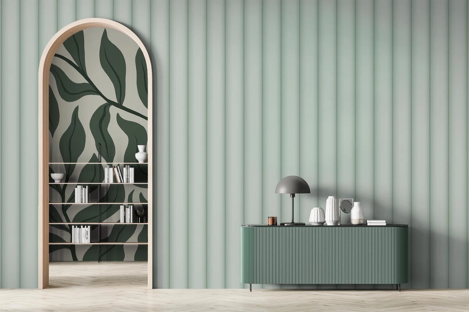 Curved stripes in a large scale with a three dimensional look. This design has an enhanced paper structure to give it more depth and texture.