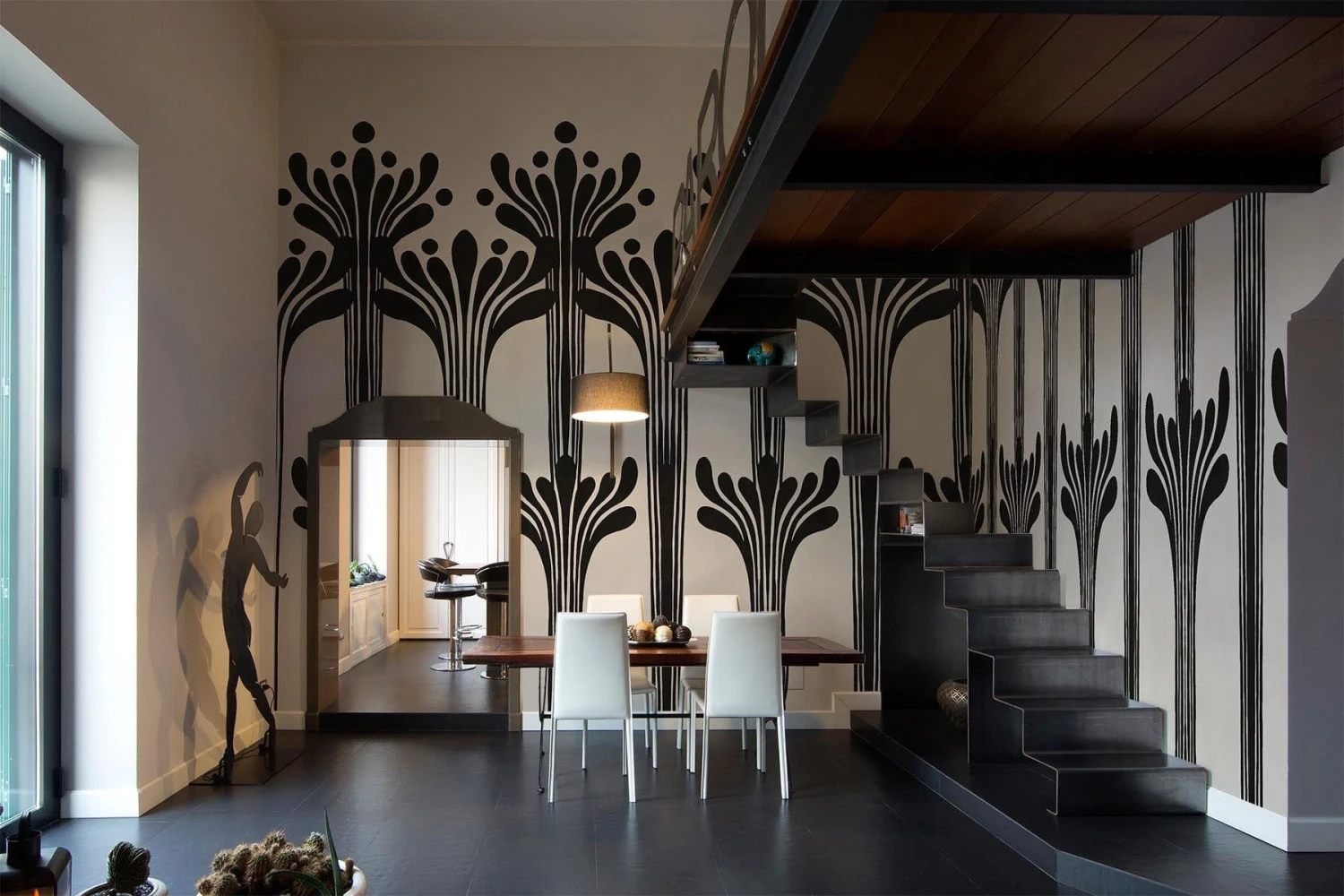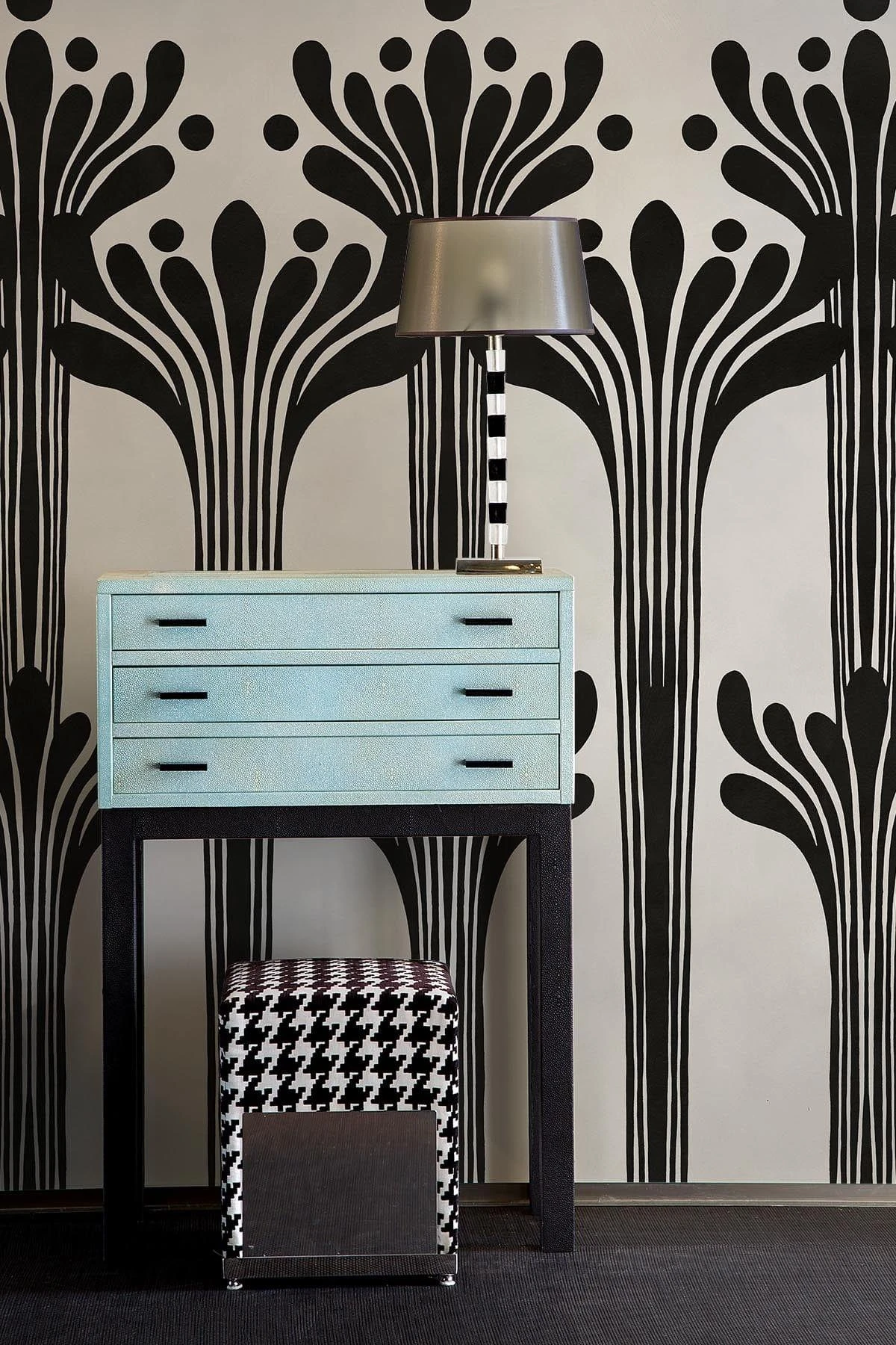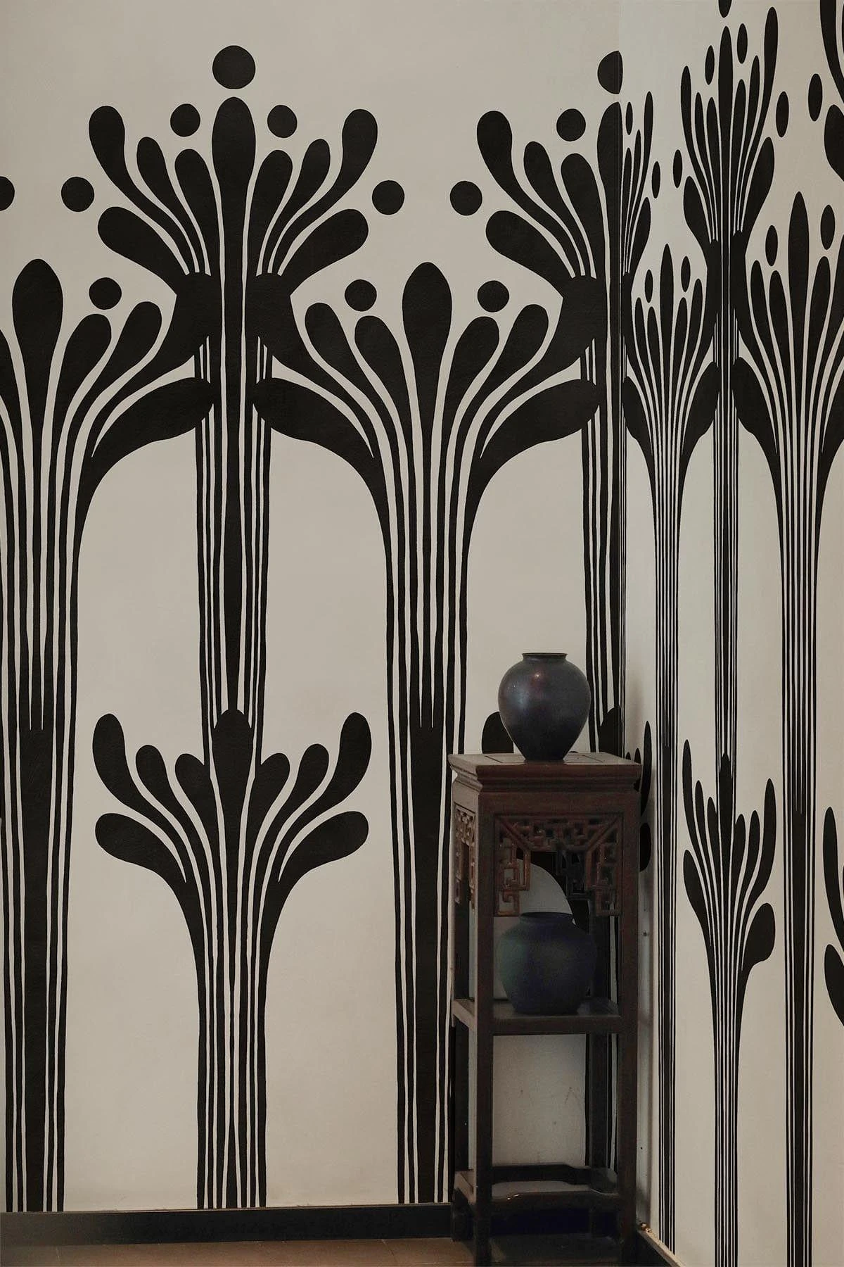 A unique and bold design with inspiration taken from the Art Deco movement of the early 20th Century. This graphical figurative design shows an Art Deco flower growing from the floor and up is a true one of a kind statement piece.