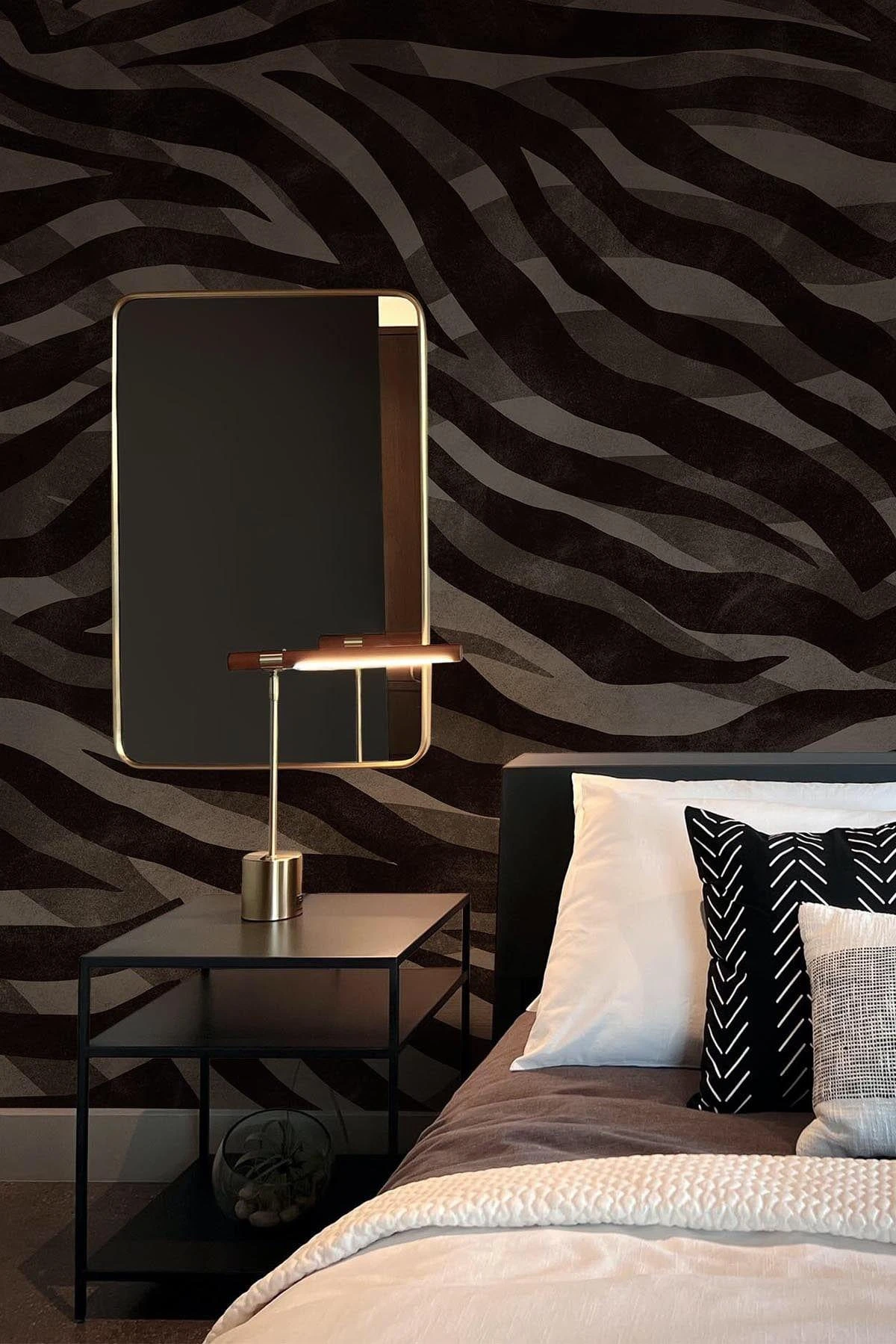 A long loved animal zebra wall mural in a new version. This one in a luxurious dark color for that ultimate luxurious and dark home feel.