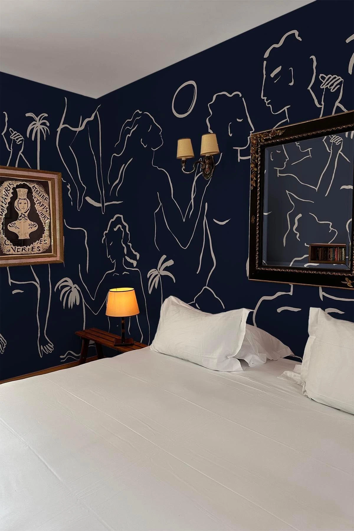 Floating bodies in blue evokes feelings of freedom and a sense of airiness through an elevated sense of artistry and uniqueness with its big scale. The design is developed through painted lines with a wide brush which creates a stunning sketchy feeling. With inspiration from the colorful Chateaus on the airy coastline of Provence, this hand-painted wall mural features body shapes in a balanced rhythm. This artistic wall mural is the most minimalistic design in the collection and can be used in both a more neutral interior as well as in a bold and colorful one. Transform your living room, bedroom or dining room with this versatile design and whats great it comes in three lovely colorways.