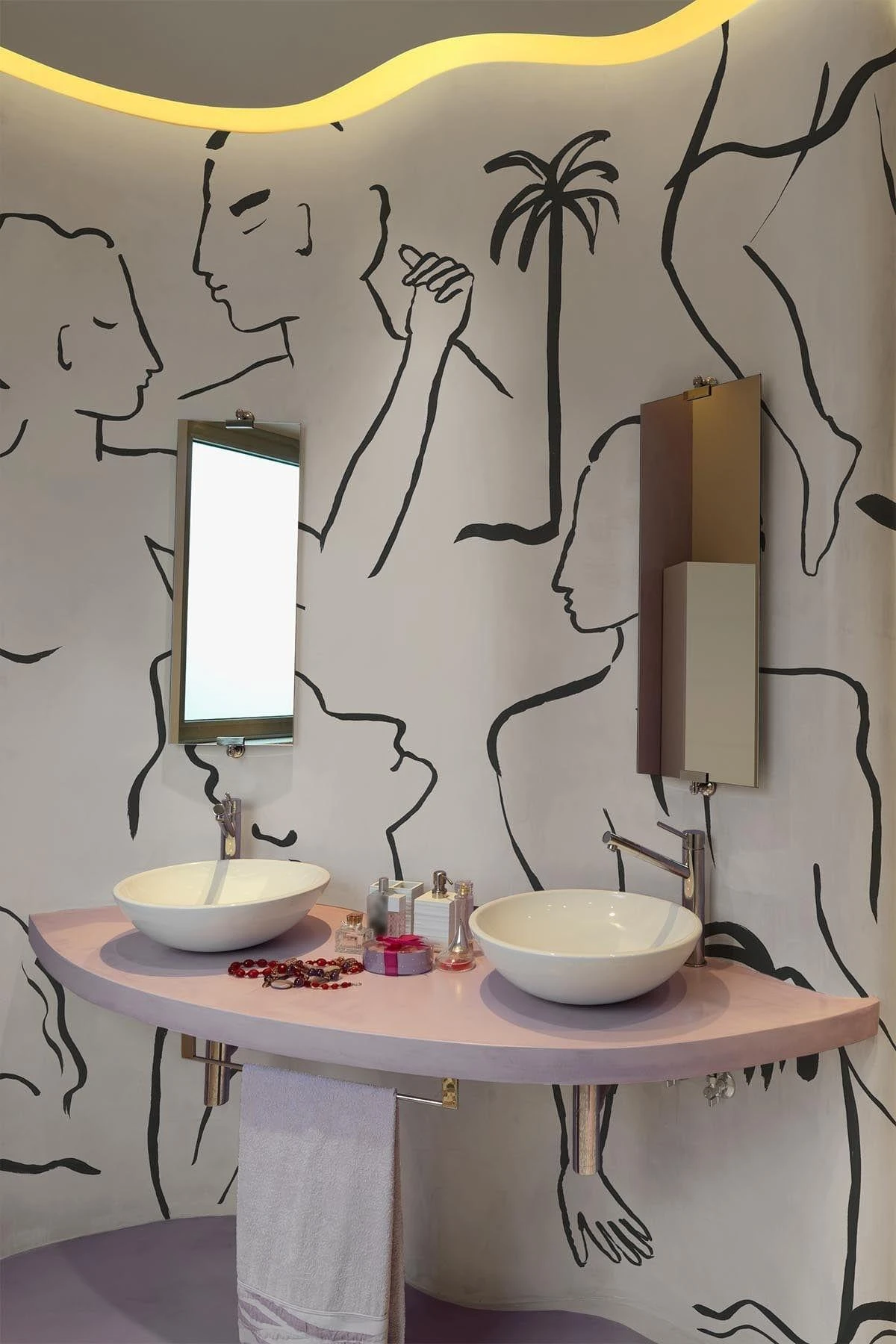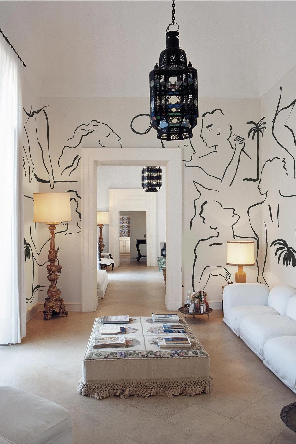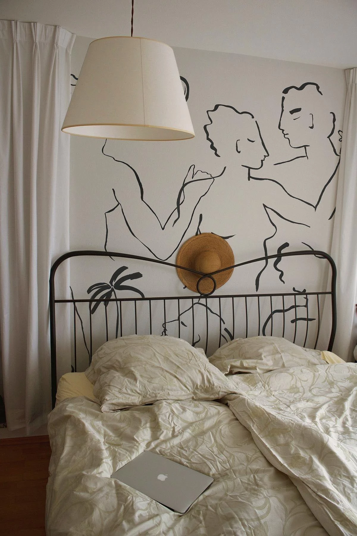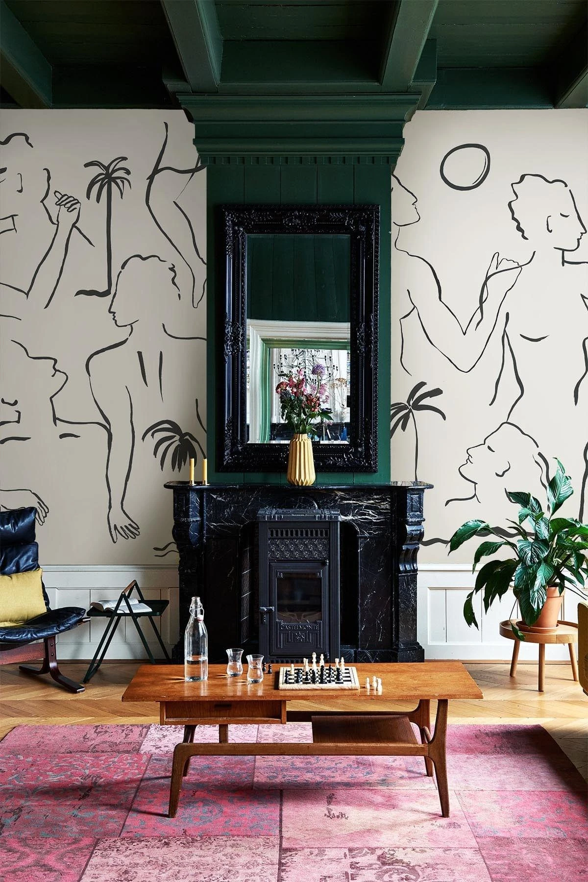 Floating bodies in white evokes feelings of freedom and a sense of airiness through an elevated sense of artistry and uniqueness with its big scale. The design is developed through painted lines with a wide brush which creates a stunning sketchy feeling. With inspiration from the colorful Chateaus on the airy coastline of Provence, this hand-painted wall mural features body shapes in a balanced rhythm. This artistic wall mural is the most minimalistic design in the collection and fits perfect in a more neutral interior. Transform your living room, bedroom or powder room with this versatile design. This stunning wall mural comes in Off White, Rust Red and Dark Blue