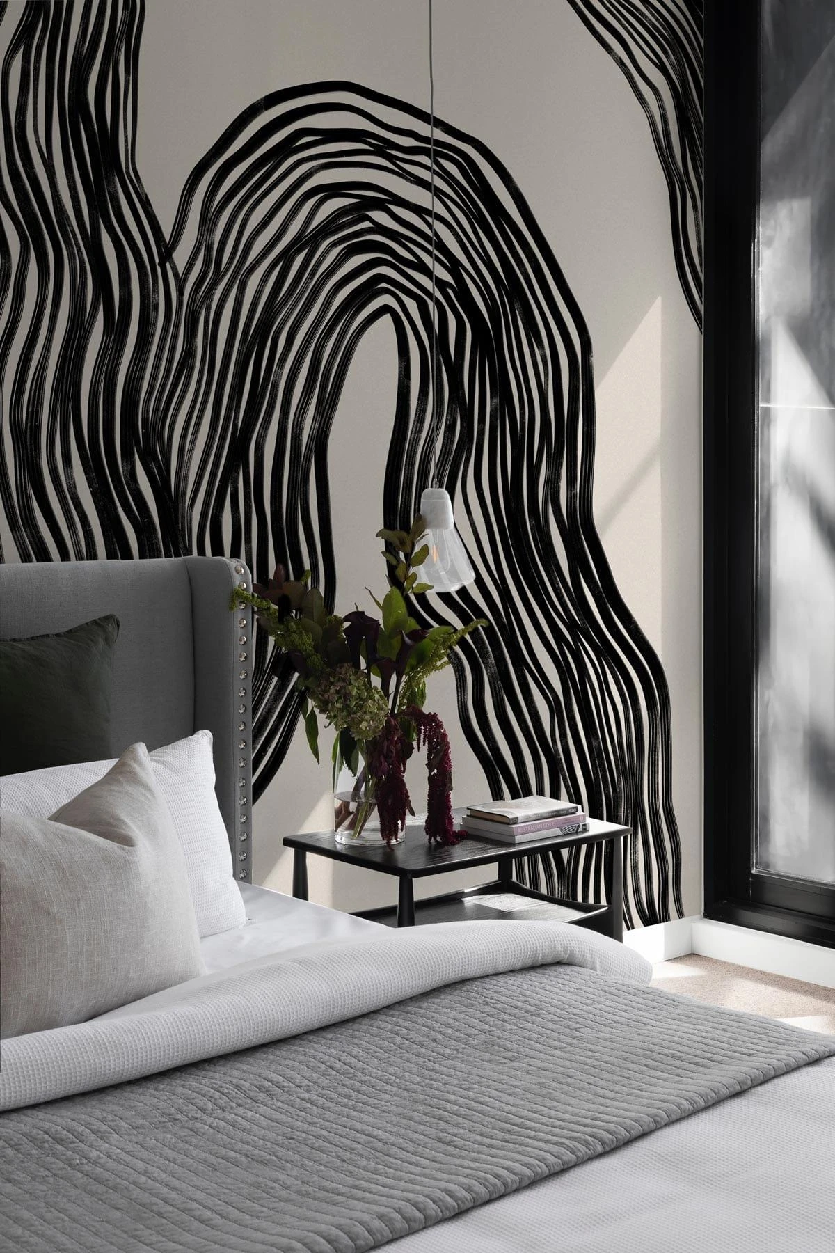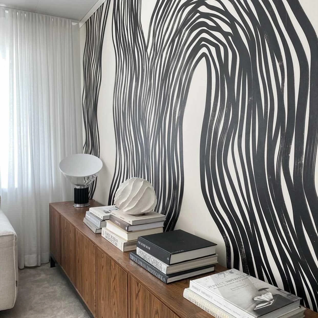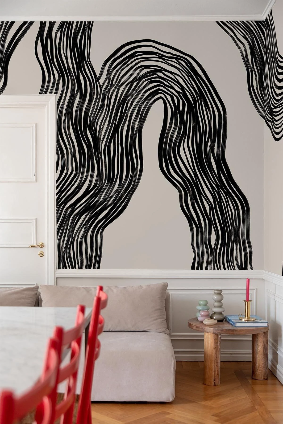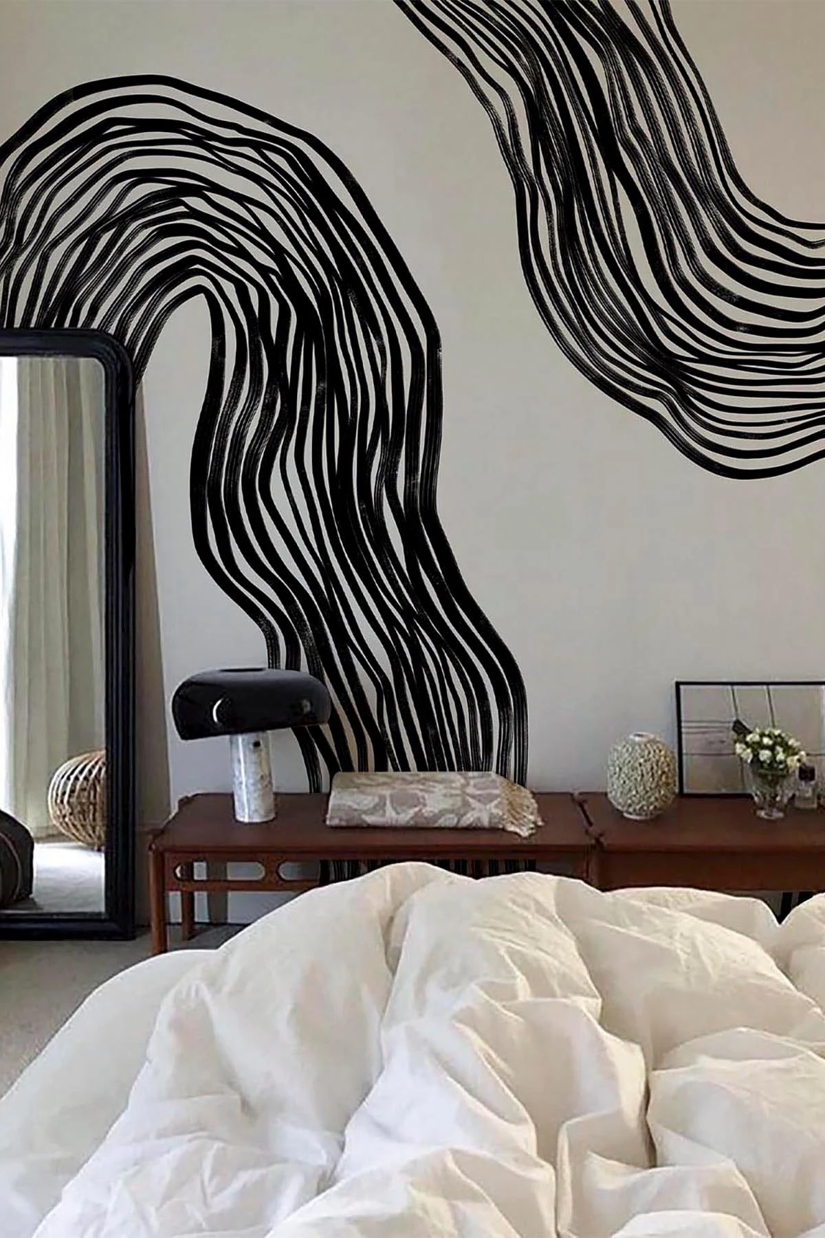 Hand painted brushstrokes lines up into an organic shape. This design creates a true statement look in your space