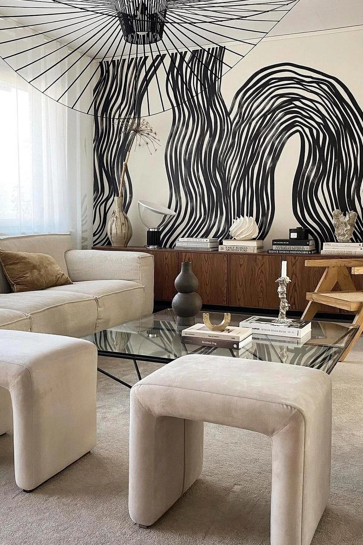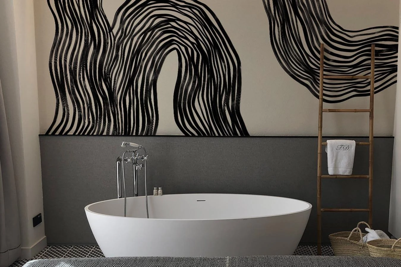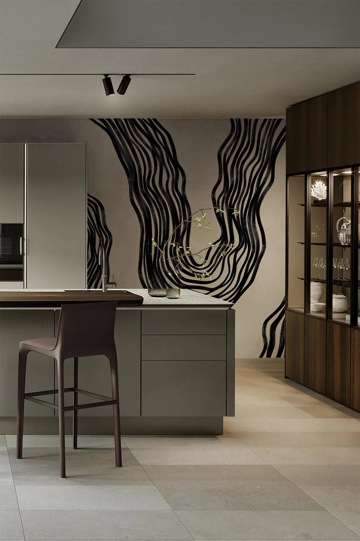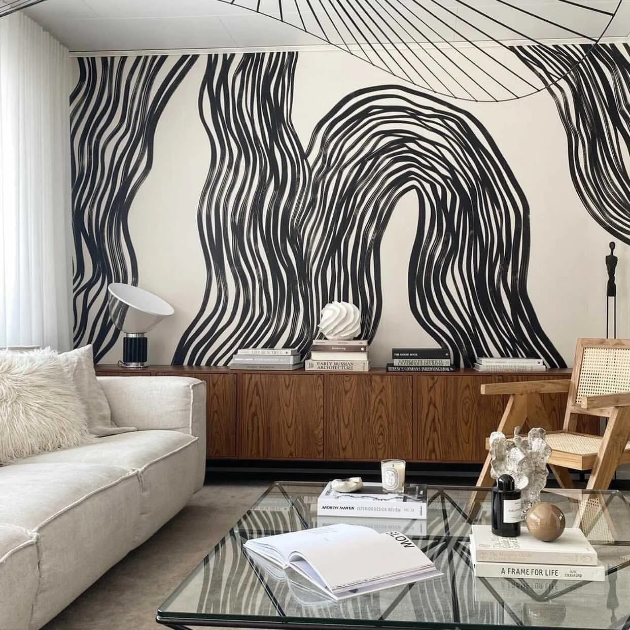 Hand painted brushstrokes lines up into an organic shape. This design creates a true statement look in your space