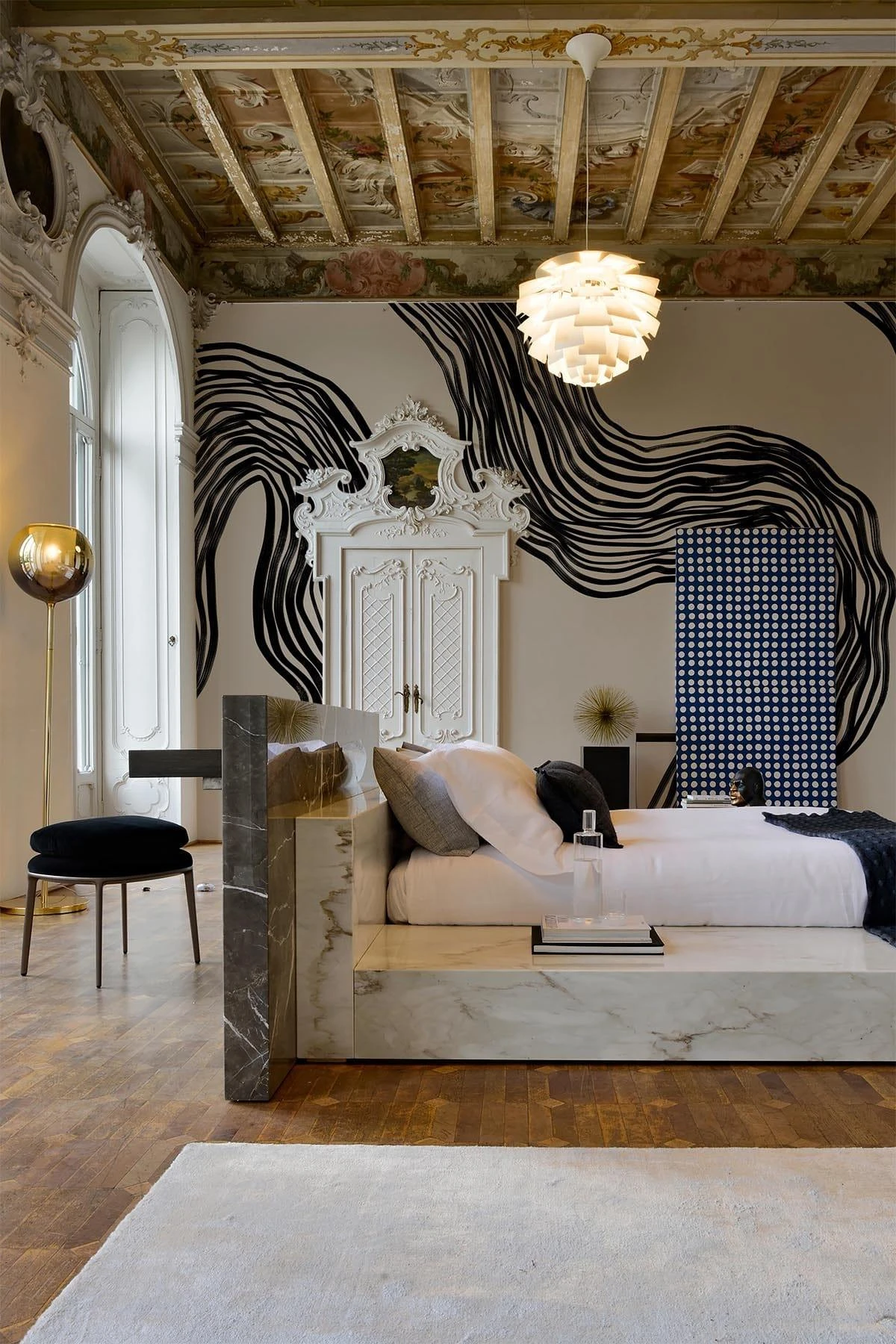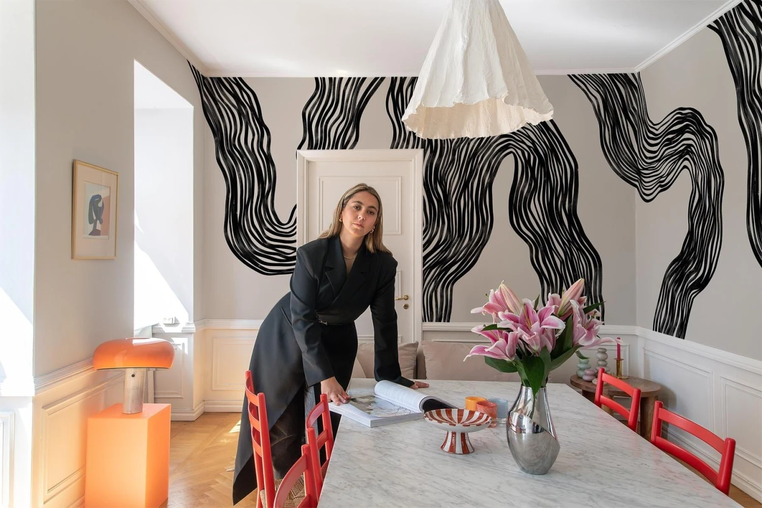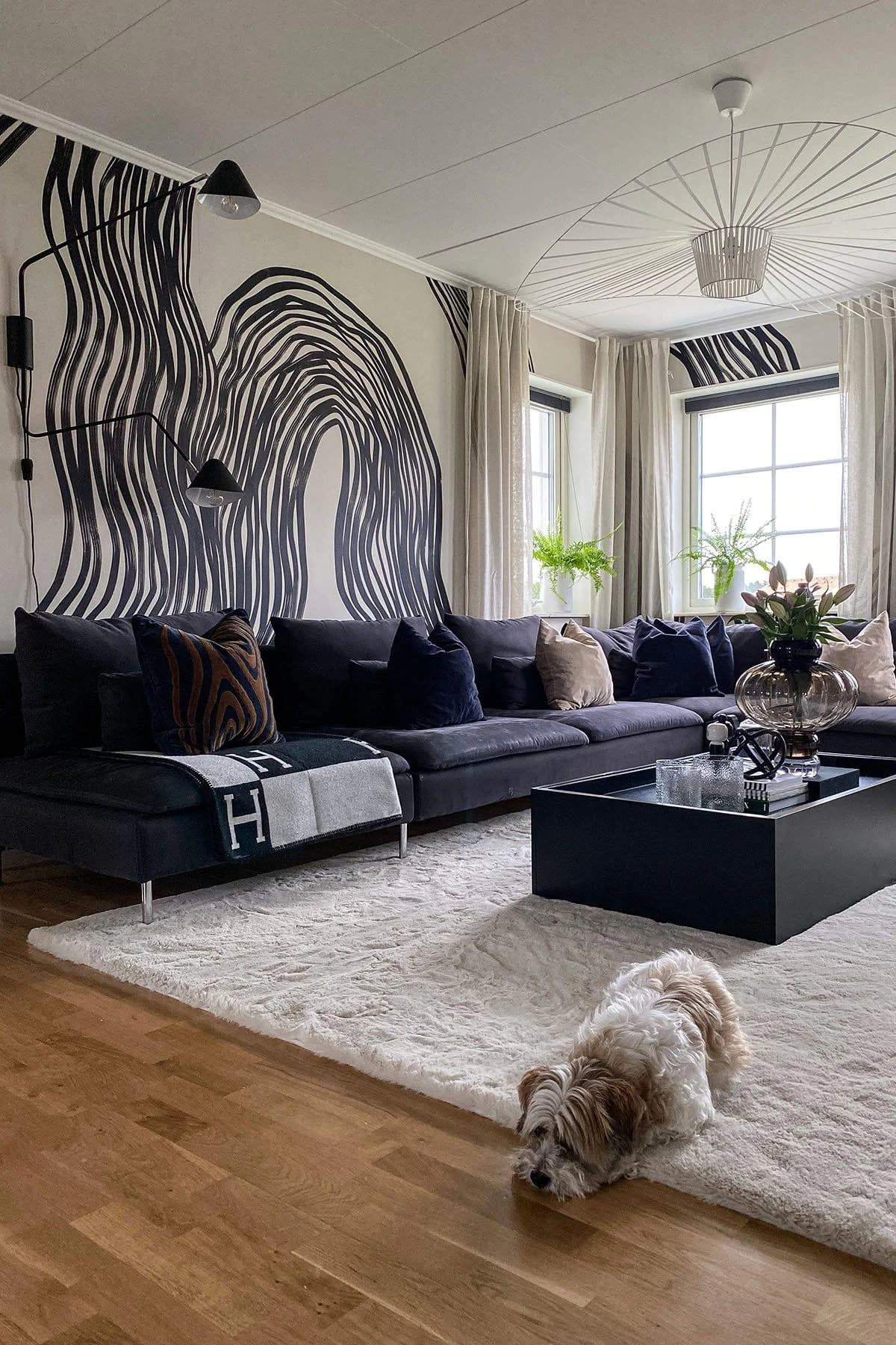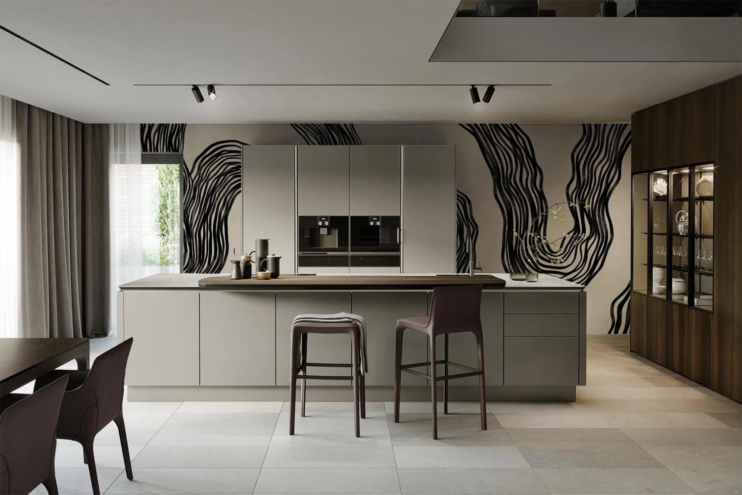 Hand painted brushstrokes lines up into an organic shape. This design creates a true statement look in your space