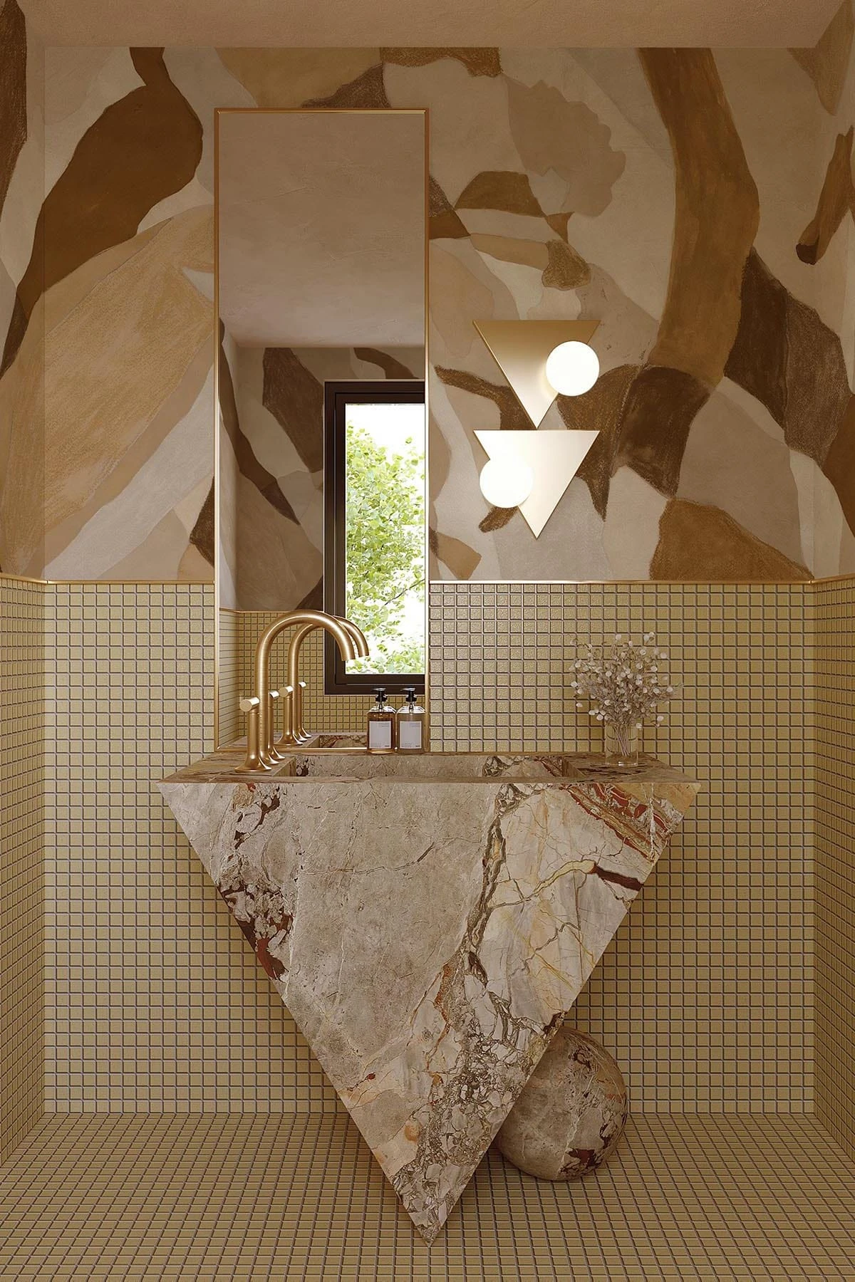 Crafted using a blend of traditional and modern painting techniques, the mural’s surface carries a sense of patina and raw texture, giving it a depth that feels tactile and timeless. This piece reinvents the classic fresco aesthetic with a contemporary edge—perfect for interiors that embrace artful imperfection and soulful character.