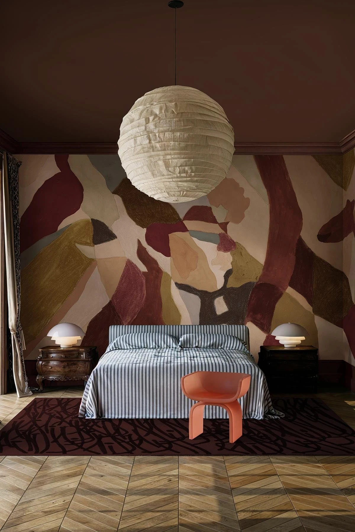 Fresco Silhouette in Rust Red brings a moody, earthy richness to your walls through hand-painted layers of rusty red, deep green, and soft grey. Abstract yet full of intention, this mural features subtle hidden silhouettes that emerge from the textured surface, inviting a closer look.