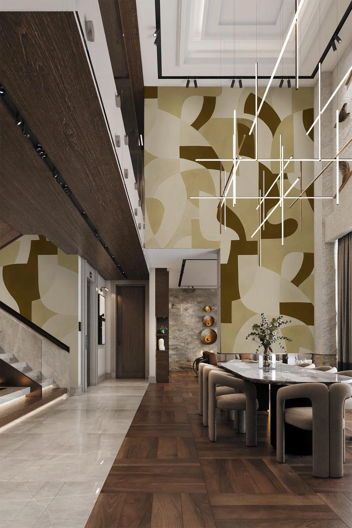 Geometric Art evokes feelings of casual decadence through an elevated sense of artistry and uniqueness of scale. The green design is developed with layers of paint combined with depth in colors. With inspiration from cubism, this hand-painted print features geometric shapes in a balanced rhythm of color and form. The discrete canvas textures give this design its modern look.