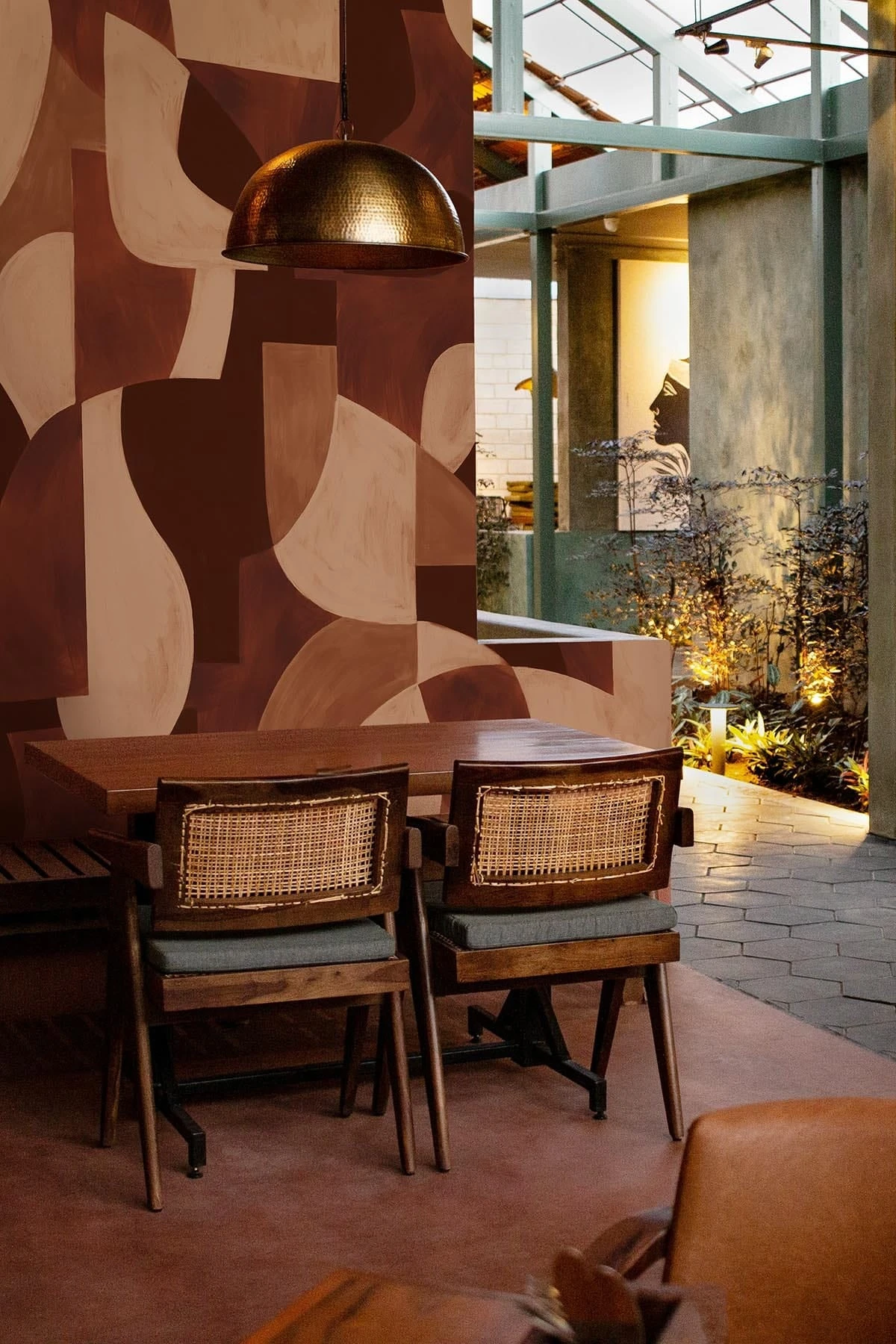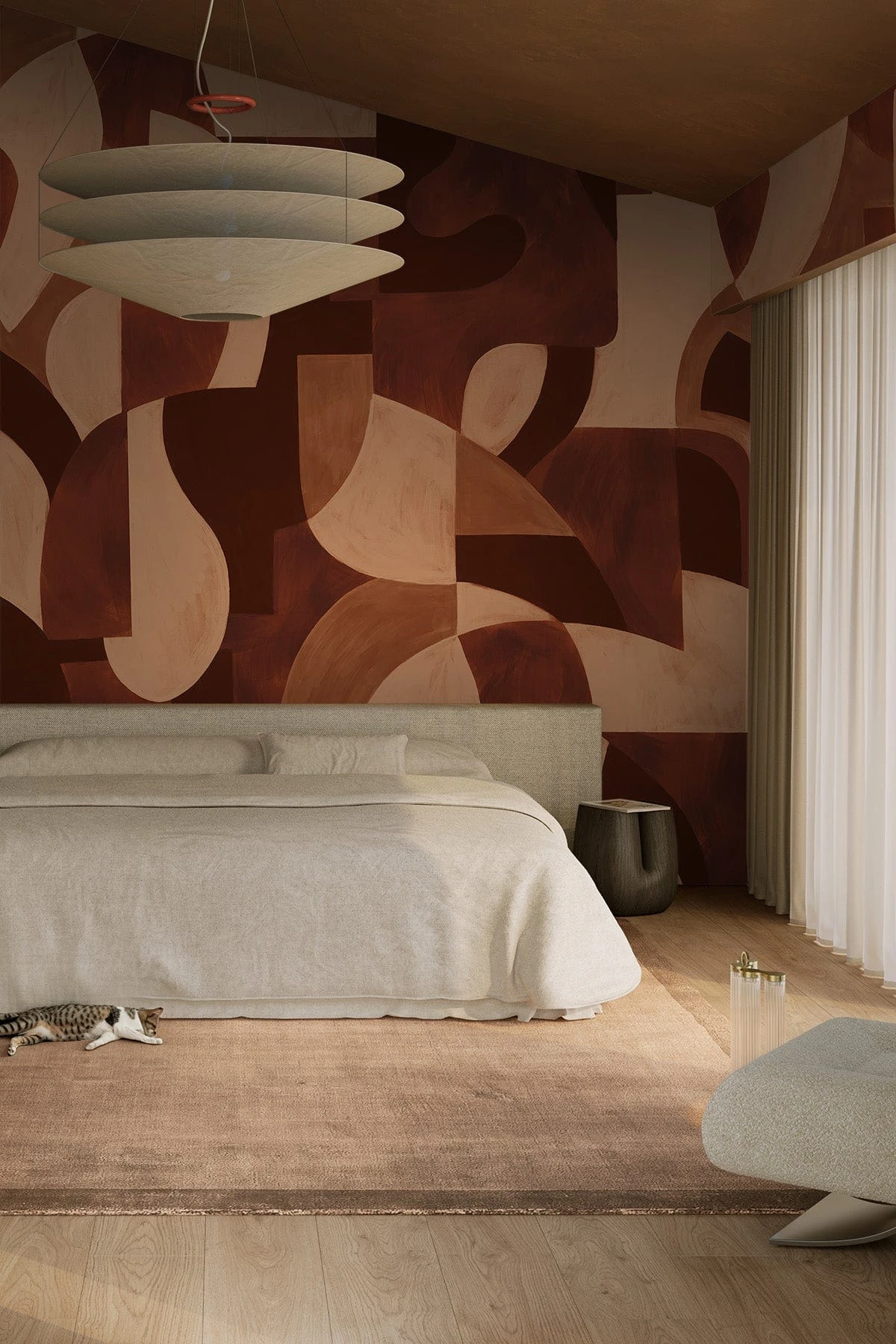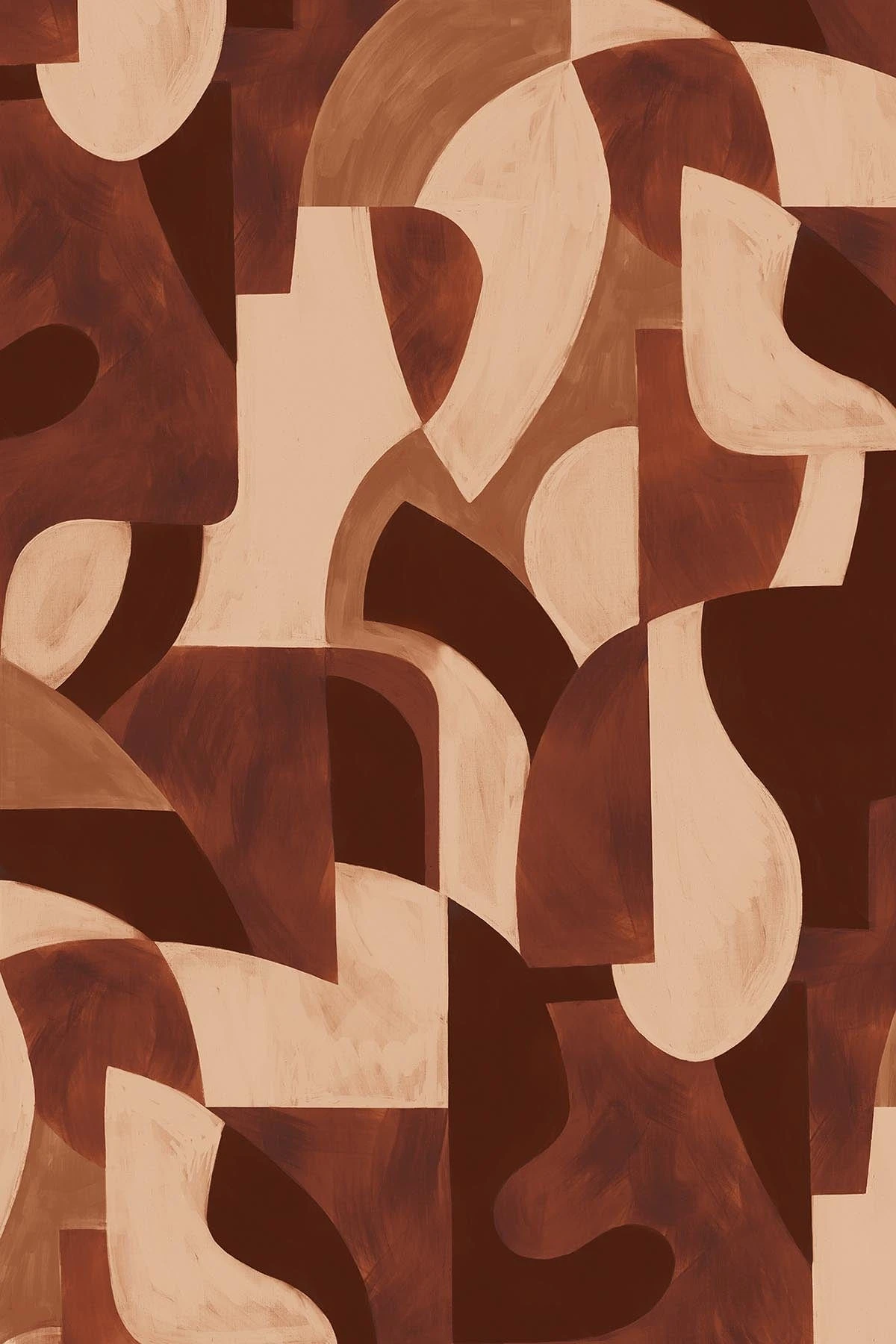 Bold brushstrokes in rich terracotta tones bring warmth and depth to this stunning wall mural. The large scale design blends artistic expression with geometric shapes, textures, and color harmony, creating a balanced composition. This timeless piece radiates elegance, combining soft, earthy hues with bold forms to make a sophisticated statement in any space.