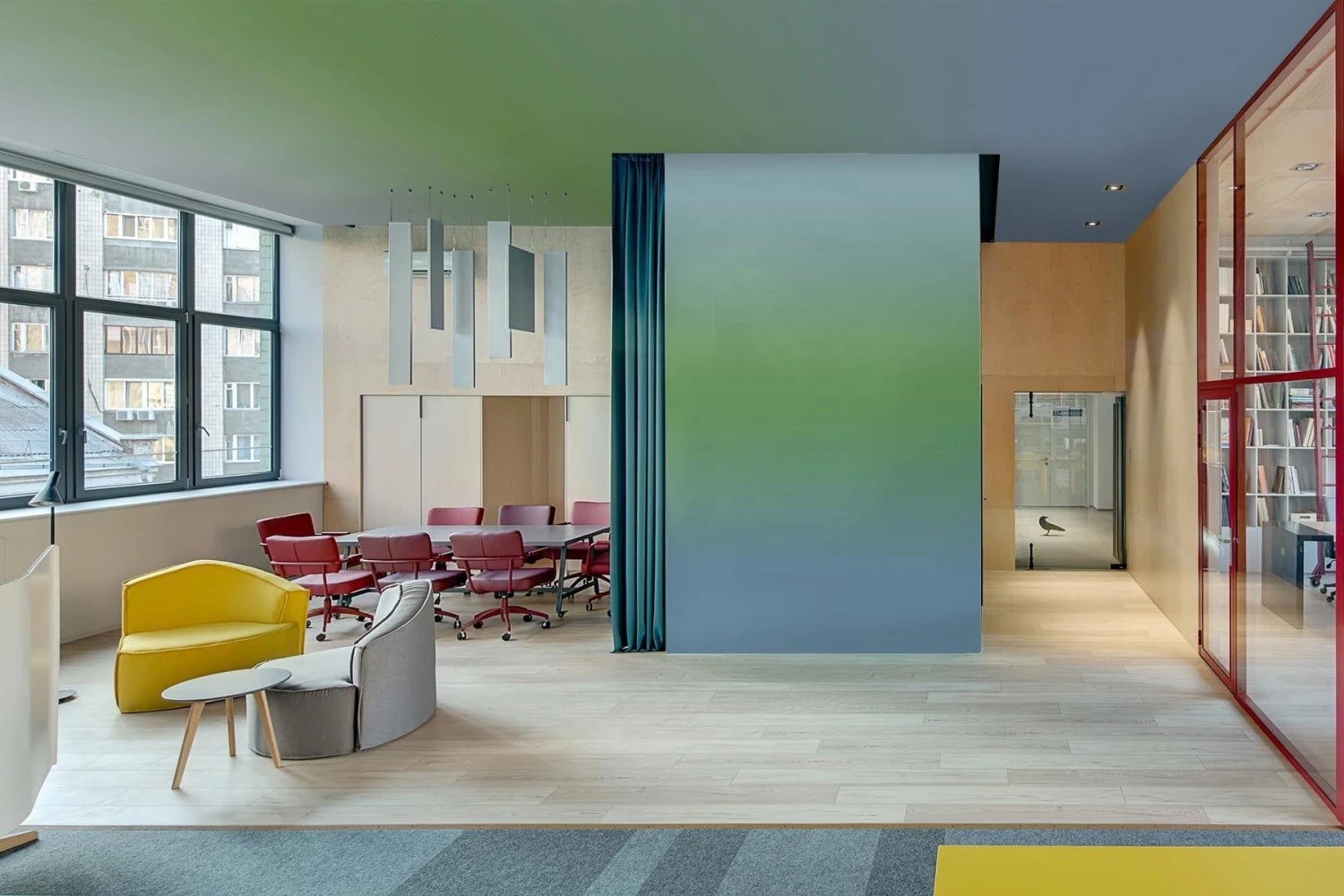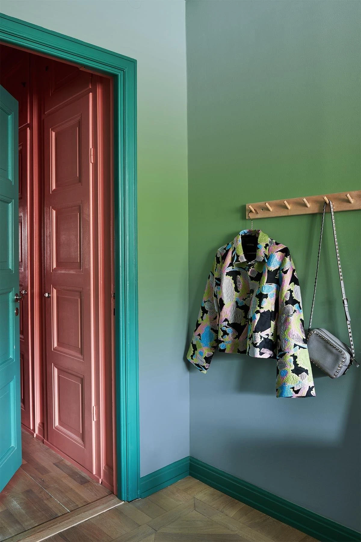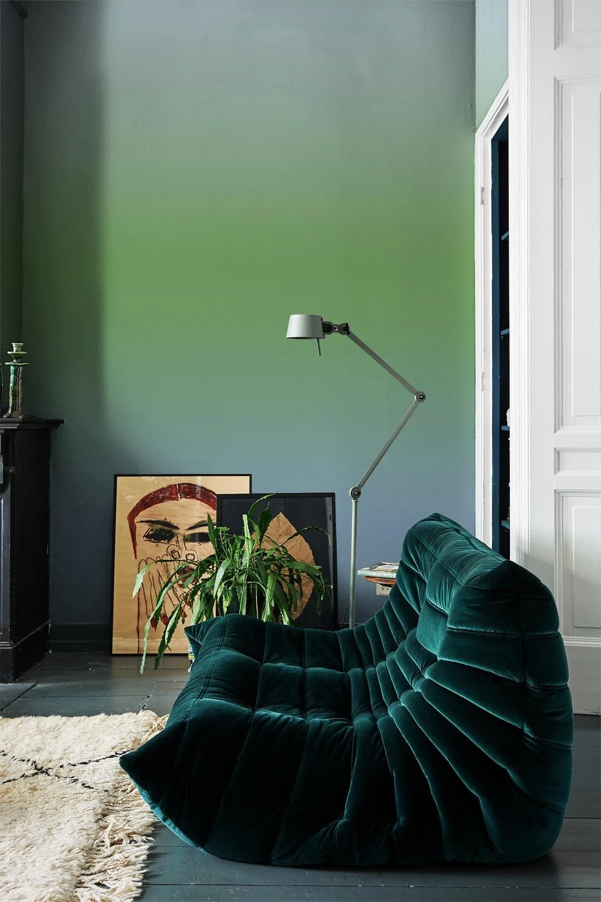 Blue and green are both calm colors. Green is in the middle of the color spectrum and is the color of balance and harmony. It reassures, calms and counteracts stress. The color of blue broadens your vision, both of perspective and physical horizons, natural authority and is the color when you would like to communicate and speak your truth. Blue and green together bring about healing powers and calmness to a space.