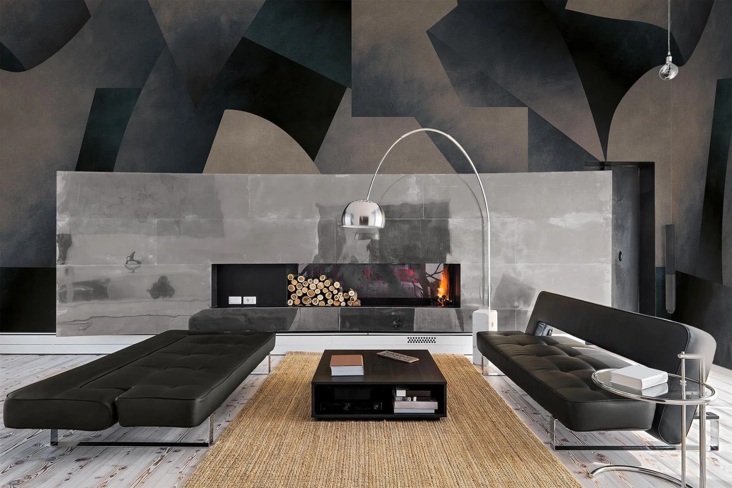 Create another dimension with this geometric design, built up by blue color gradients that forms a dynamic bold statement wall mural. Graphic edges meet gentle gradients. The surface of the wall mural is flat, though it has life and dynamic and is rich in texture. This graphic design comes in two colors.