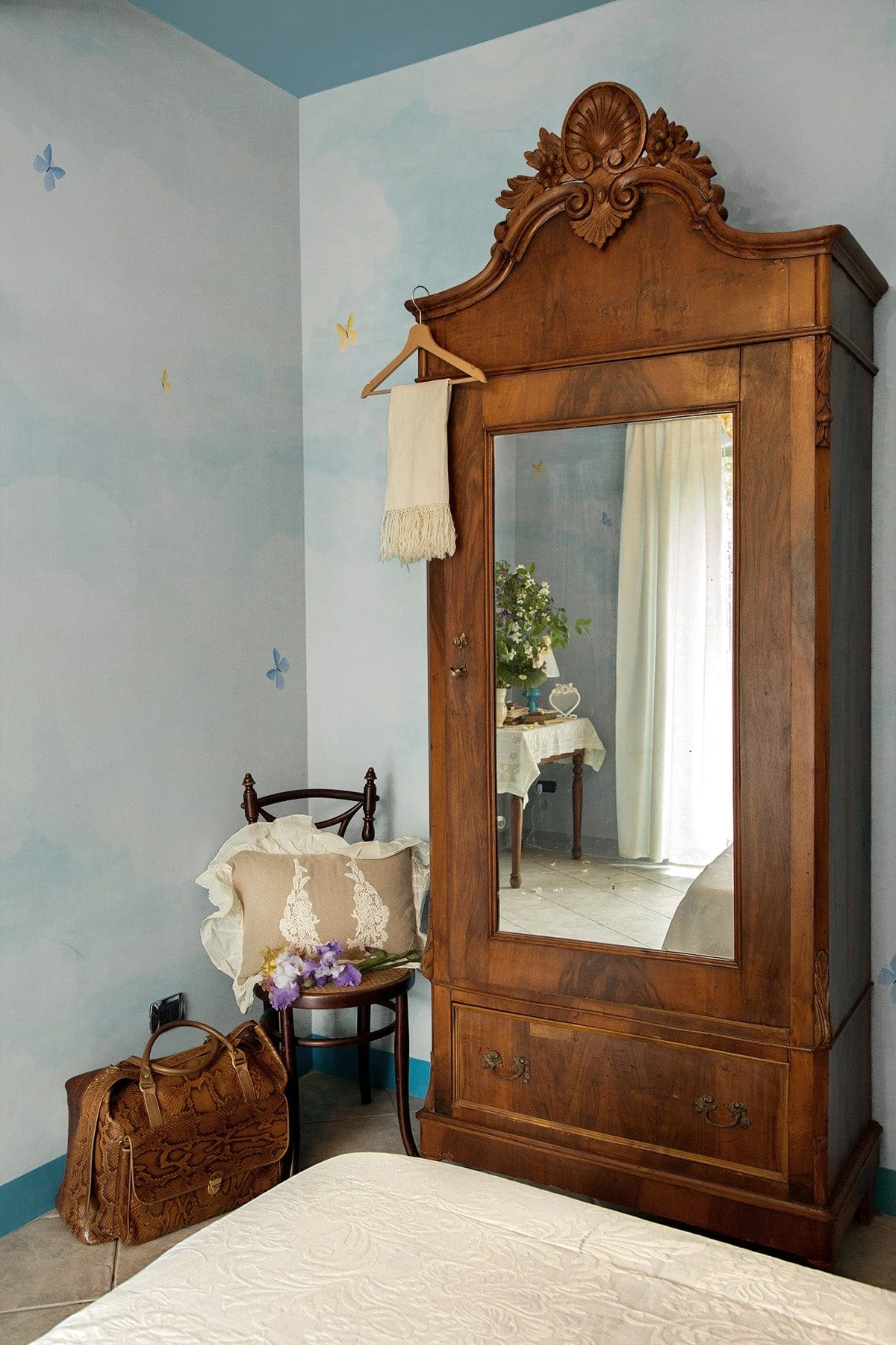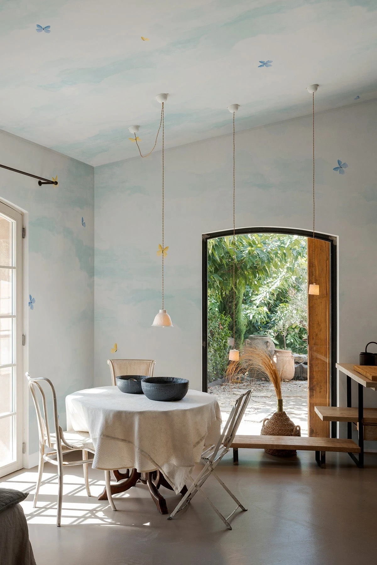 A sky that whispers more than it speaks. This mural continues the story that begins in the garden below, now in a layer of air, light blue and gently moving. It reflects the Bloomsbury way of living: where beauty was never separate, but present in every corner. A space for quiet play and thoughtful calm