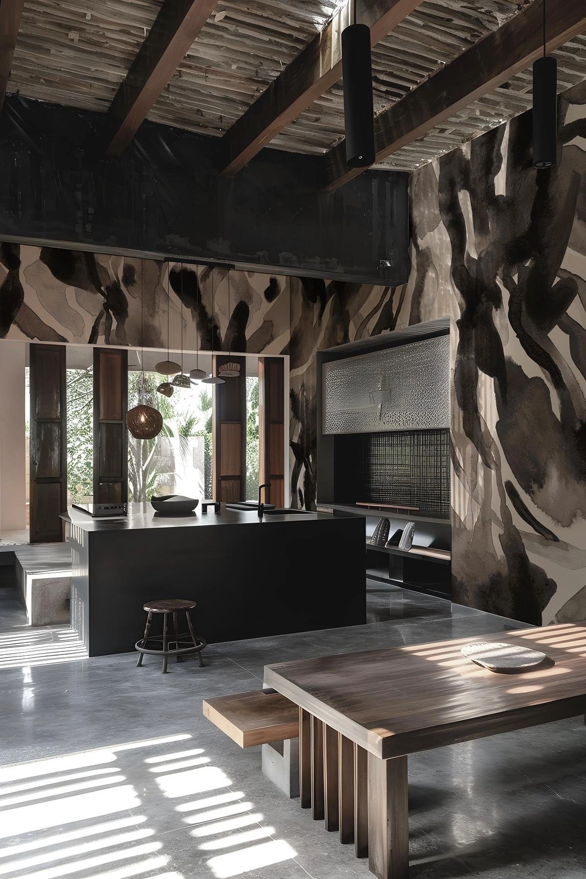 Transform your space with our Ink Art wall mural in black/beige. Featuring a bold, large-scale marbling effect, this design captures the fluid movement of ink in soft, hand painted strokes. The contrast between brushstrokes and delicate shading creates an organic feel, adding depth and artistry to any room.
