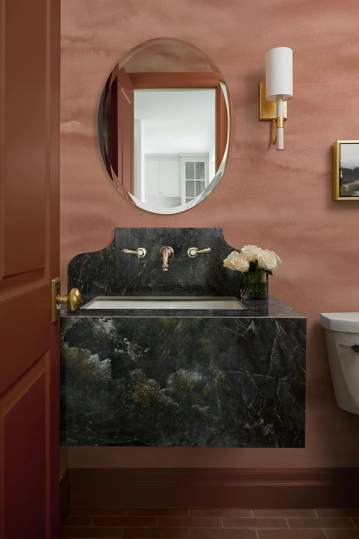 Ink Surface in Peach channels the warmth and softness of sun-drenched palazzo walls, offering a modern take on classic beauty. Its warm peach base is enriched with subtle tonal shadings and delicate texture that flows effortlessly, creating a serene yet uplifting ambiance.
