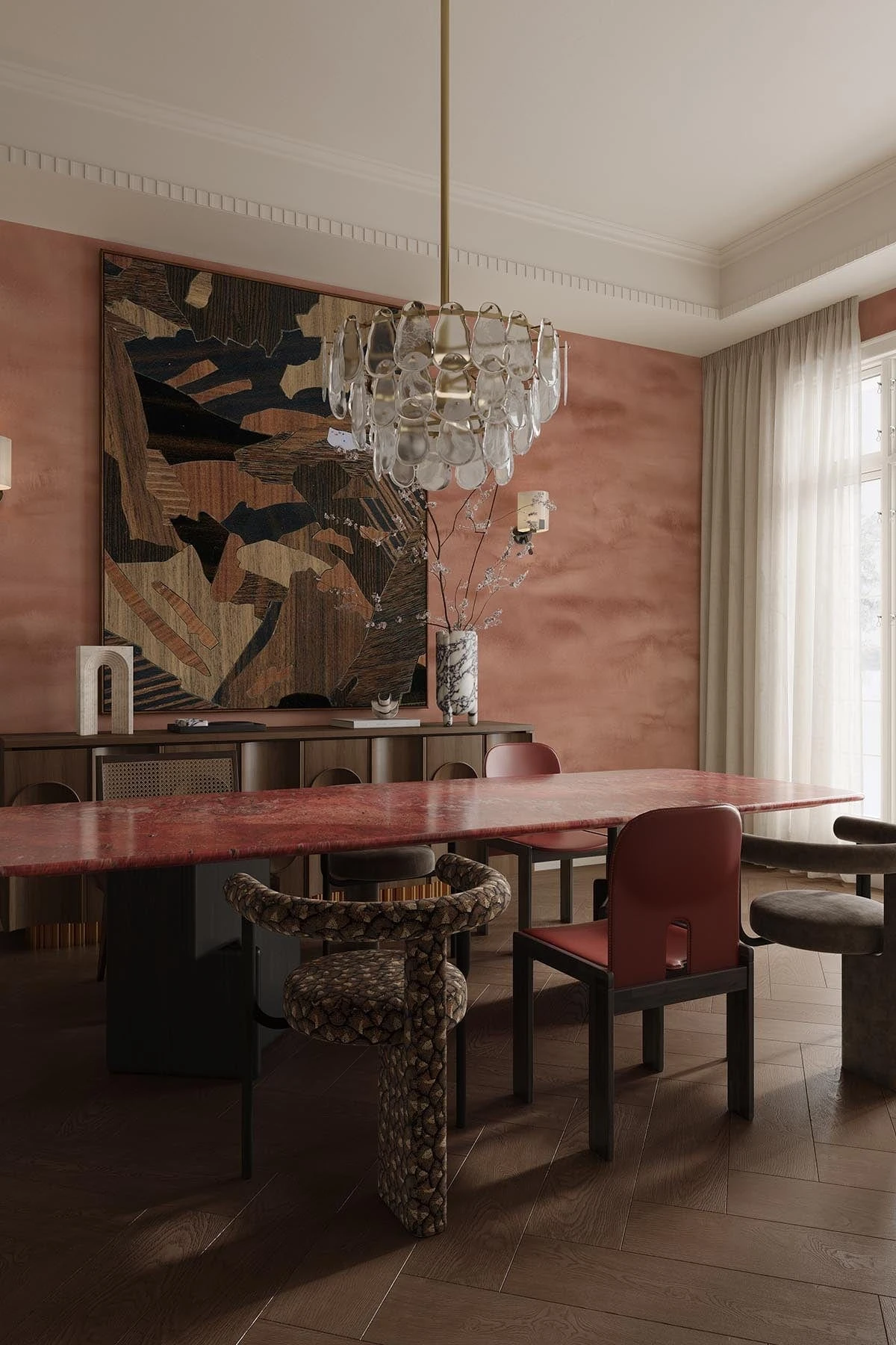 The design captures the feeling of a painted plaster wall—alive with depth, light, and movement. Ideal for bedrooms, living spaces, or any interior in need of a gentle, contemporary statement, Ink Surface Peach wraps your room in warmth and quiet sophistication.