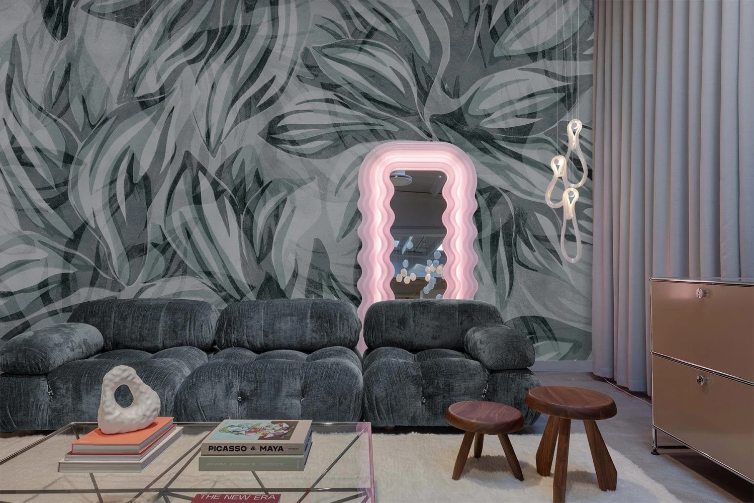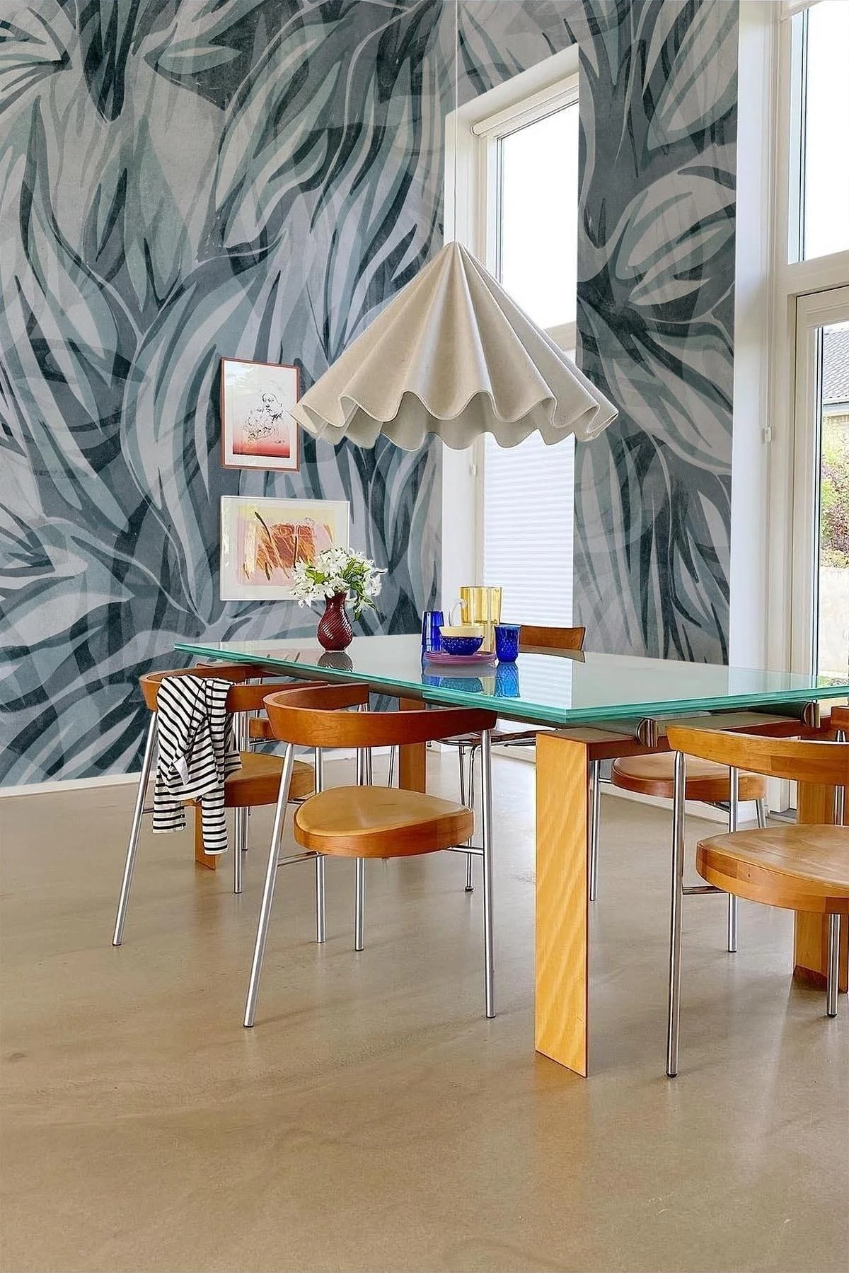 These large abstract flowers create a soft floral pattern to the wallpaper that covers your entire walls and gives you that garden feel. This hand painted floral wall mural gives warmth and character to any space with its magnificent scale. Can you smell the magical flower scent?
