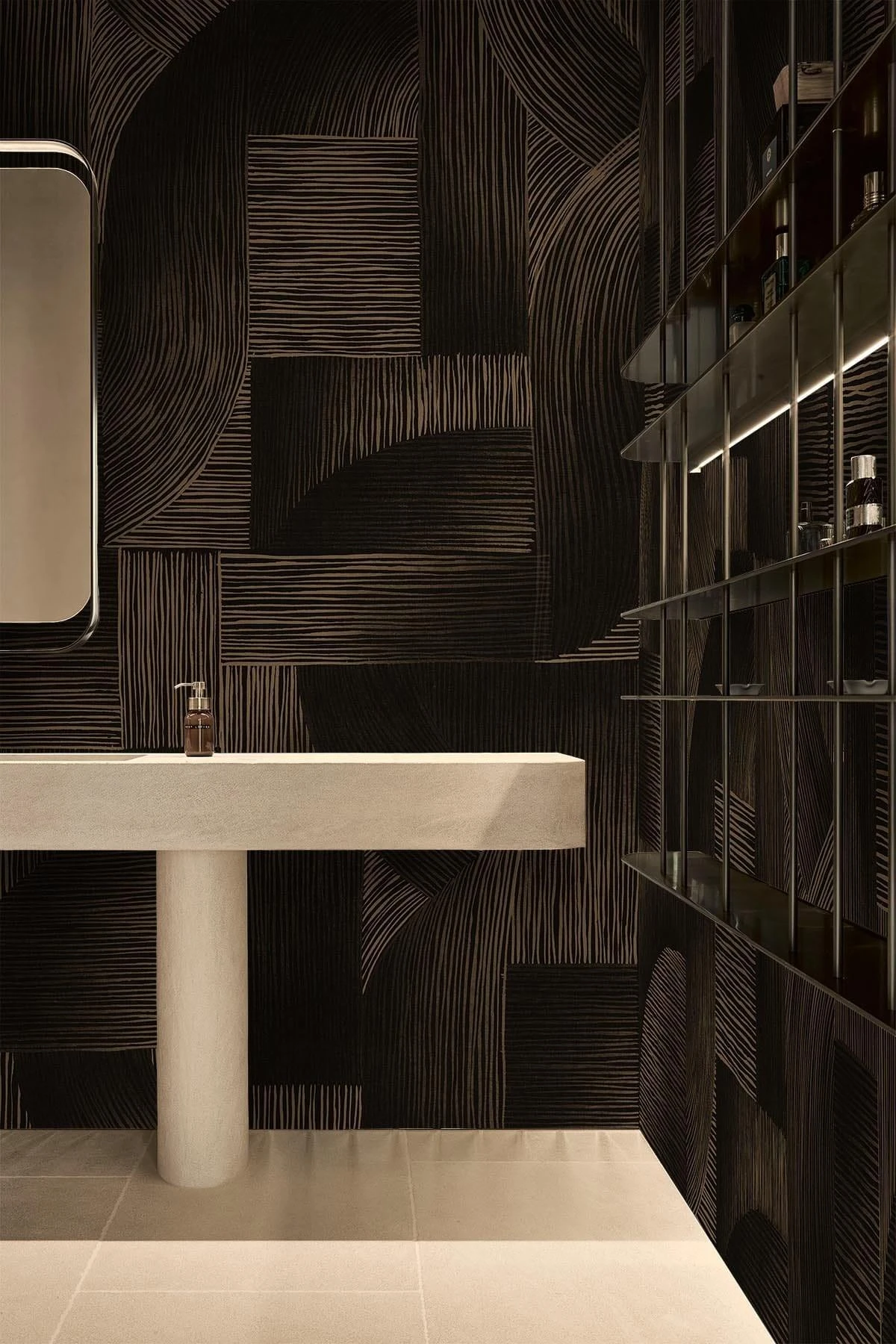 Elevate your space with an air of mystery and elegance with our Linear Shadings wall mural in black. Featuring deep, hand-painted lines and a distinct texture, this mural creates a dramatic atmosphere that captivates the eye. The shaded gradients provide a sense of depth and movement to the room. This mural is the perfect choice for making a bold statement in any room, adding a touch of excitement and personality