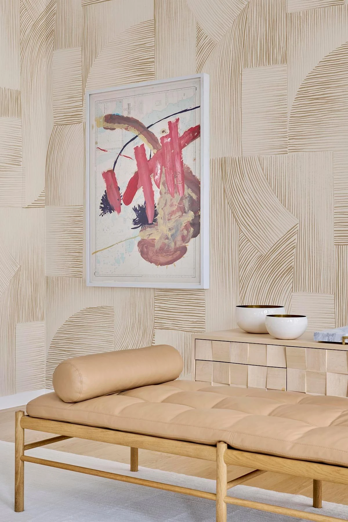 Elevate your home with a unique and organic touch with our Linear Shadings wall mural in Creme White. Featuring hand-painted lines and a linen-like texture, this mural creates an inviting atmosphere with a subtle, natural feel. The shadow gradients add depth and dimension to the room, while the warm cream color with hints of ochre provides an earthy and harmonious aesthetic