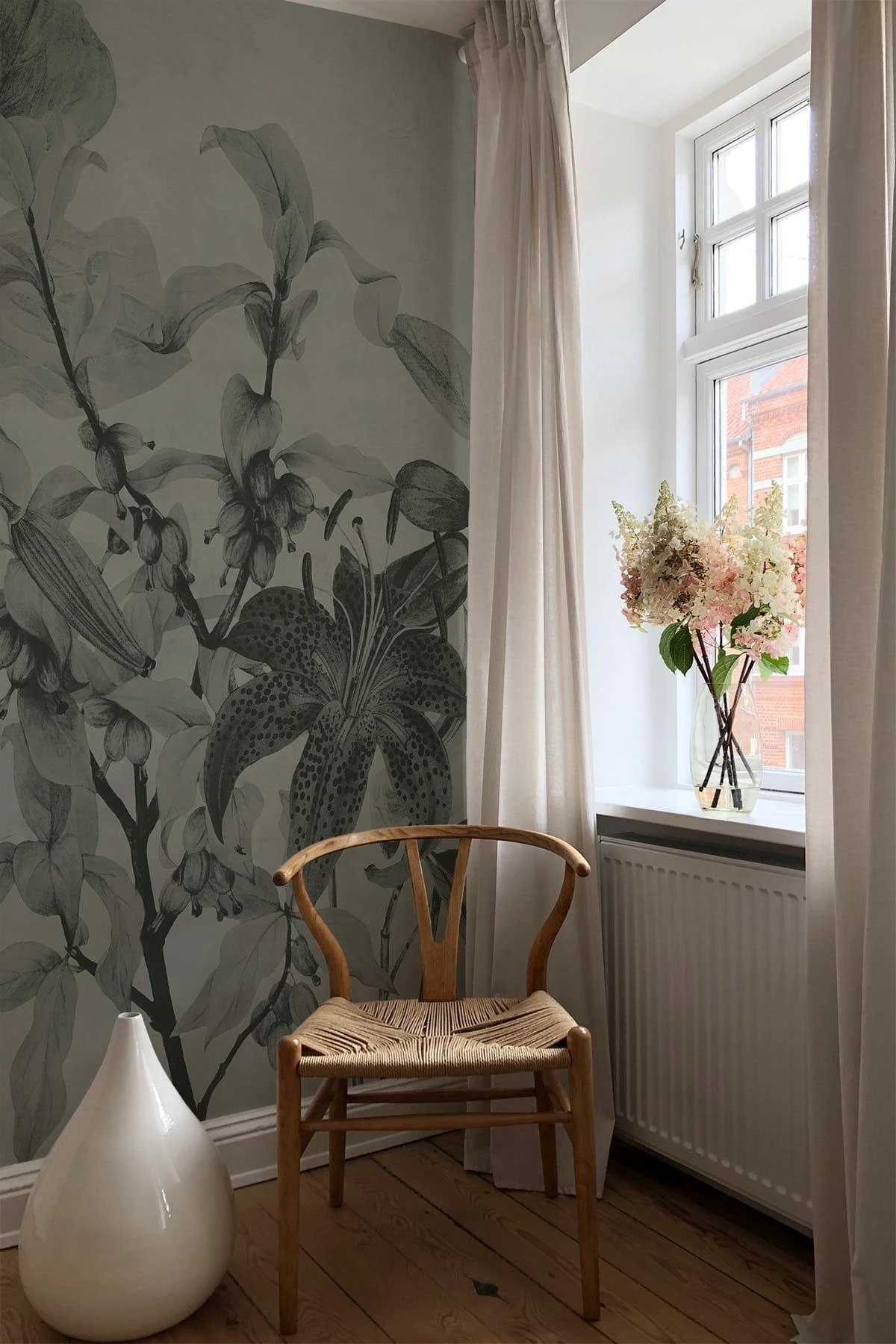 Tonal flowers from the garden creating a luxurious yet sophisticated look to any space. This floral wallpaper will add warmth and a botanical feel to any space.