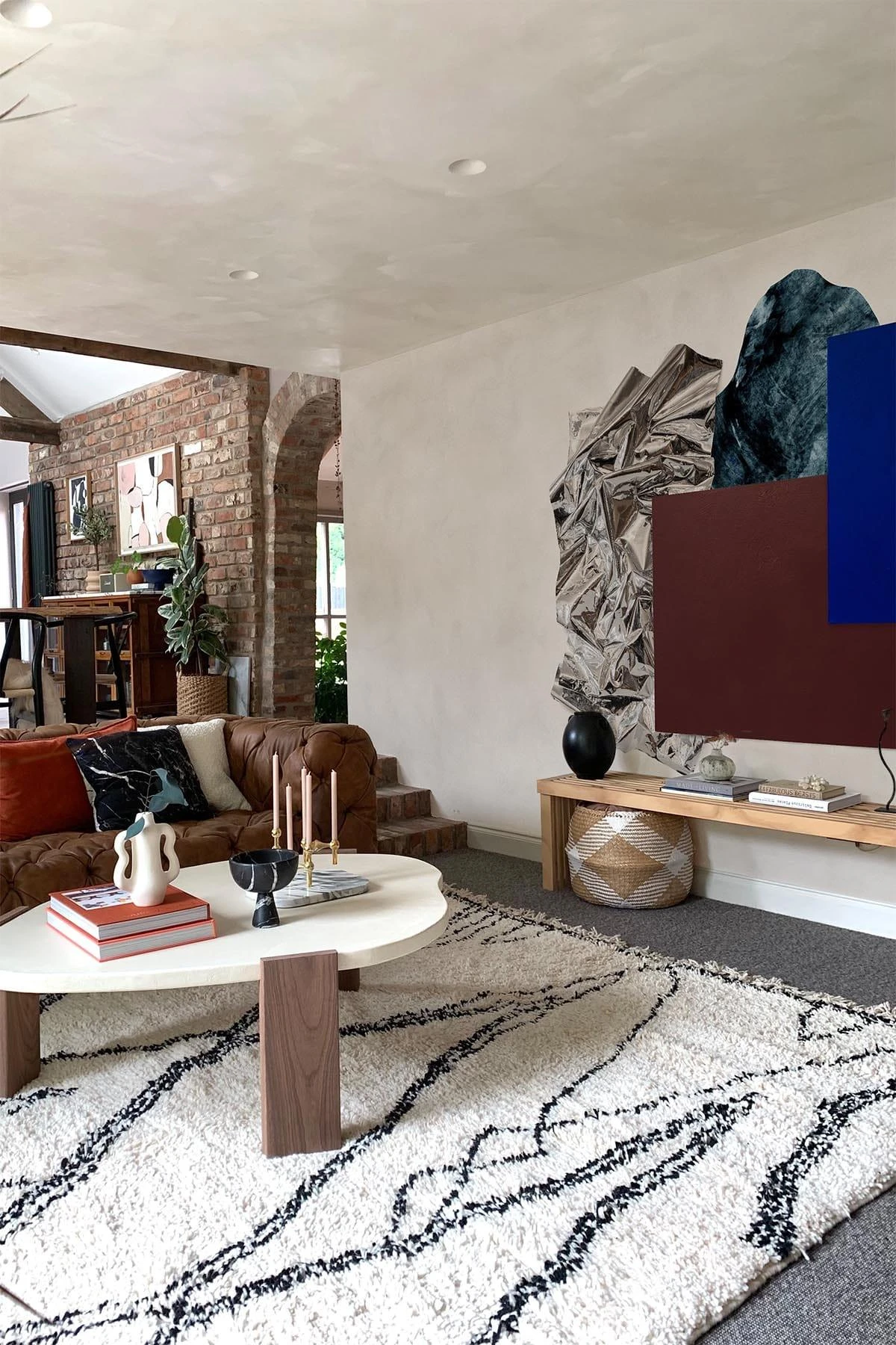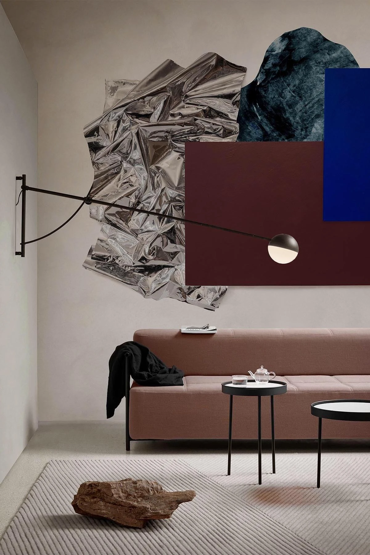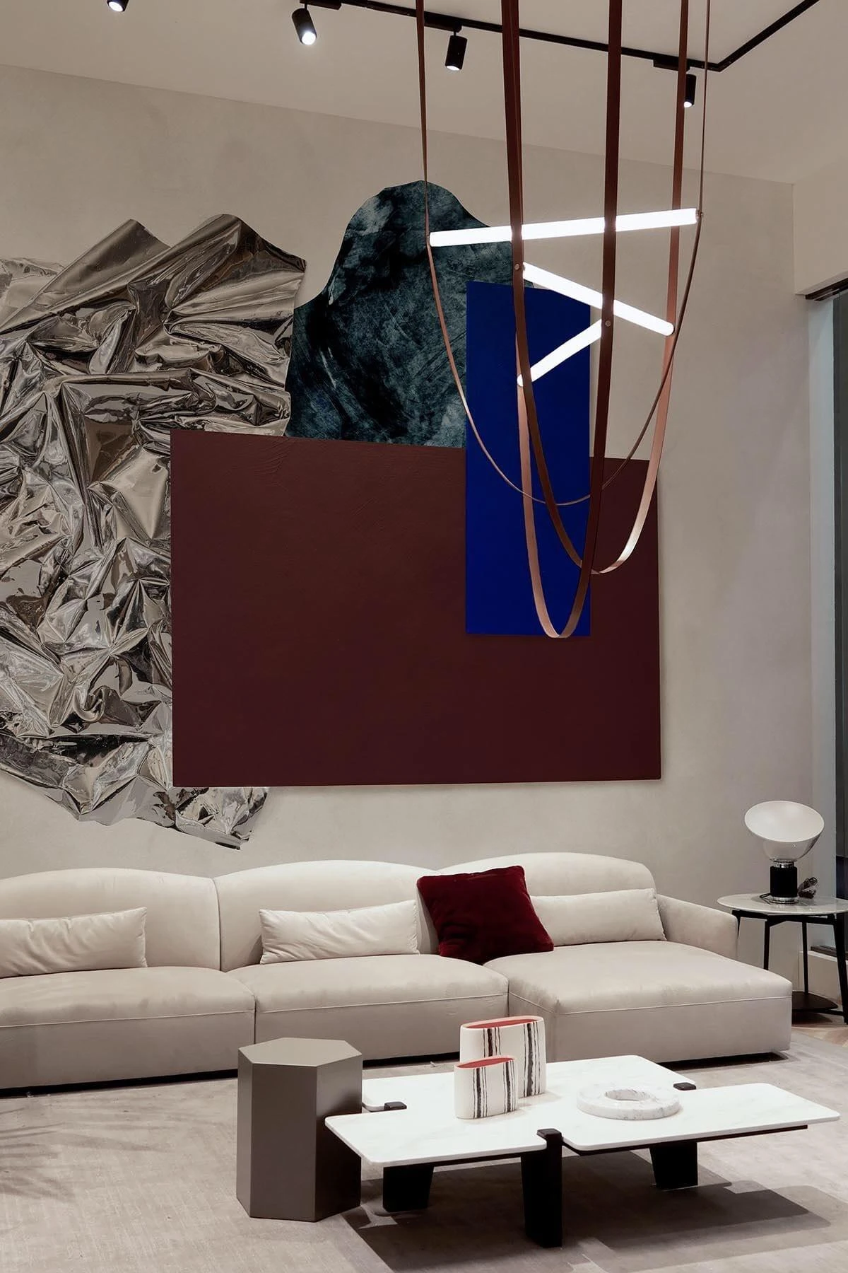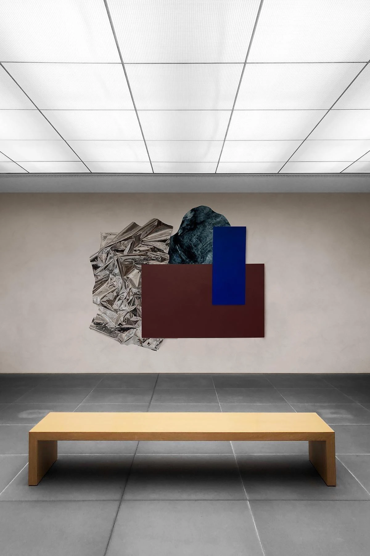 An art piece made out of hand painted pieces and convolutional metal creating contrast and the illusion of a 3 dimensional design.