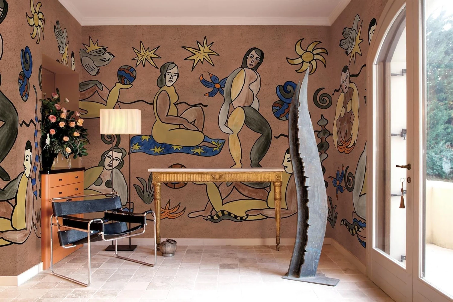 With inspiration taken from the Avant garde and Cubist movement our On the Beach came to life. It is a big scale motif with a bold use of color, organic shapes and silhouettes of humans. The design is developed through layers of paint combined with the illusion of rough surfaces. Like the ones you can find in the architecture of southern Europe. This is what gives this warm toned wall mural its timeless feel. This rusty custom wall mural is perfect to set the tone of your interior and suits dining rooms all the way to restaurants. The sky’s the limit, go bold or go home! It’s the perfect combination of artistic, modern and historic. The On the beach wall mural comes in two colorways.