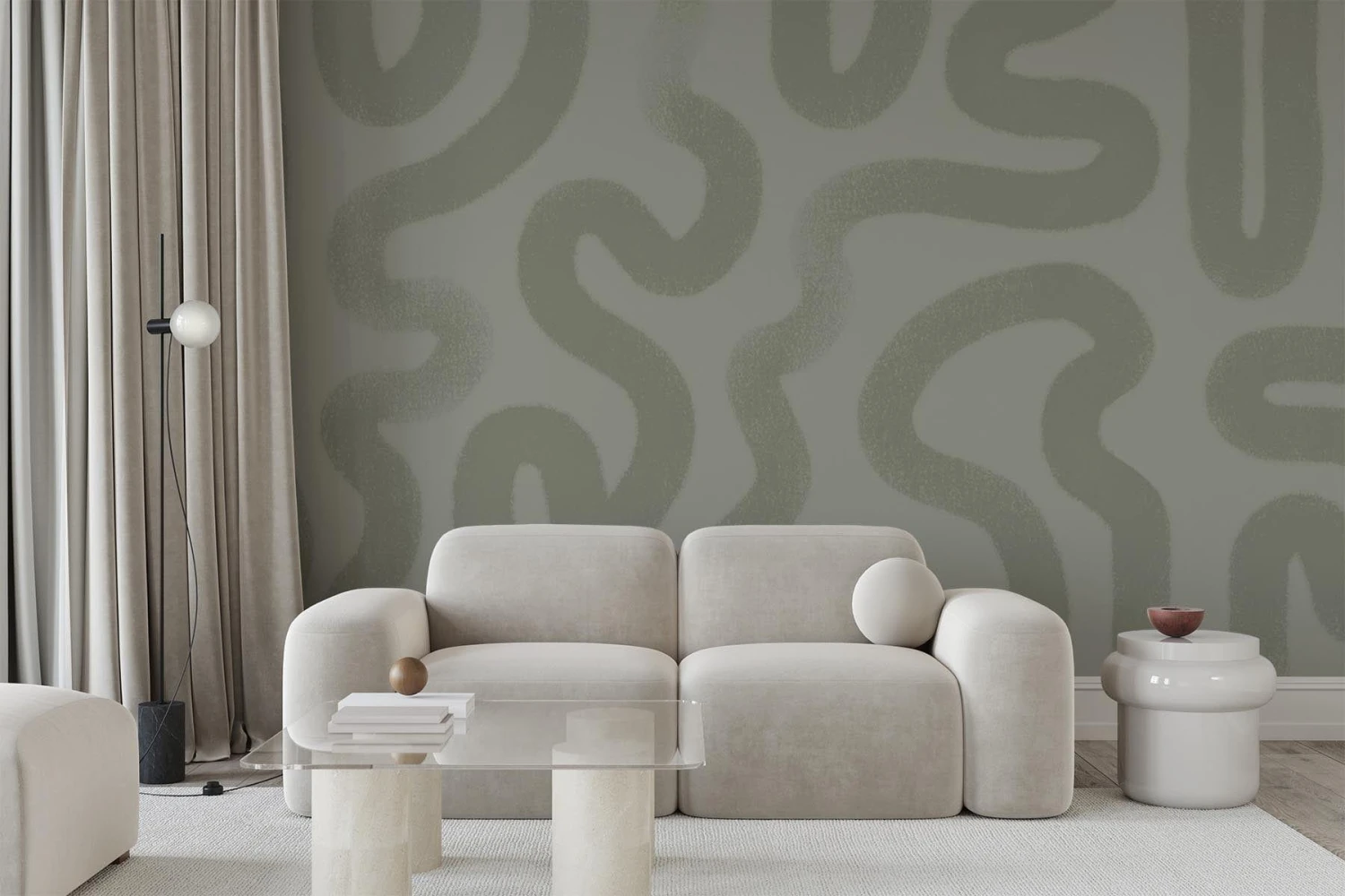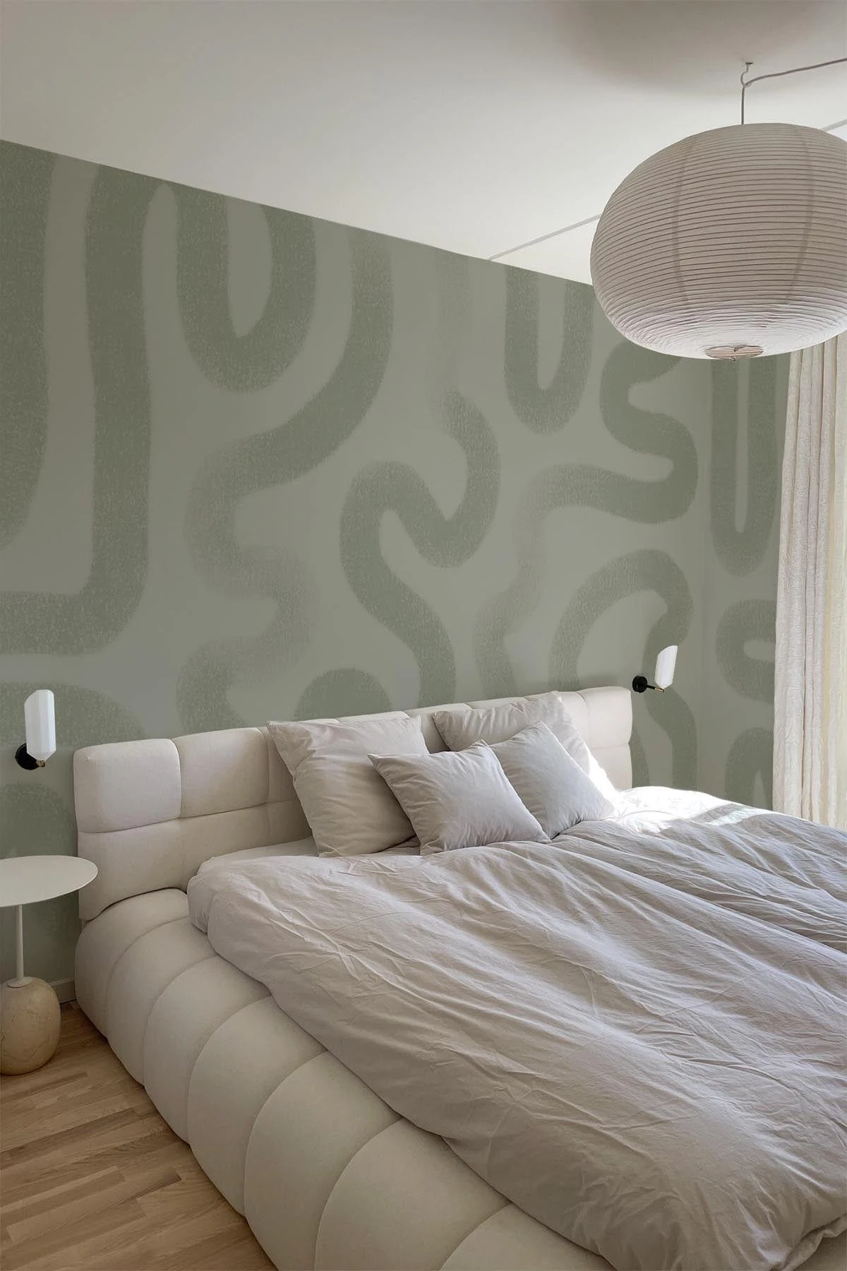 Hand painted brush strokes creating a soft artistic flow. An abstract wall mural with the perfect mix of hues of soft green creating an organic look.