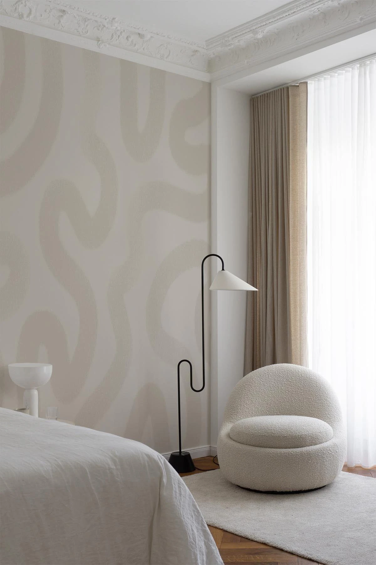 Hand painted brush strokes creating a soft artistic flow. An abstract wall mural with the perfect mix of hues of soft beige creating an organic look.