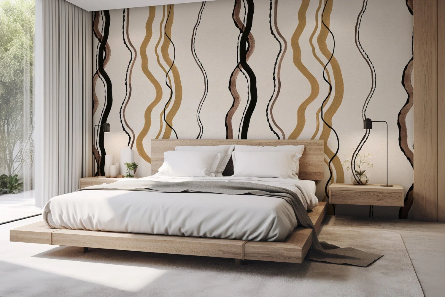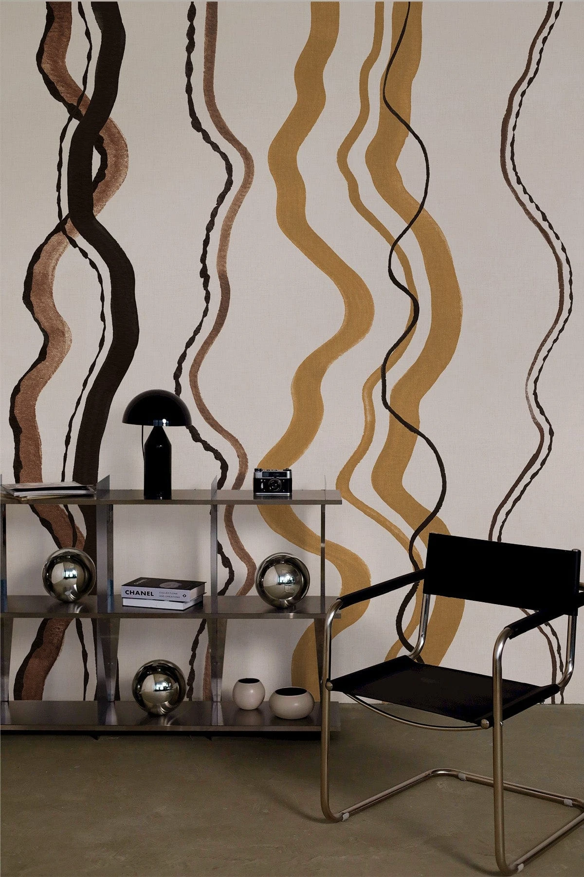 Our Organic Stripes wall mural in Ochre is a design that has a series of organic lines in hues of brown, black, and yellow gracefully move vertically, against a crisp white backdrop. While creating a harmonious and captivating display the stripes are inspired by the beauty of nature’s subtle movements. Perfect for your living room.