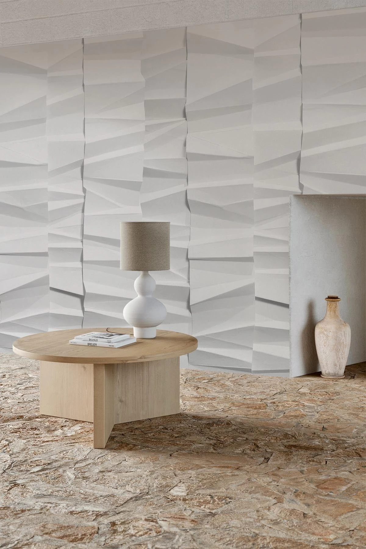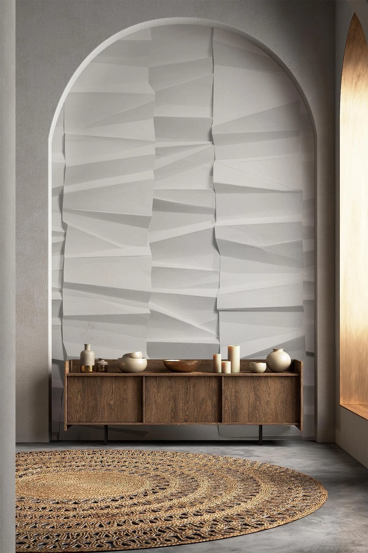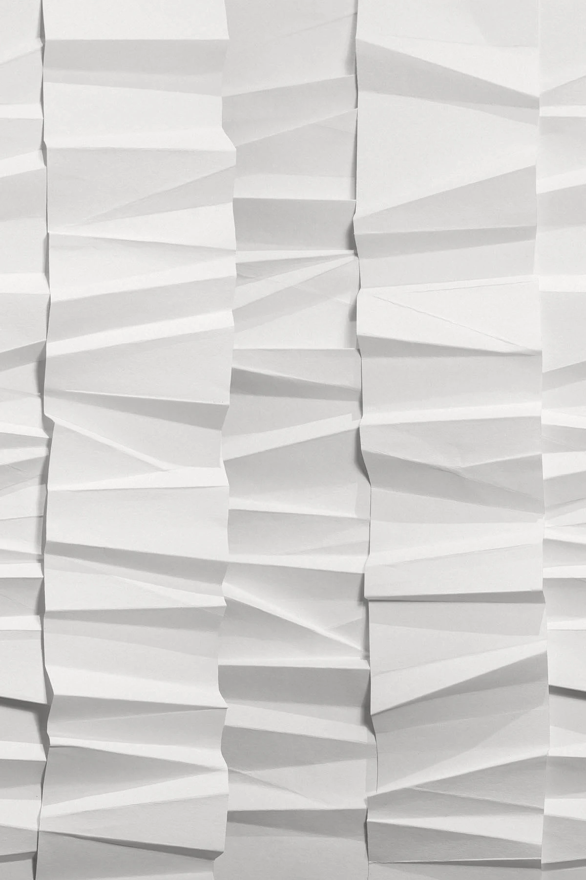 Handcrafted embracing the thousand year old tradition of origami. Paper folds in various directions and sizes. Creating depth and almost an illusion of slight movement makes this wall mural unique.