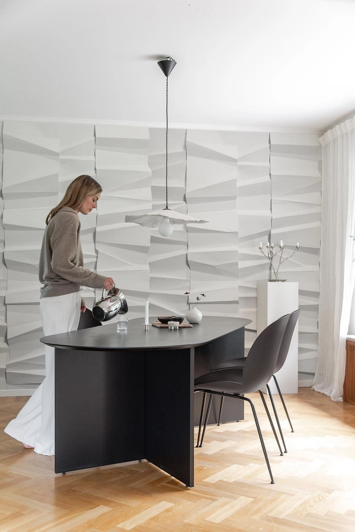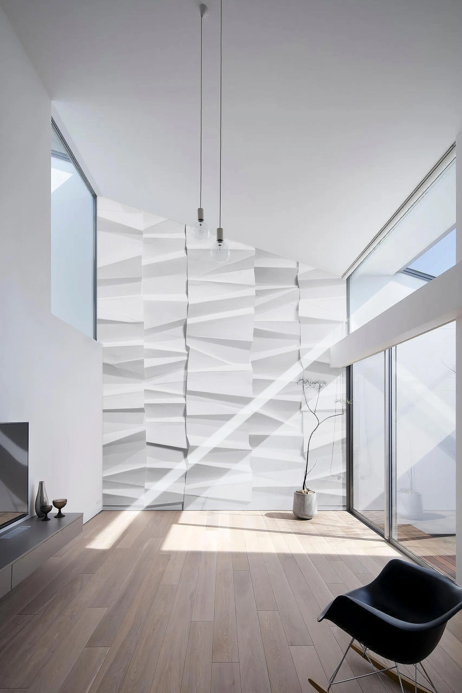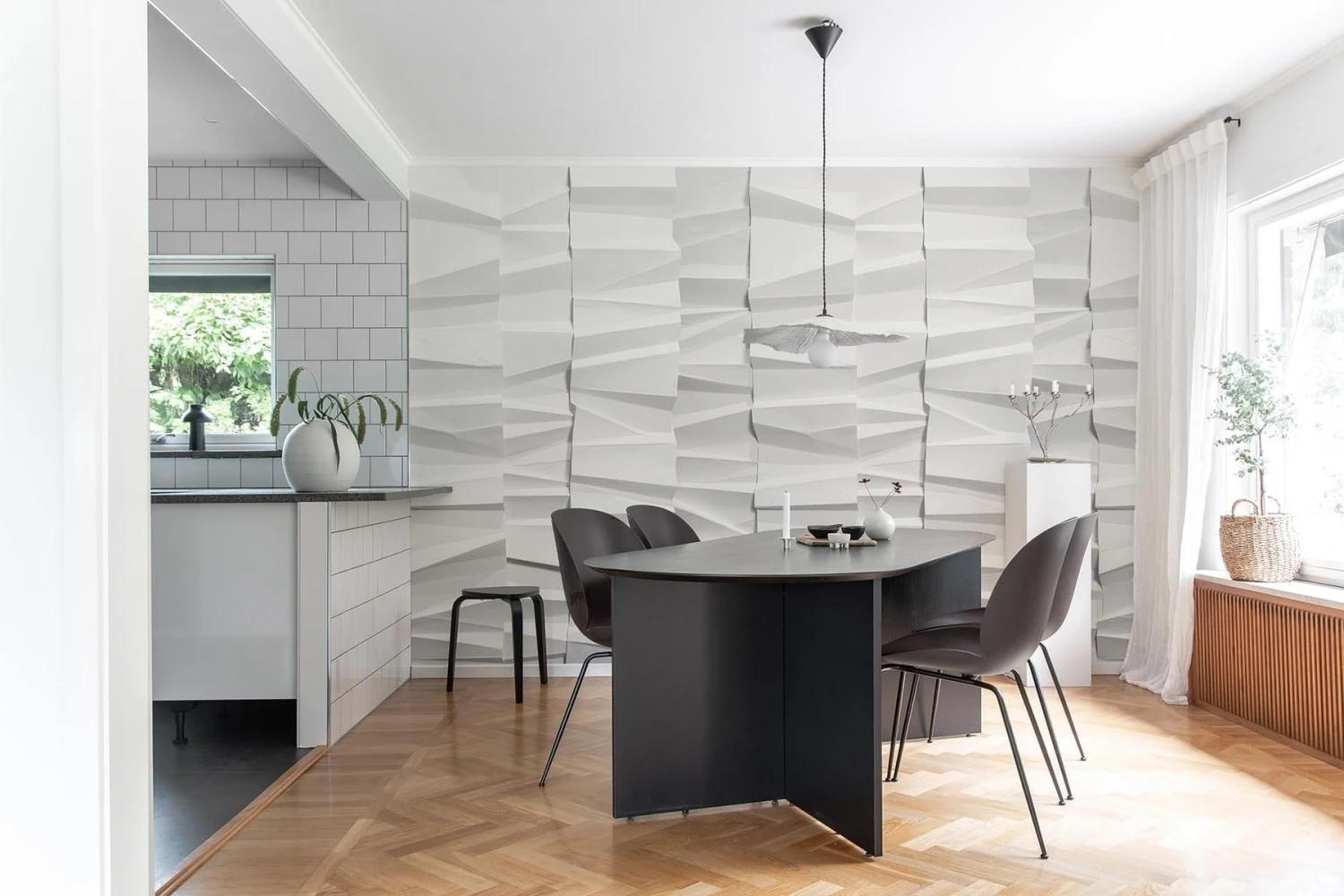 Handcrafted embracing the thousand year old tradition of origami. Paper folds in various directions and sizes. Creating depth and almost an illusion of slight movement makes this wall mural unique.